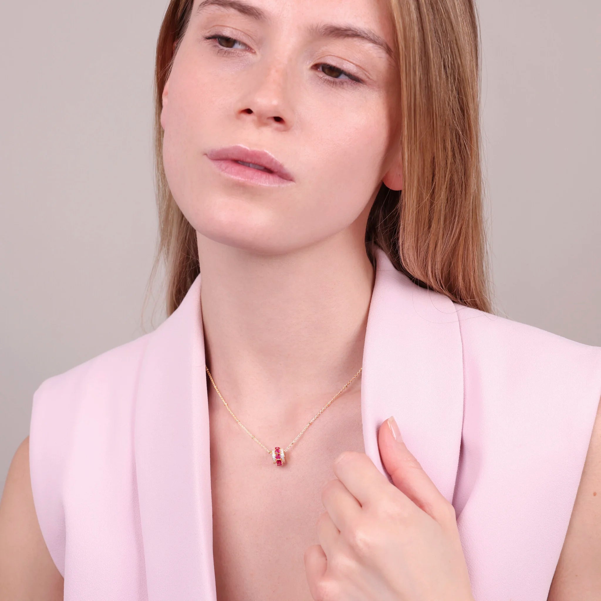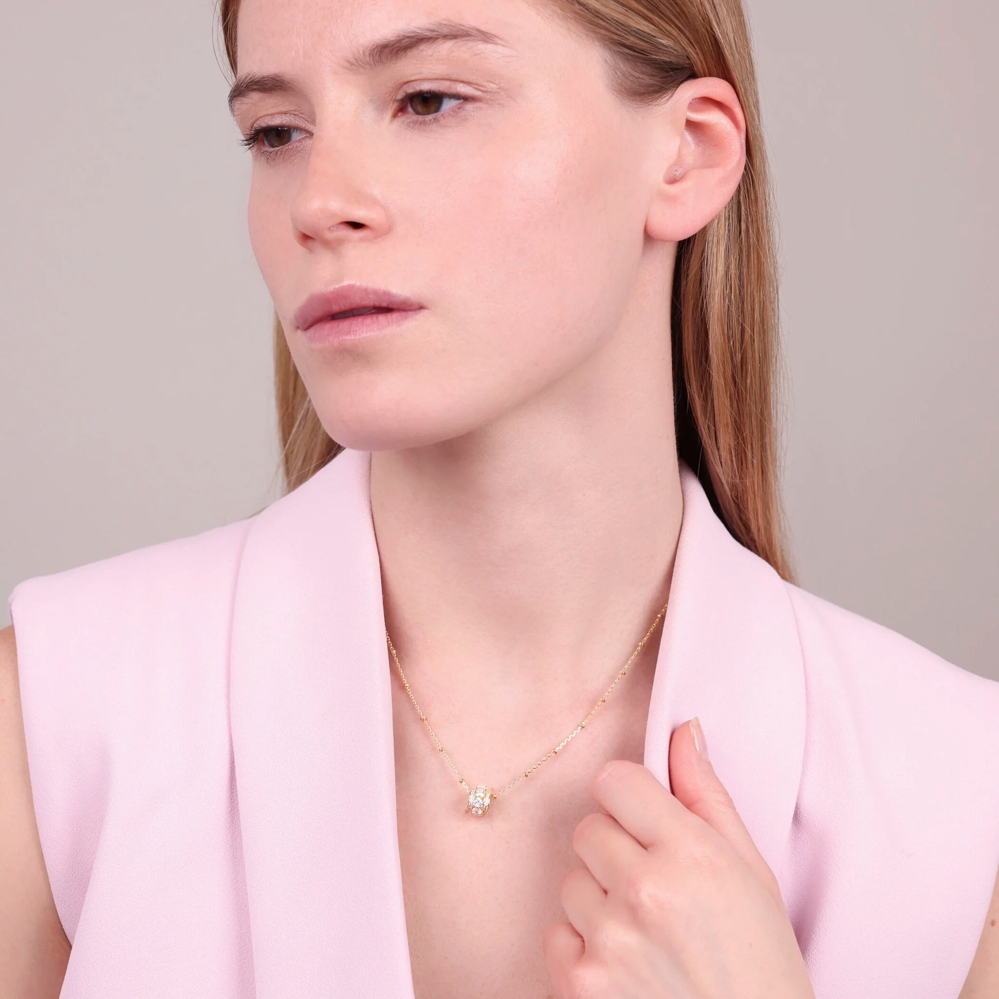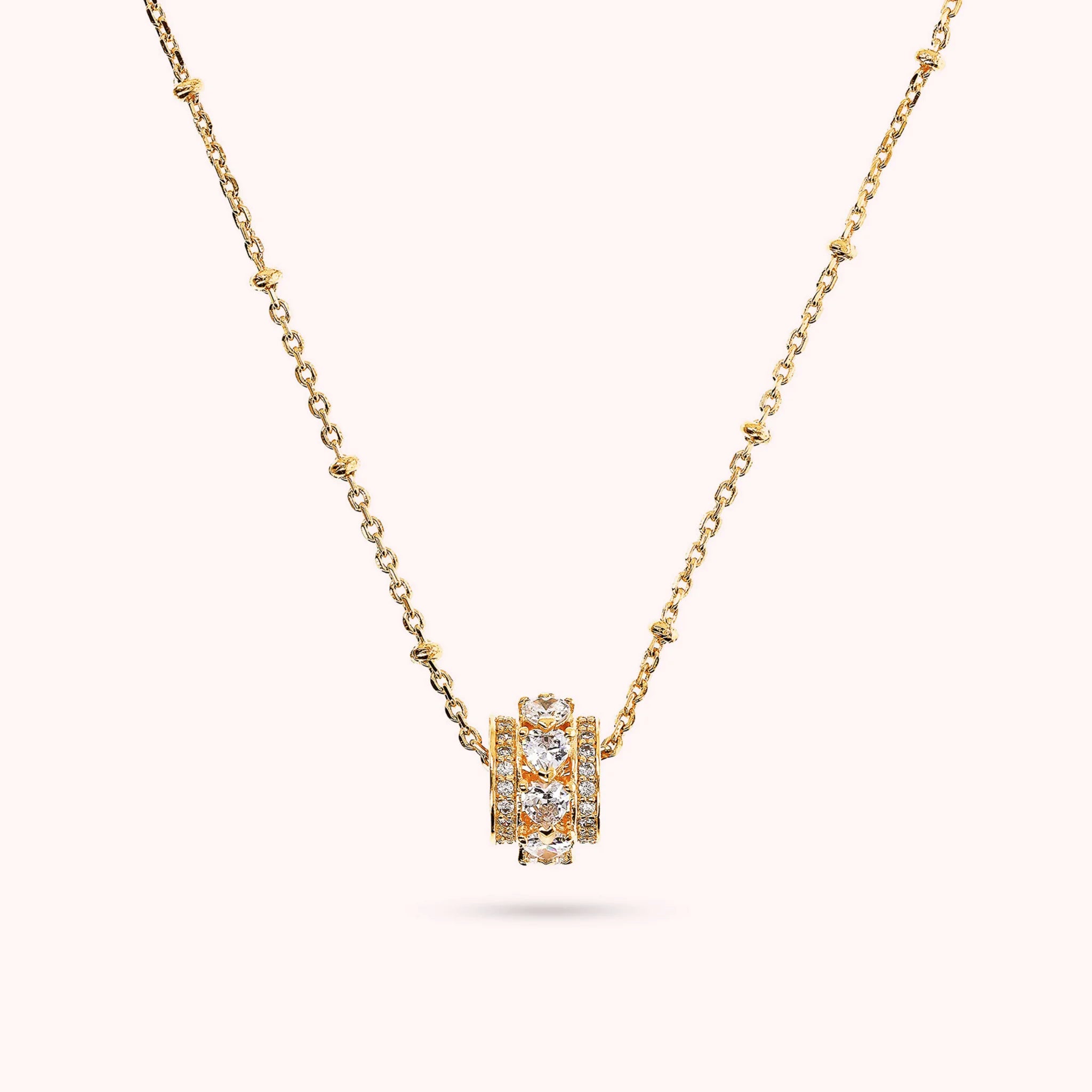 Collana Golden con Pendente a Rondella e Cuori in Cubic Zirconia
