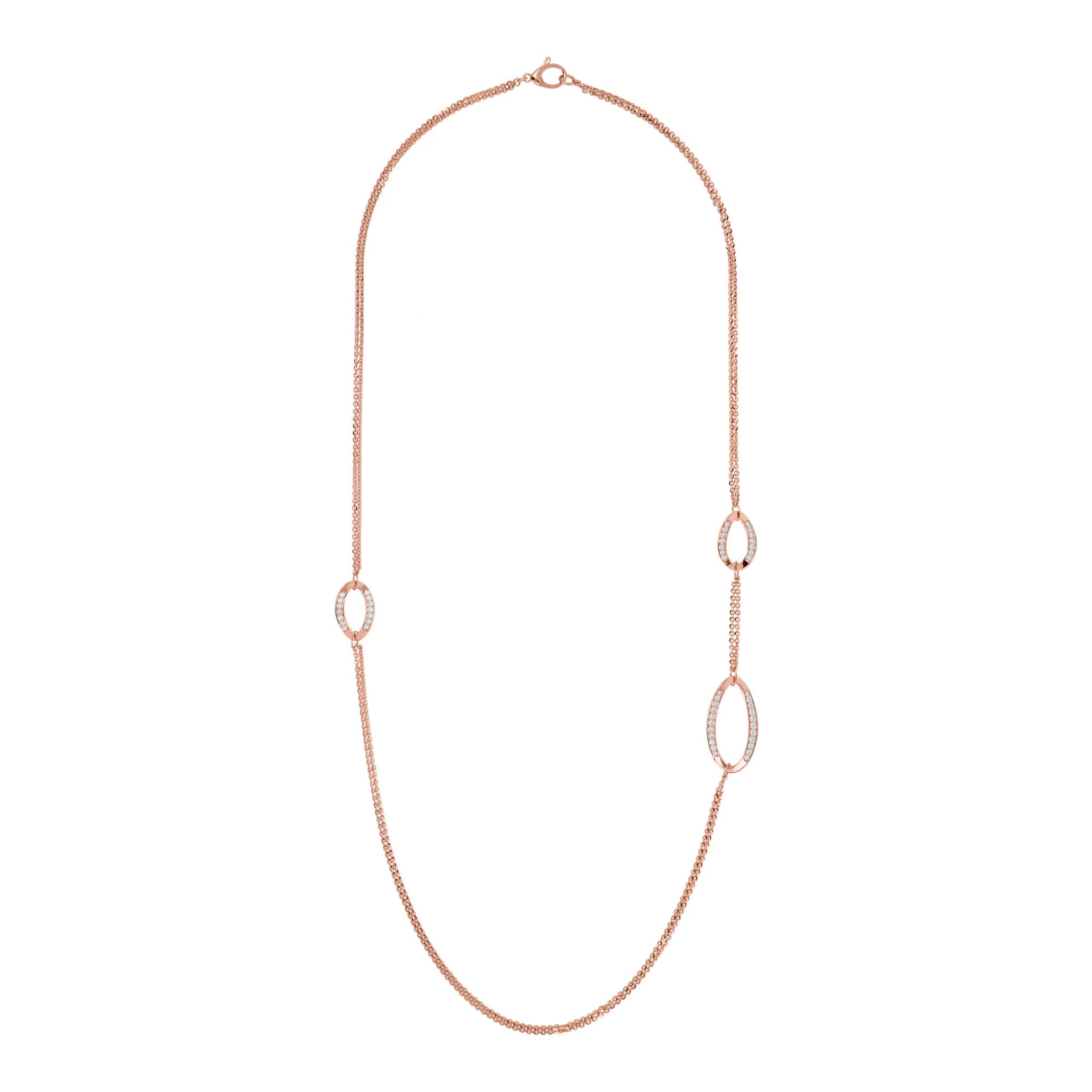 Collana Lunga Doppia Catena Rolo con Elementi Ovali Pavé in Cubic Zirconia