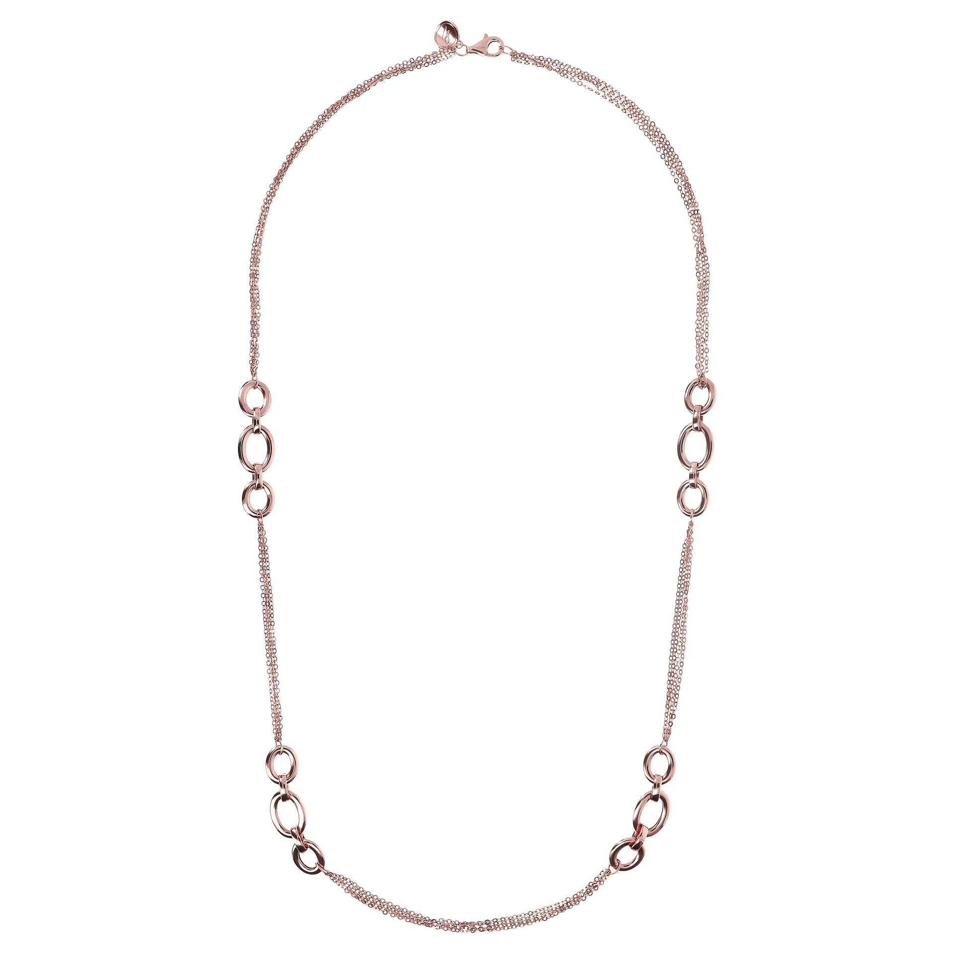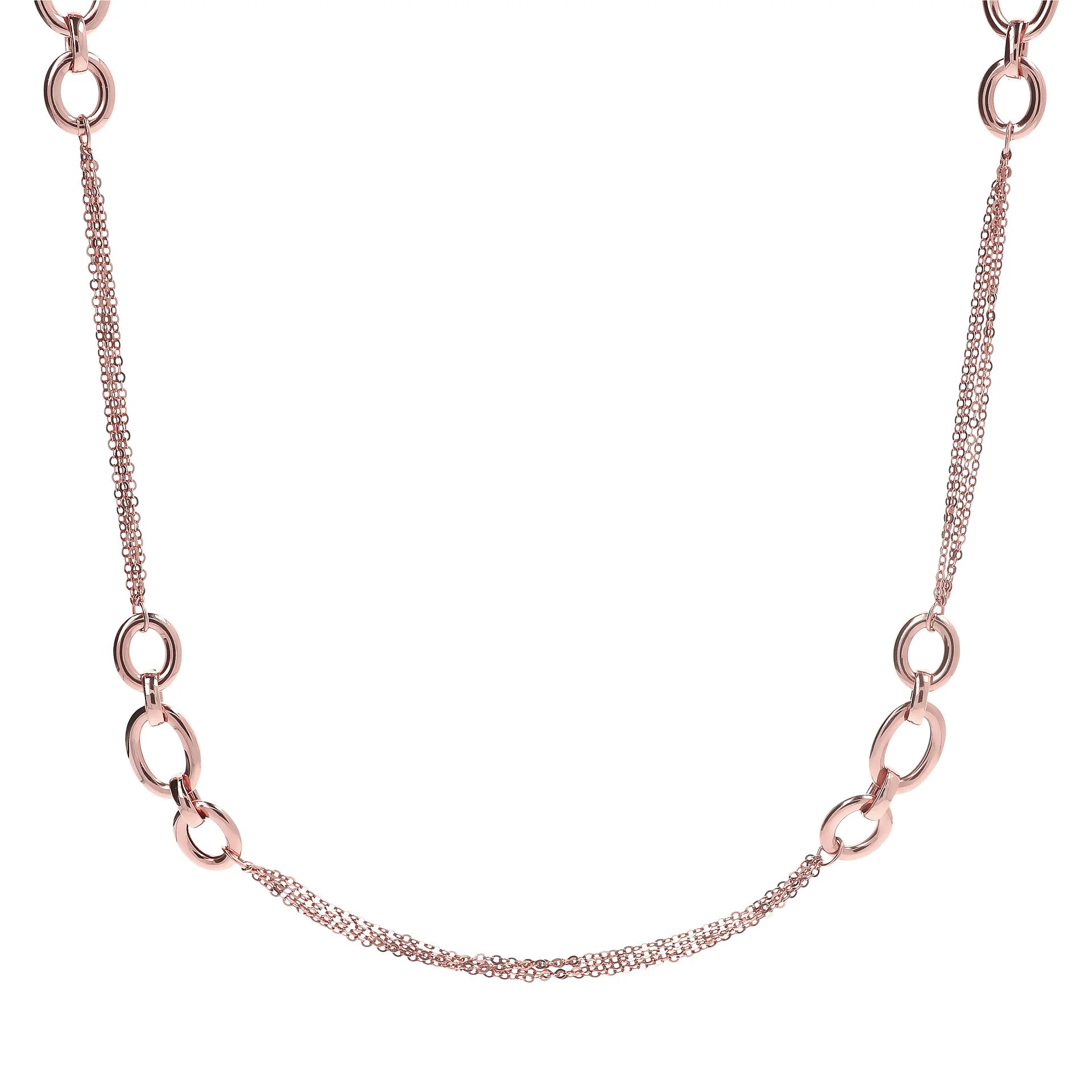 Collana multi-filo Bronzallure realizzata in lega Golden Rosé, placcata Oro rosa 18kt, con catena rolo e station di maglie ad anelli. Chiusura a moschettone.