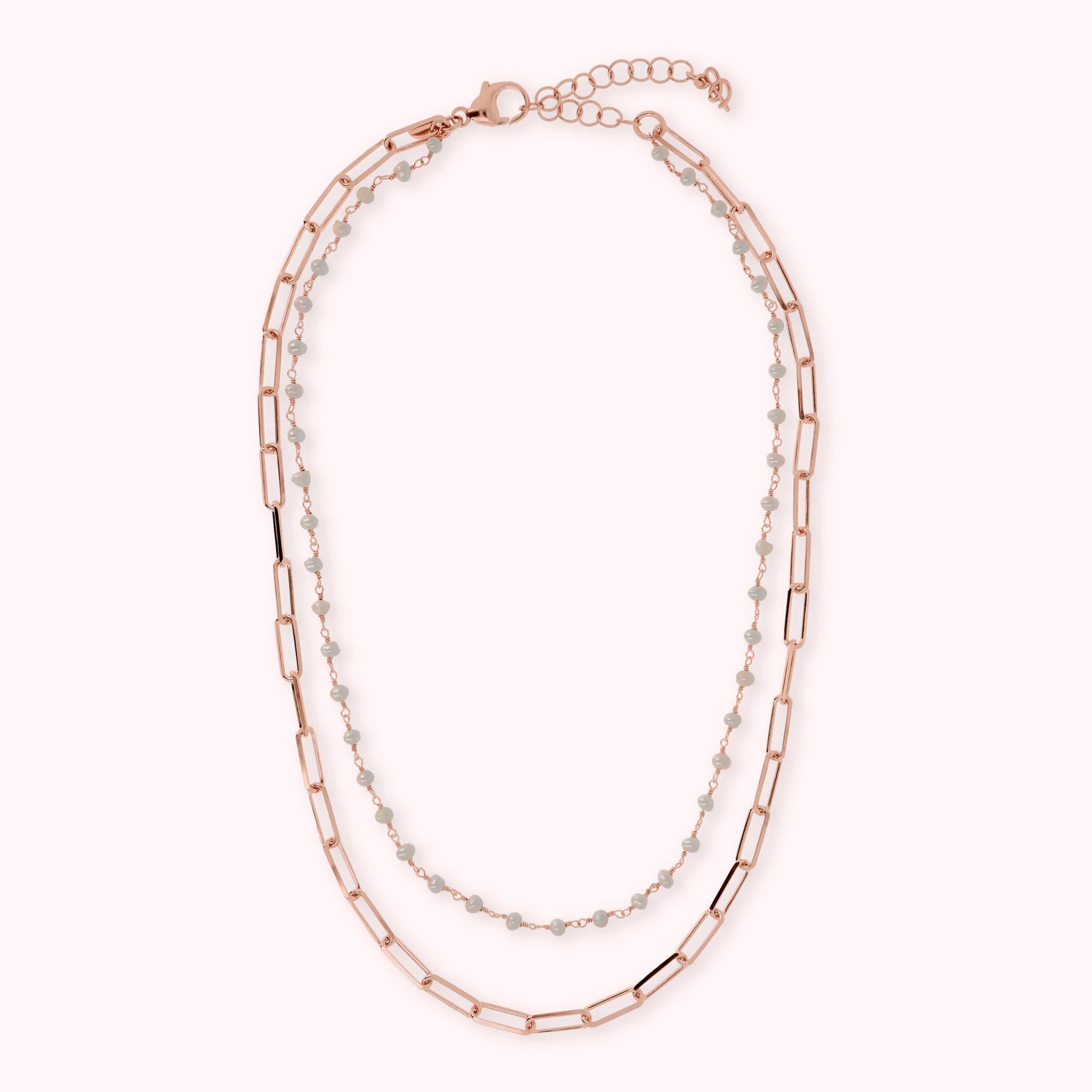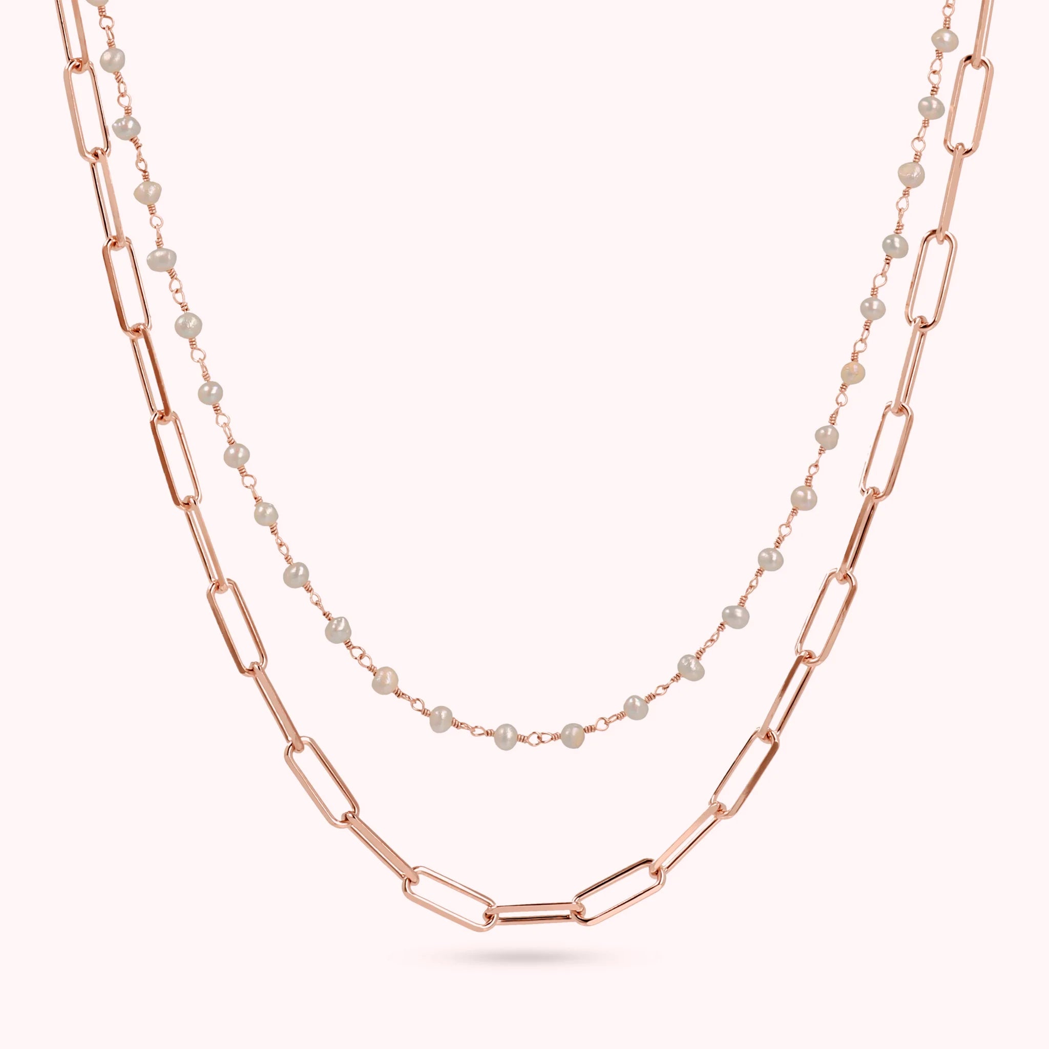 Collana Multifilo Catena Forzatina e Rosario di Perle d'Acqua Dolce Bianche Ø 3.5 mm