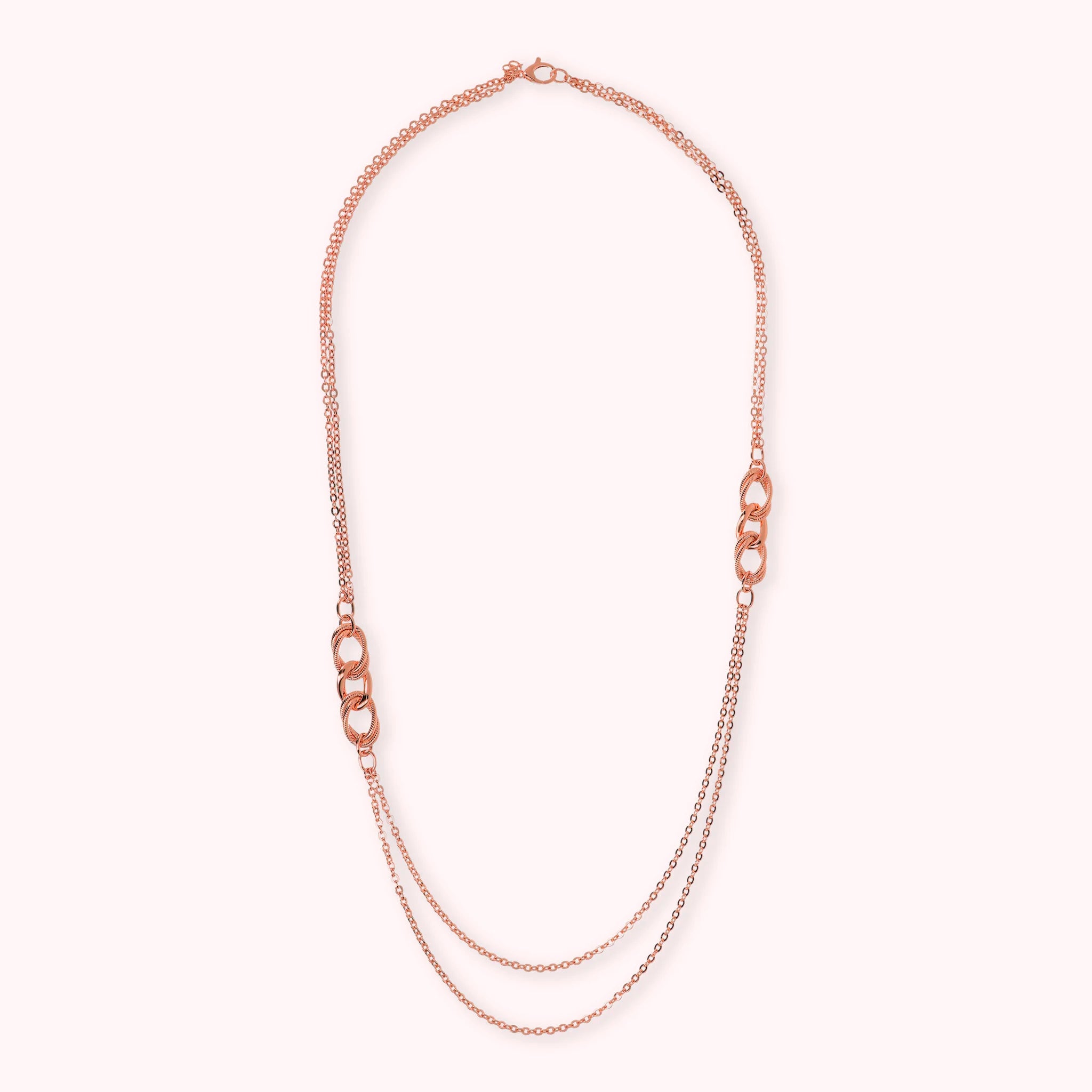 Collana Bronzallure realizzata in lega Golden Rosé, placcata oro rosa 18kt a doppio filo di catena rolo impreziosita da elementi a grumetta in Golden Rosé, con chiusura a moschettone.