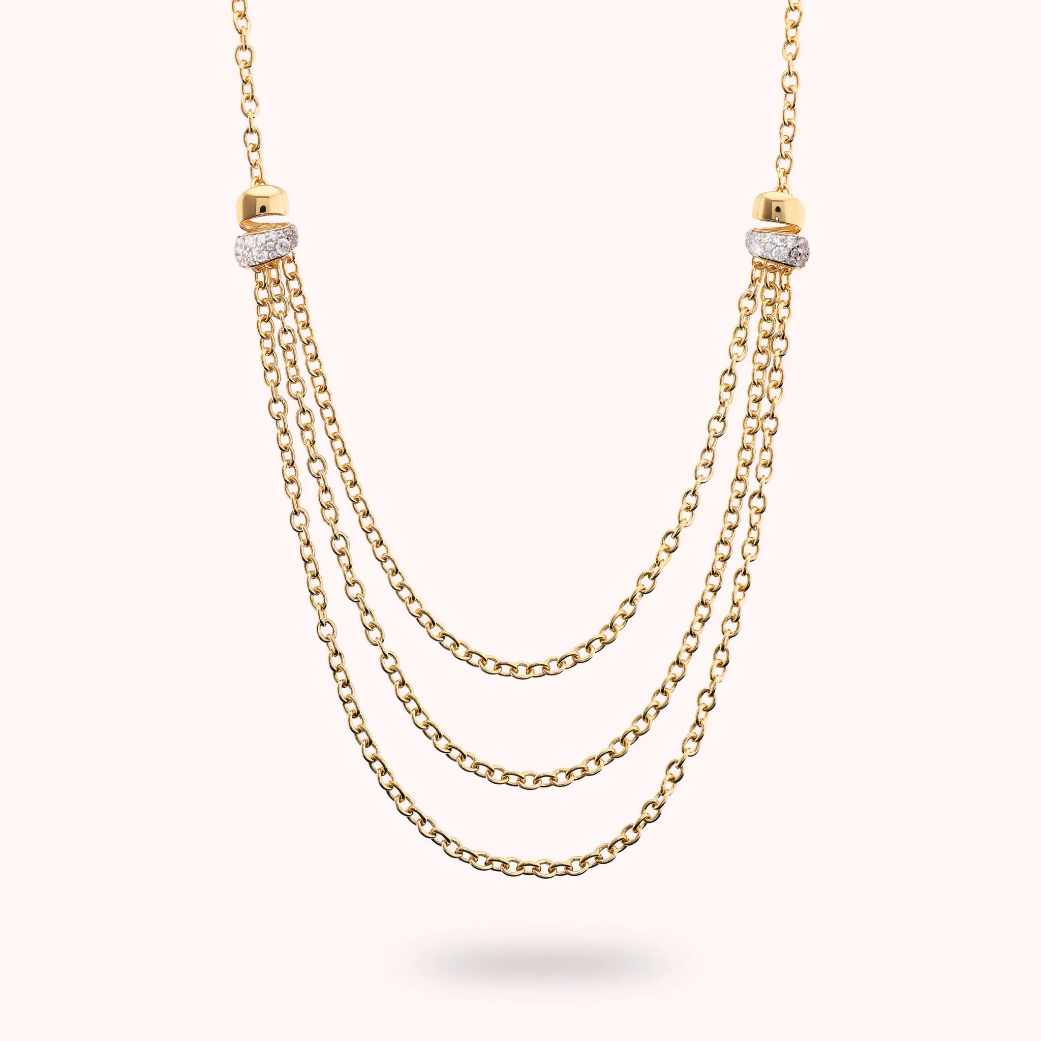 Collana Multifilo Golden Catena Rolo con Pavé in Cubic Zirconia
