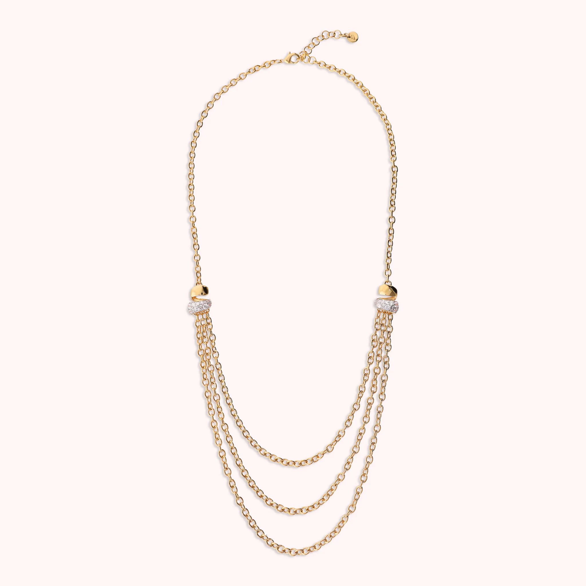 Collana multi-filo Bronzallure realizzata in lega Golden Rosé, placcata Oro giallo 18kt, con catena rolo ovale graduata (20/24/28 cm) ed elementi in pavé di cubic zirconia.