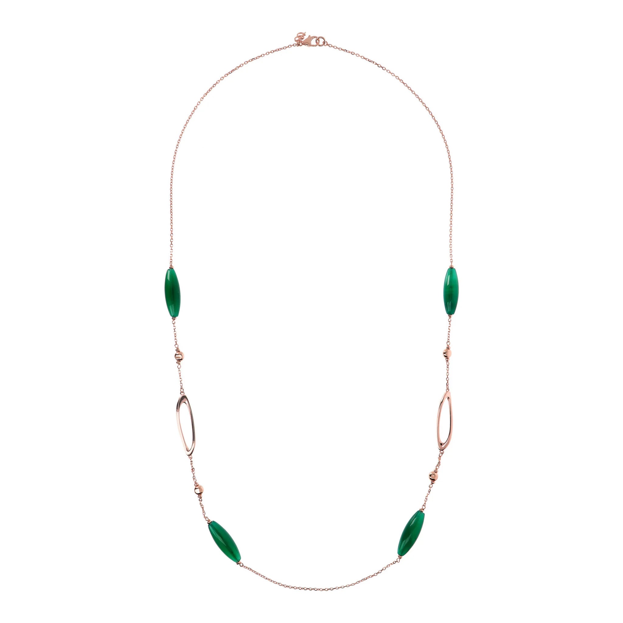 Collana Lunga Catena Rolo con Dettagli Ovali e Pietre Naturali
