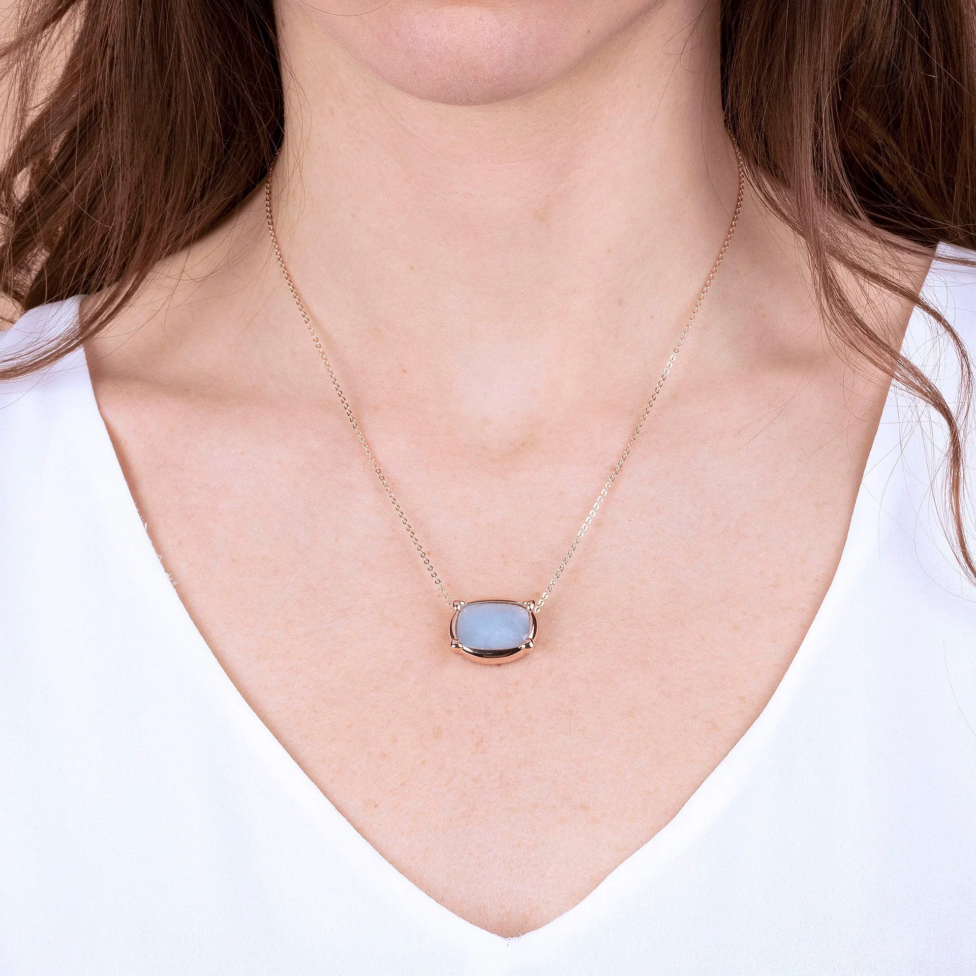 Collana Bronzallure realizzata in lega Golden Rosé, placcata oro rosa 18kt, con catena forzatina impreziosita da un pendente ovale in pietra naturale (16x12 mm). Chiusura a moschettone con extender.