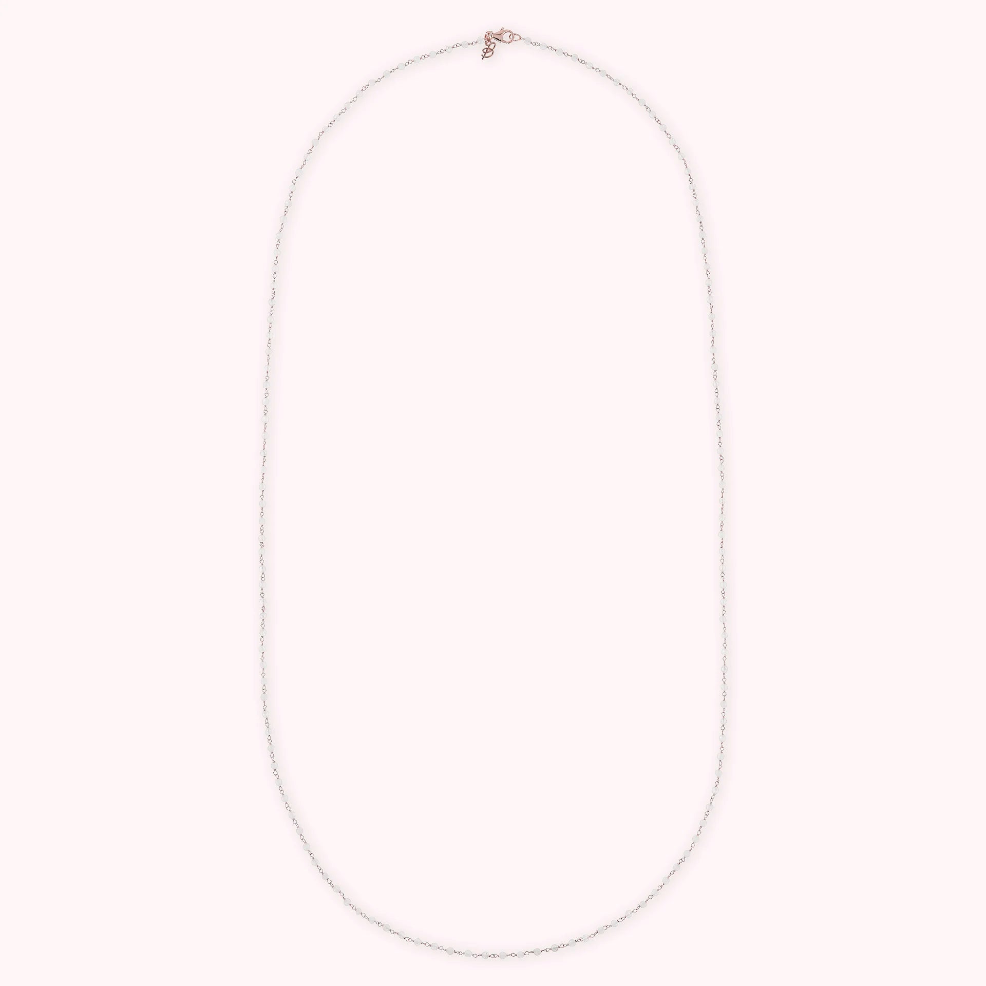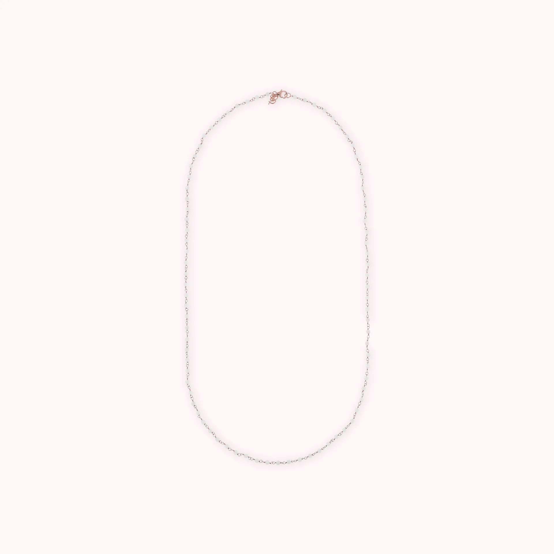 Collana rosario Bronzallure realizzata in lega Golden Rosé, placcata oro rosa 18kt, impreziosita da piccole pietre naturali quarzite bianca (3.5 mm); chiusura a moschettone. Disponibile in tre misure: short (38 cm), medium (75 cm) e long (100 cm).