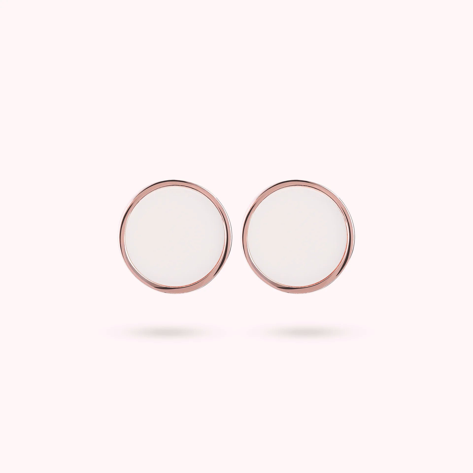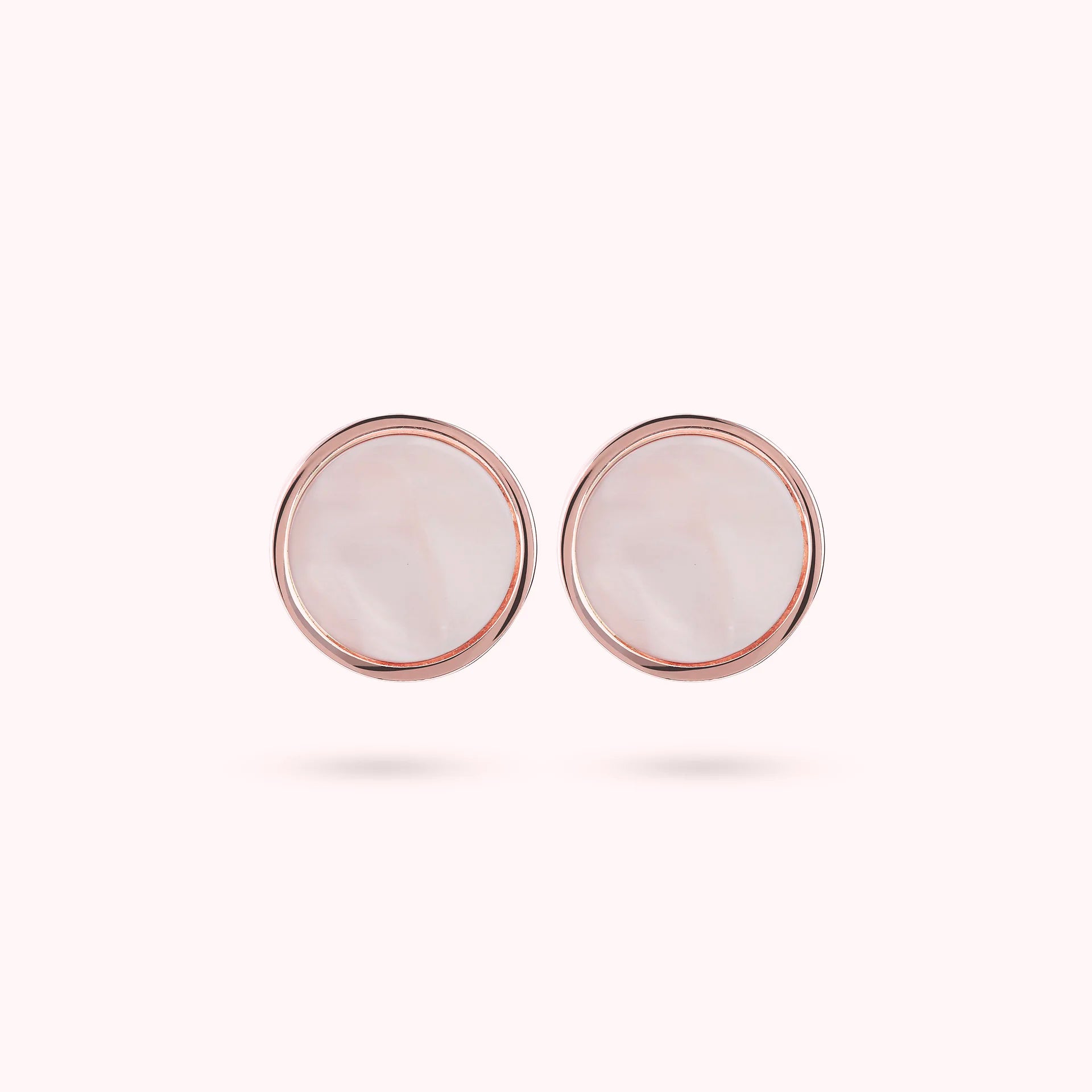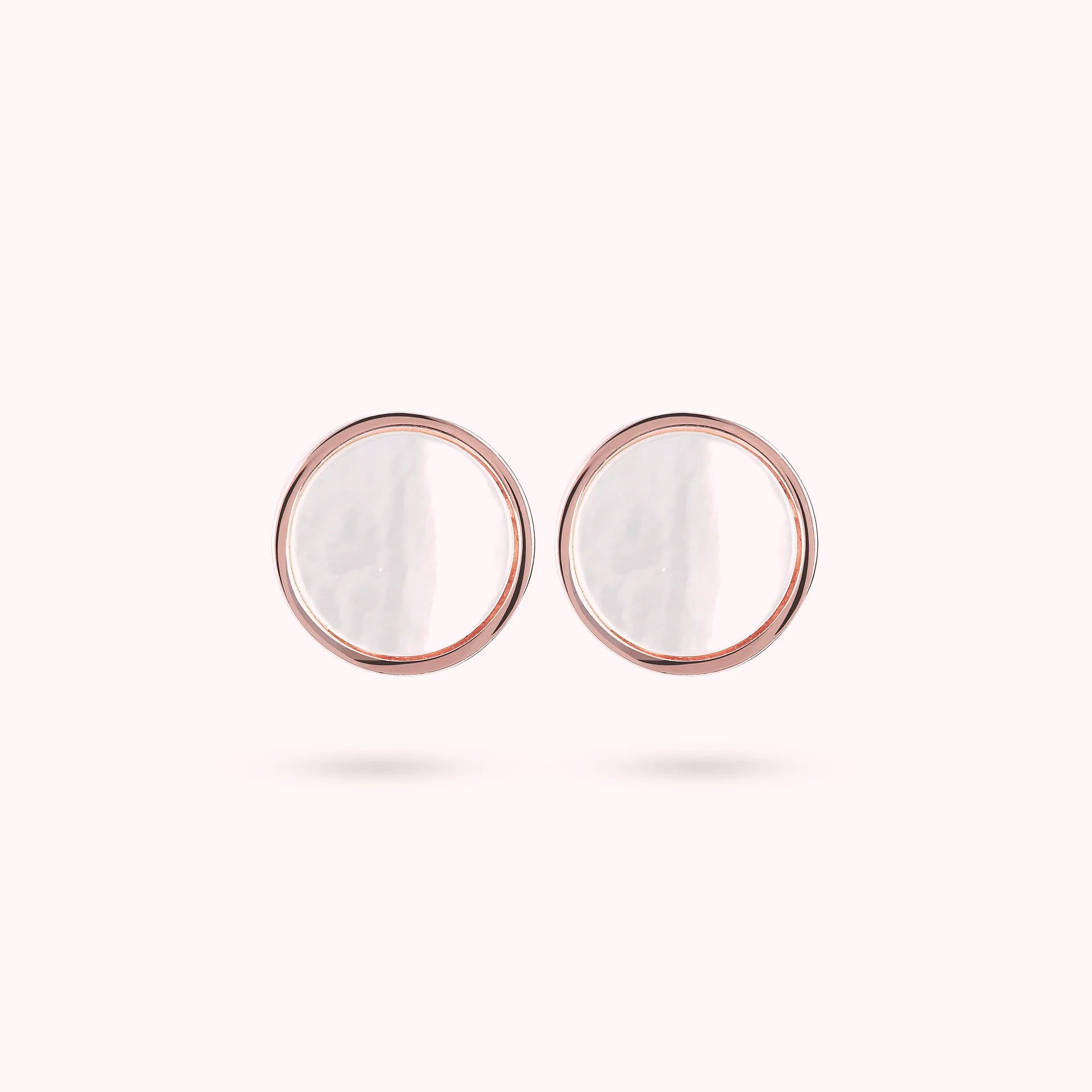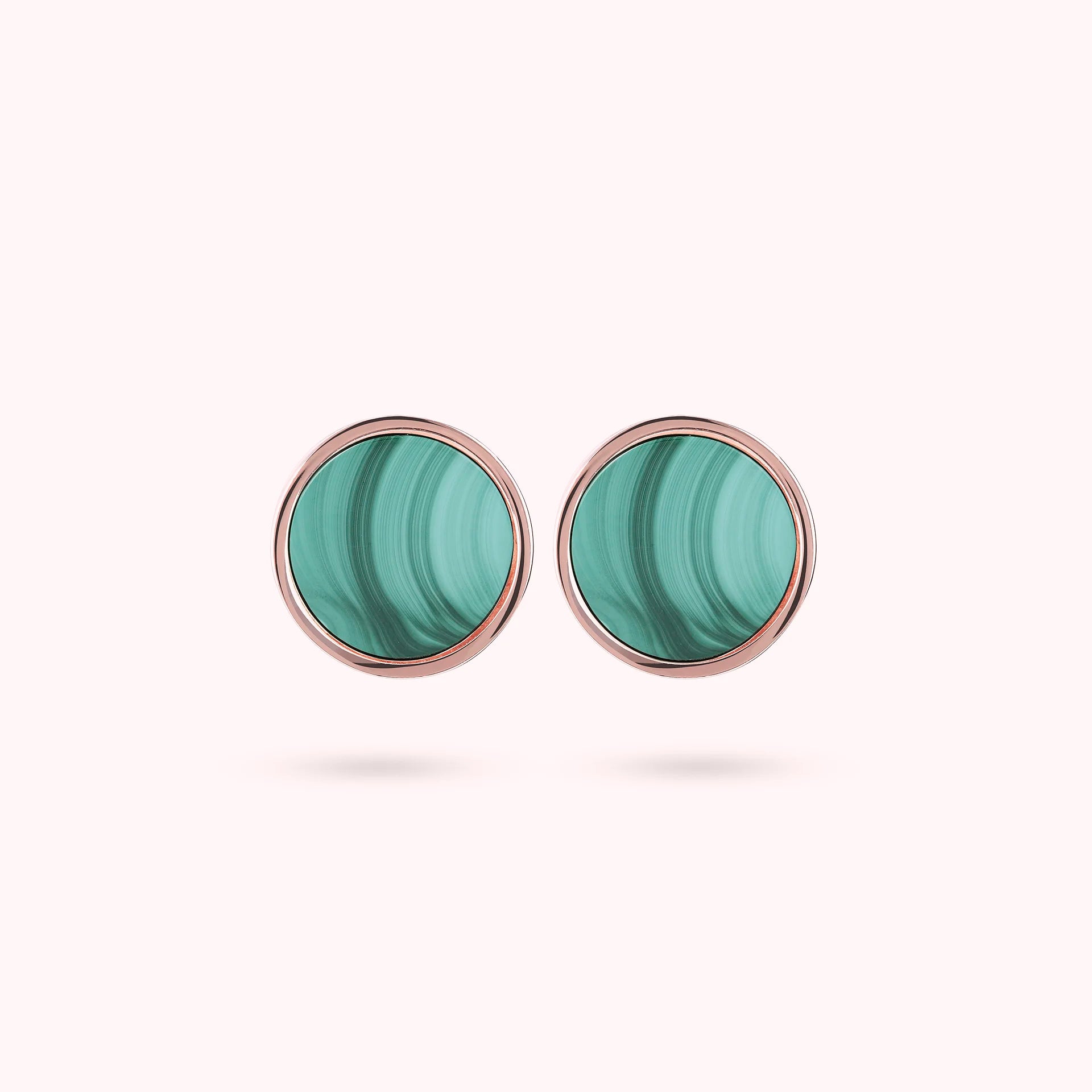 Orecchini a bottone Bronzallure realizzati in lega Golden Rosé, placcati oro rosa 18kt, con disco piccolo (1 cm) in pietra naturale montato su base placcata oro rosa 18kt; chiusura a perno e farfalla.