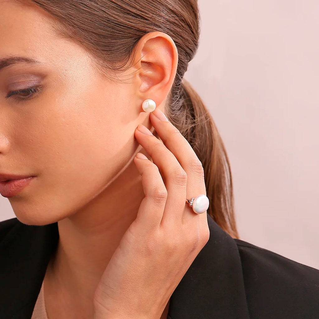 Orecchini a Bottone con Perle d'Acqua Dolce Bianche Ø 10 mm