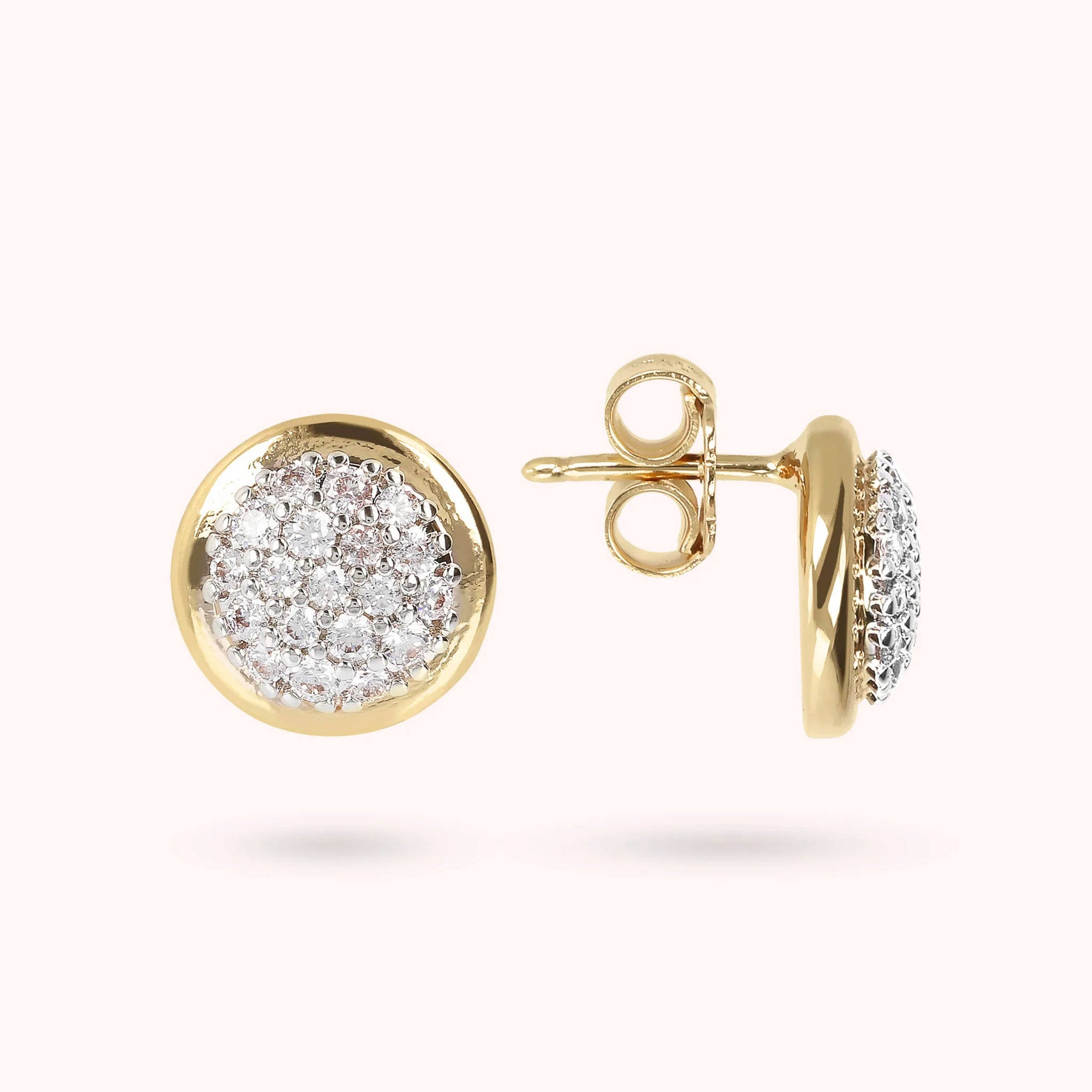 Orecchini a Bottone Golden con Pavé in Cubic Zirconia