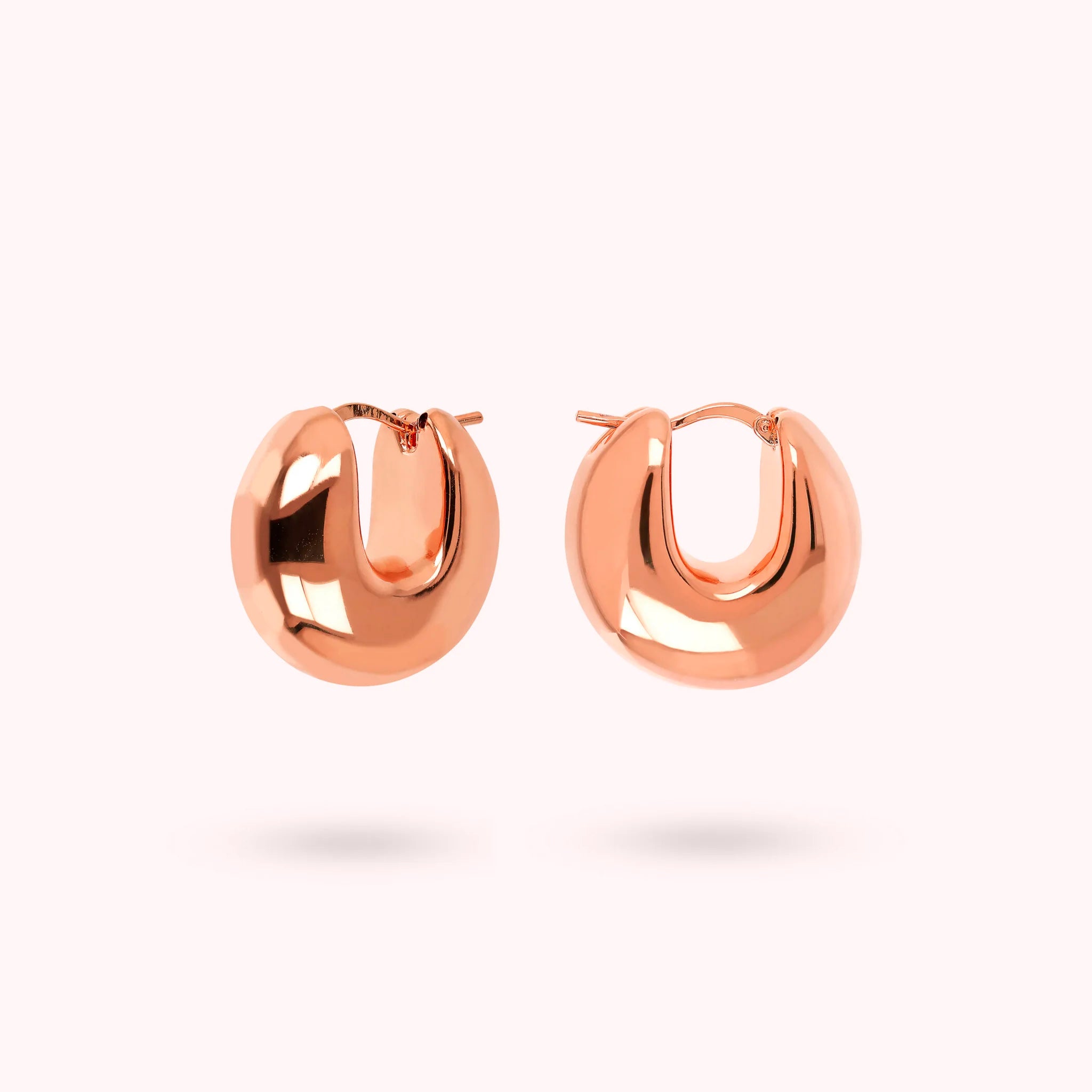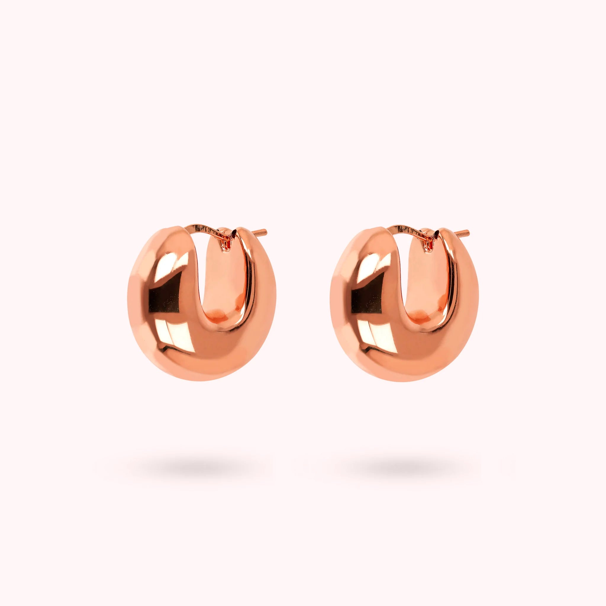 Orecchini a cerchio Bronzallure realizzati in lega Golden Rosé, placcata oro rosa 18kt, dal design bombato; chiusura a baionetta. Diametro esterno 2.3 cm.