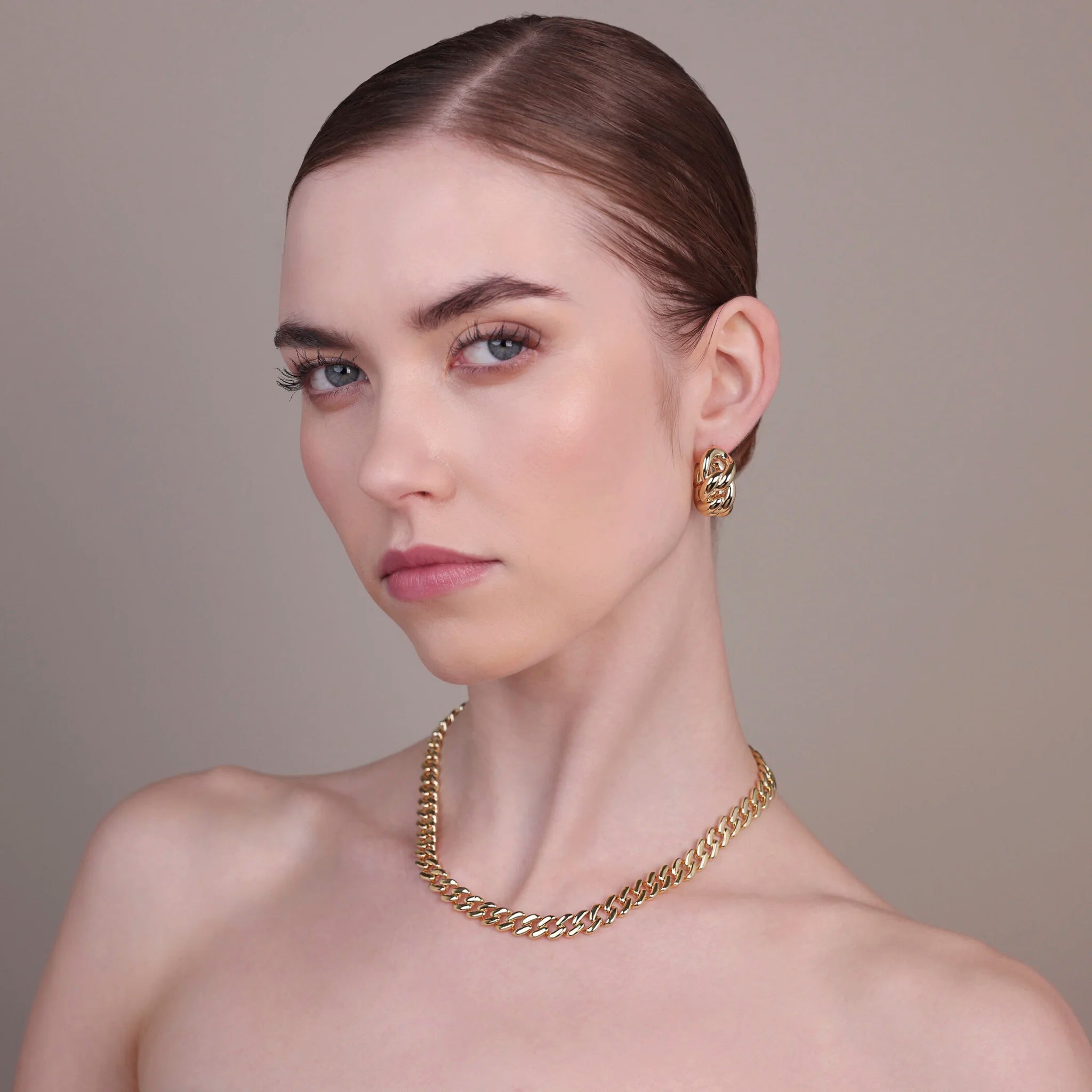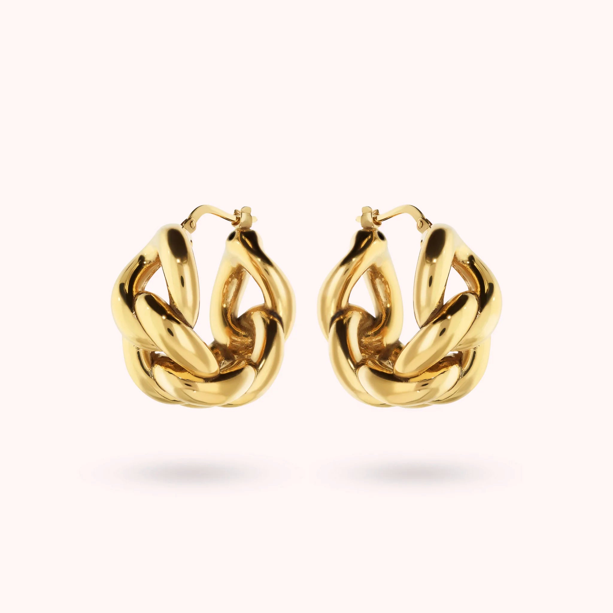 Orecchini a cerchio Bronzallure realizzati in lega Golden Rosé, placcata Oro giallo 18kt, con catena grumetta lucida. Chiusura a baionetta.