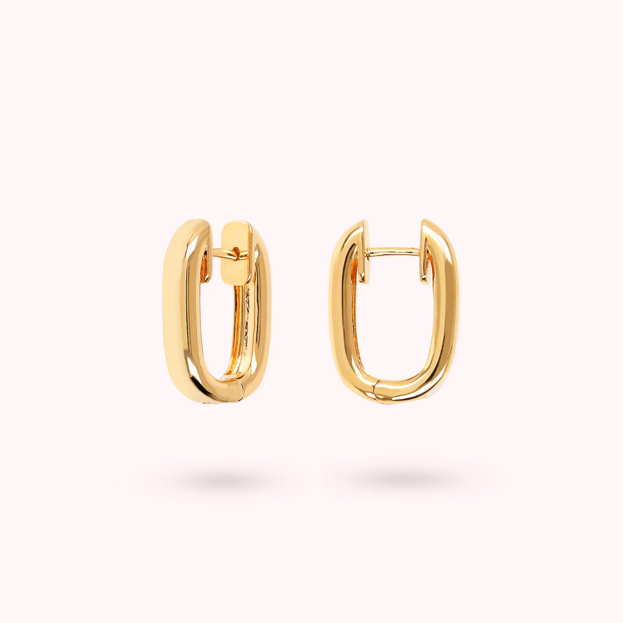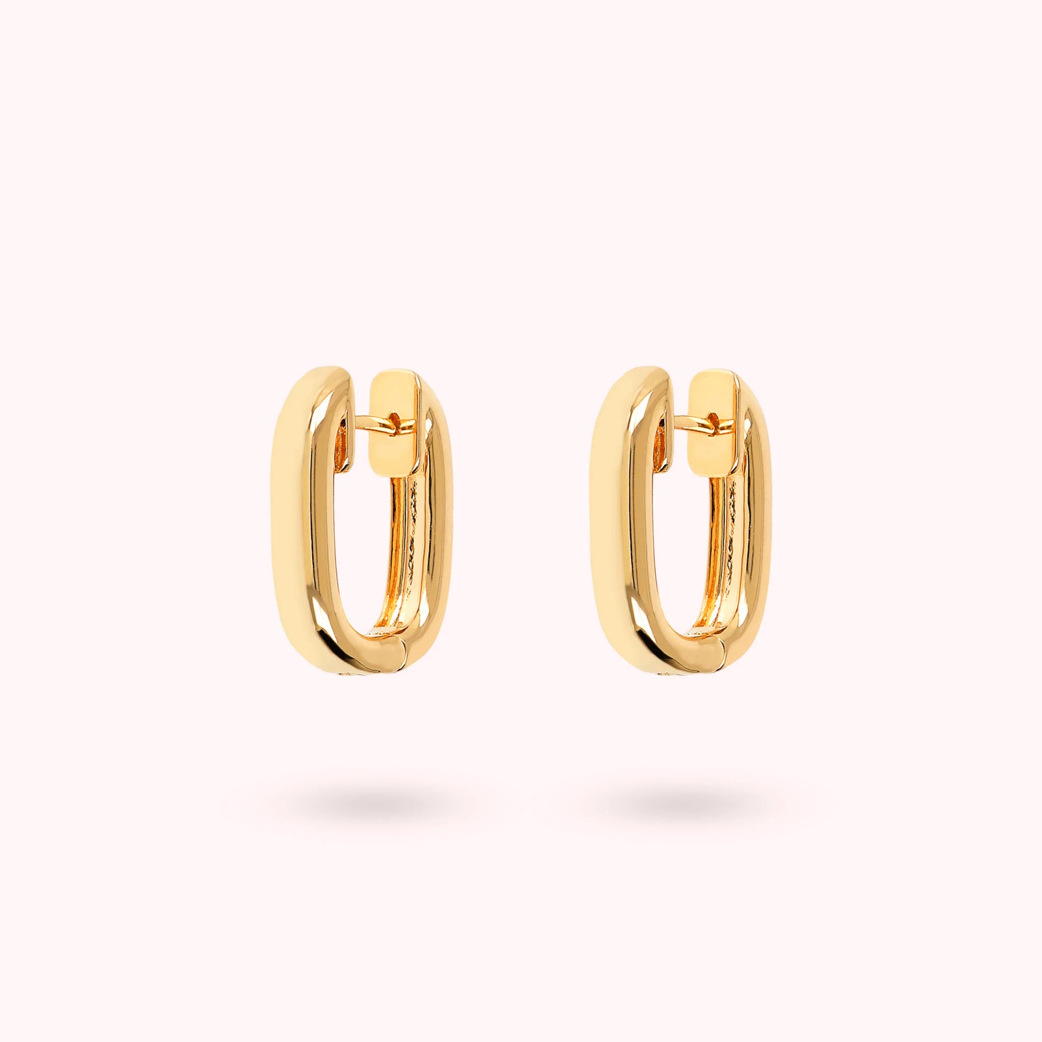 Orecchini a cerchio Bronzallure realizzati in lega Golden Rosé, placcati oro giallo 18kt, dalla forma ovale squadrata; chiusura con perno a incastro.