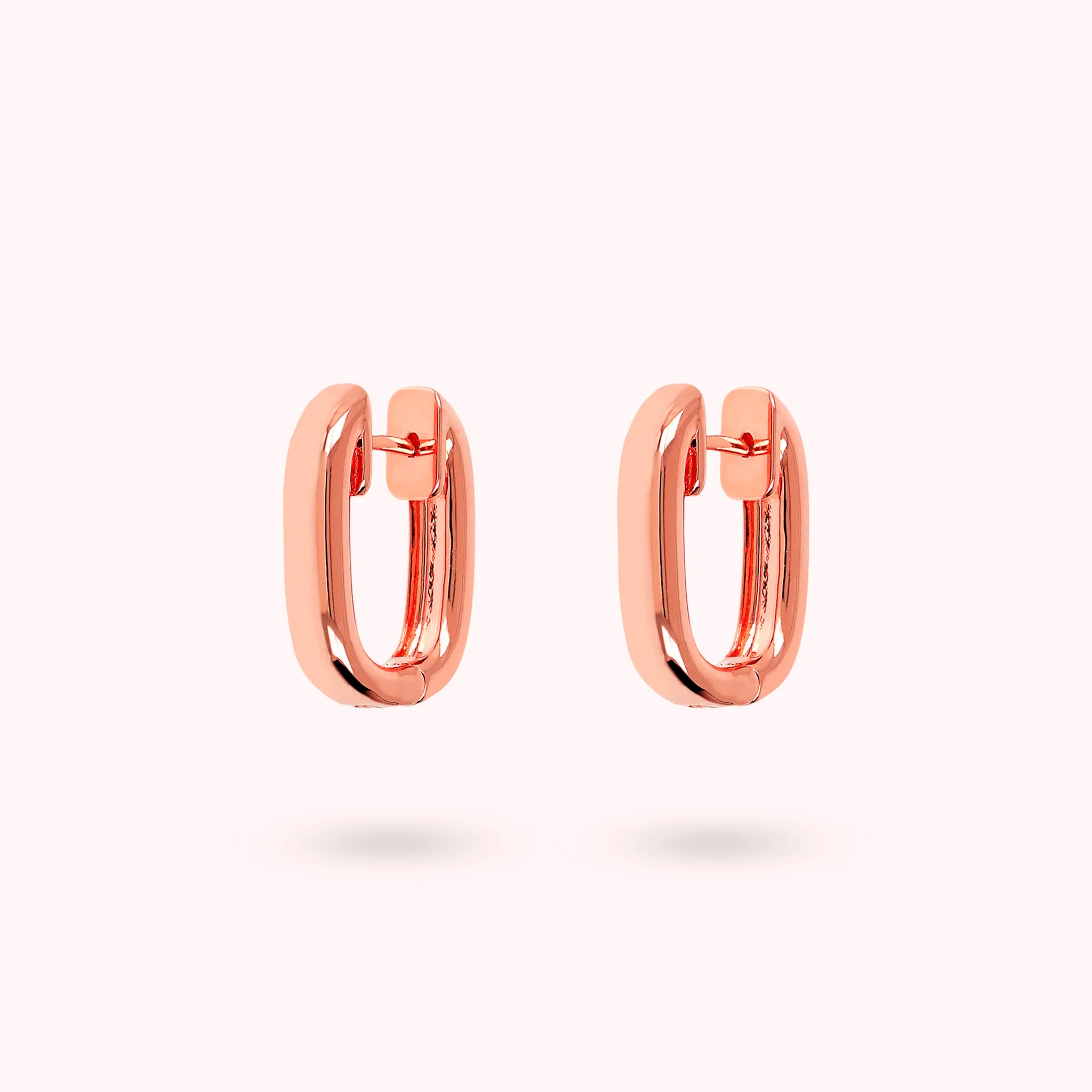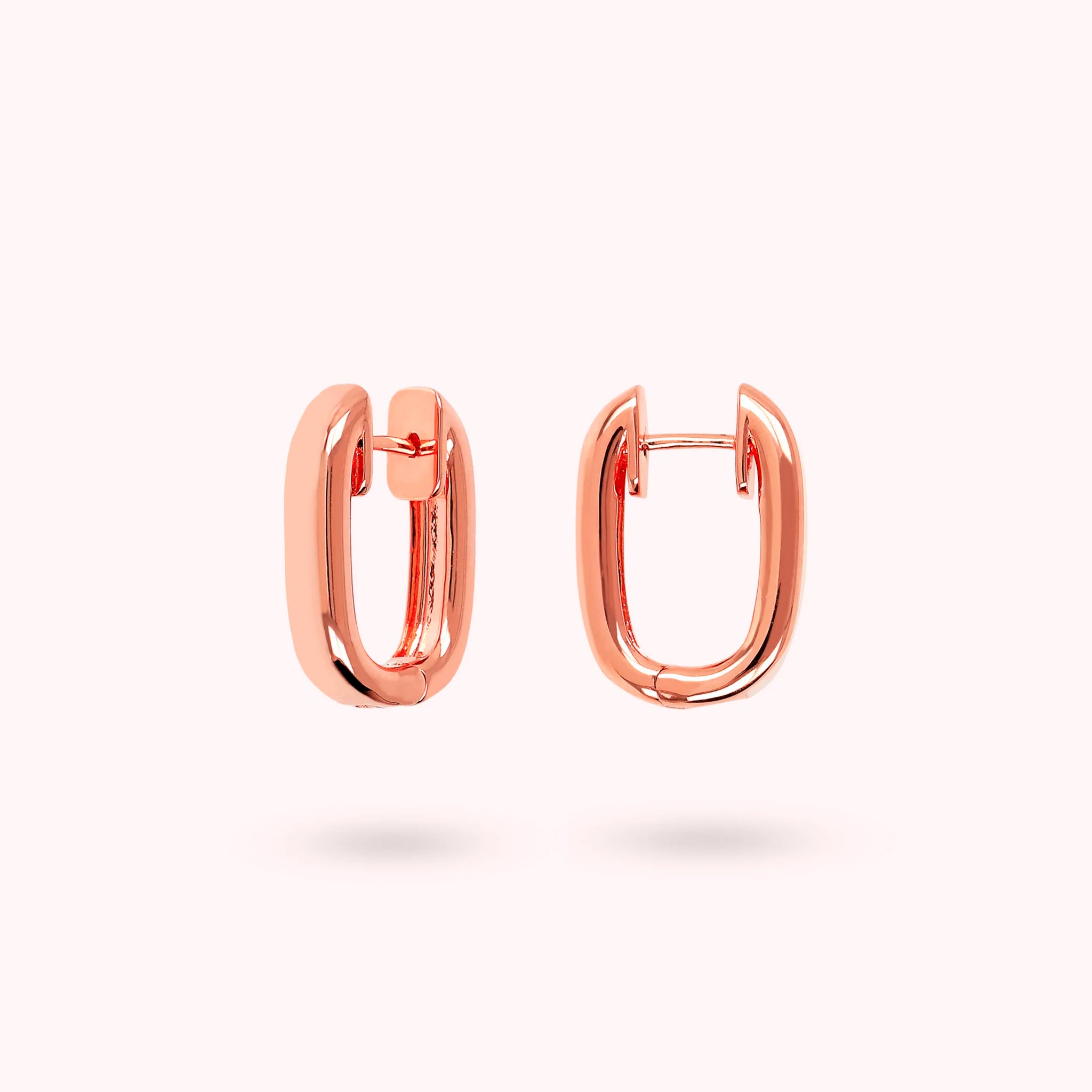 Orecchini a cerchio Bronzallure realizzati in lega Golden Rosé, placcati oro rosa 18kt, dalla forma ovale squadrata; chiusura con perno a incastro.