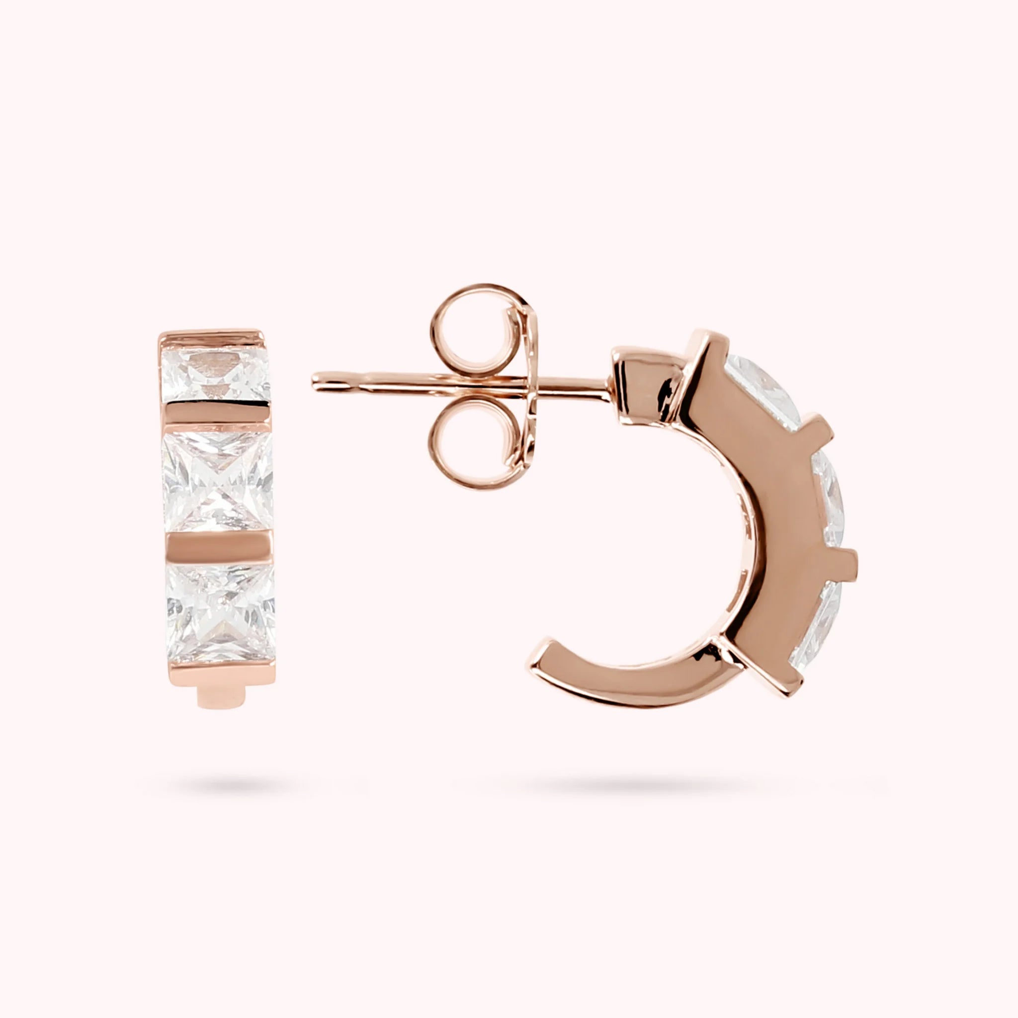 Orecchini a Cerchio Piccoli con Cubic Zirconia Quadrate