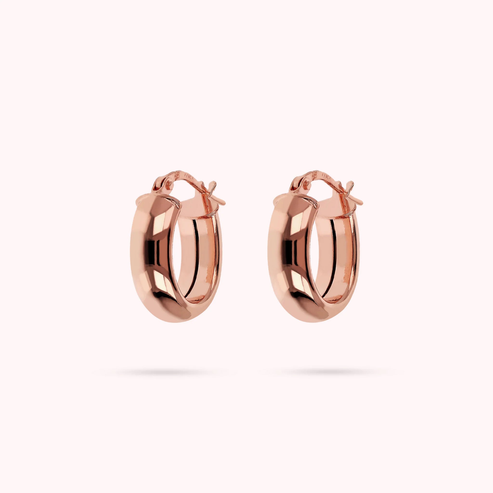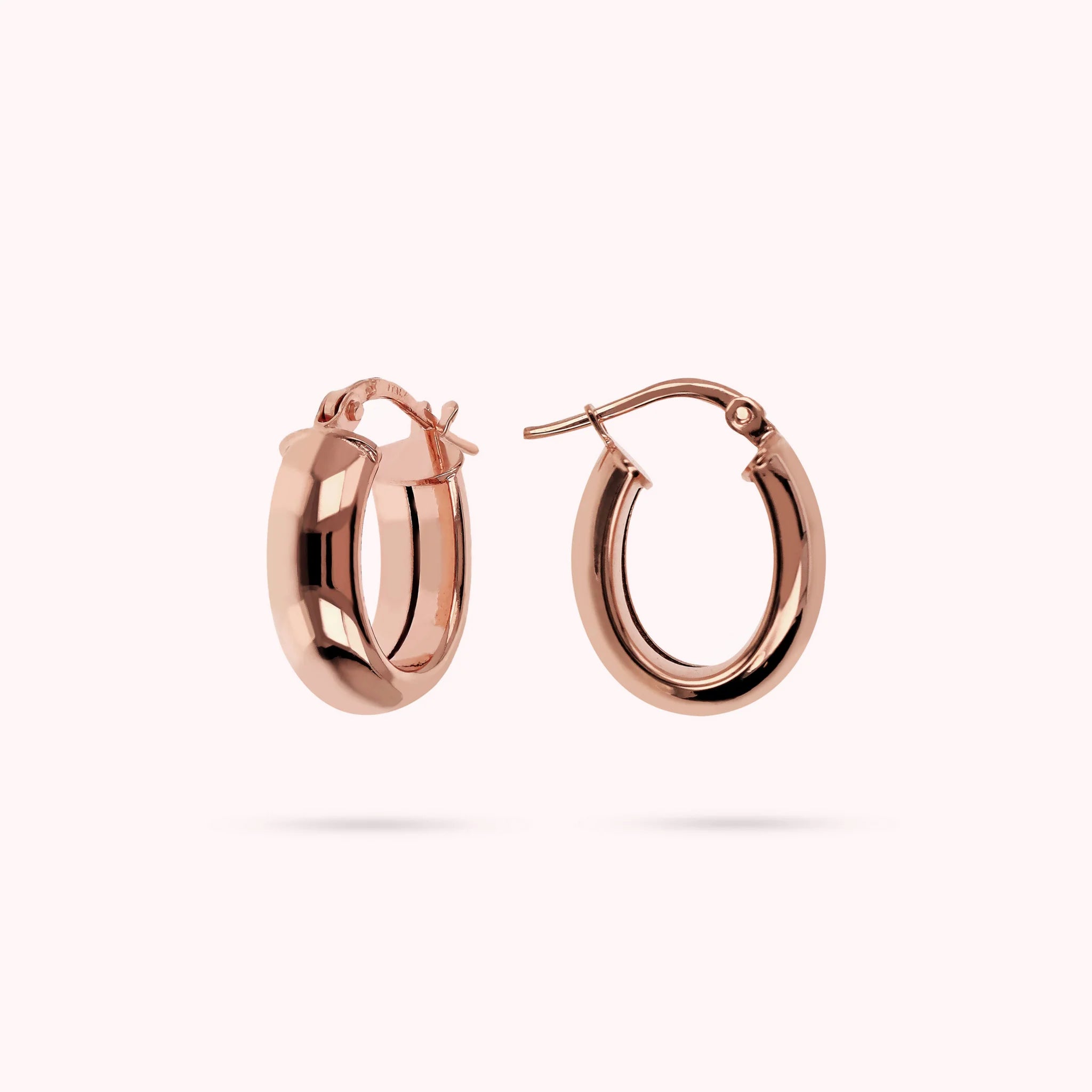 Orecchini a cerchio Bronzallure realizzati in lega Golden Rosé, placcata oro rosa 18kt, dalla forma ovale; chiusura a baionetta.