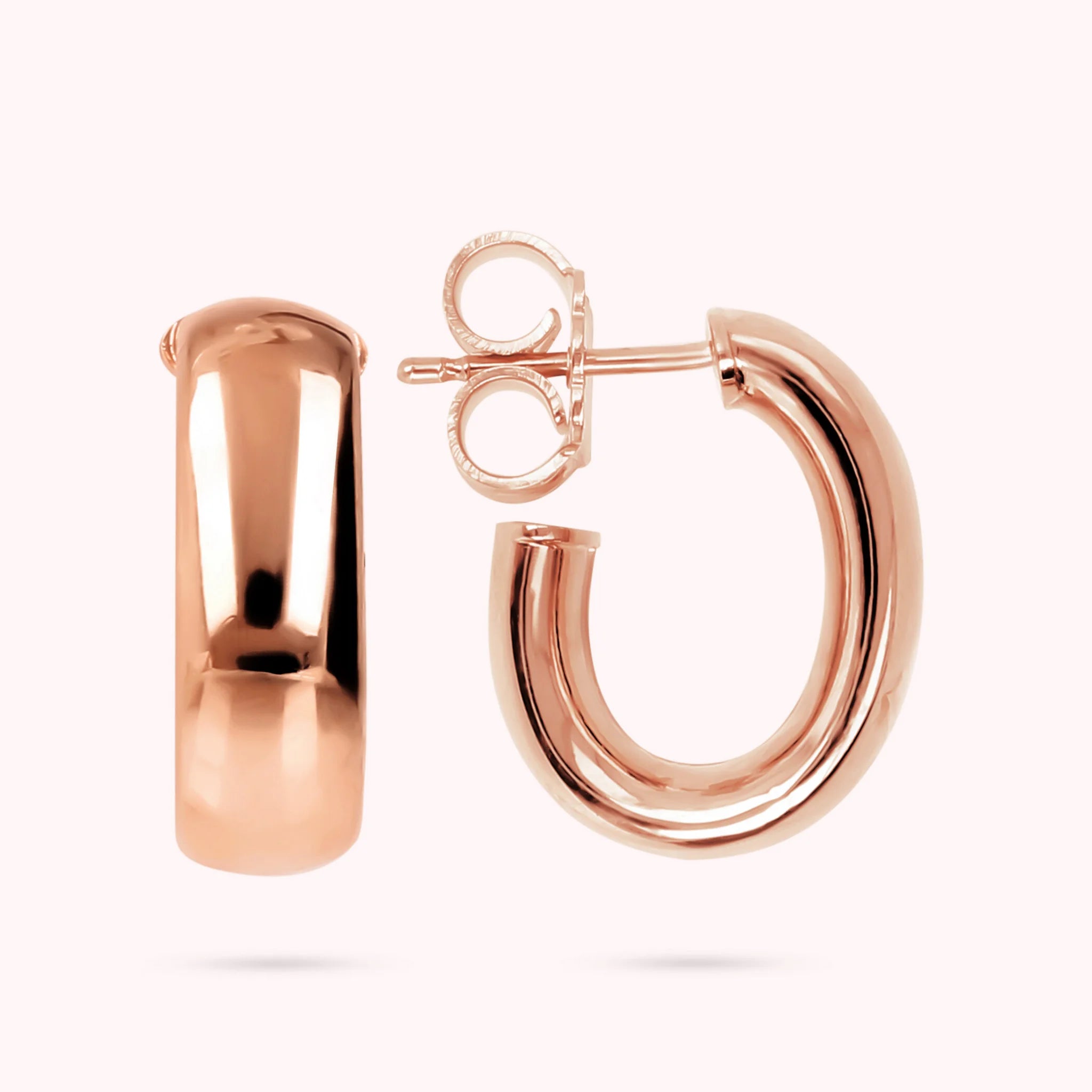 Orecchini a cerchio Bronzallure realizzati in lega Golden Rosé, placcati oro rosa 18kt, un classico della gioielleria; presenta una chiusura a perno e farfalla.