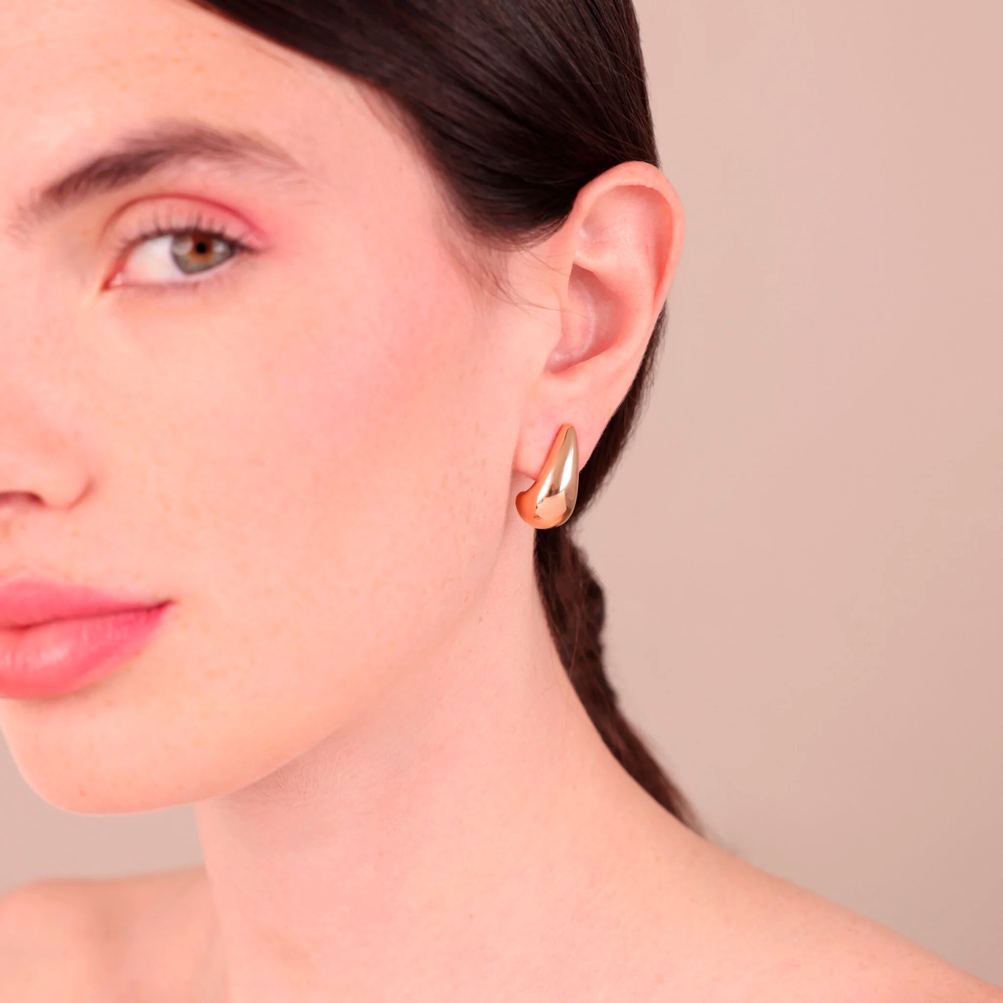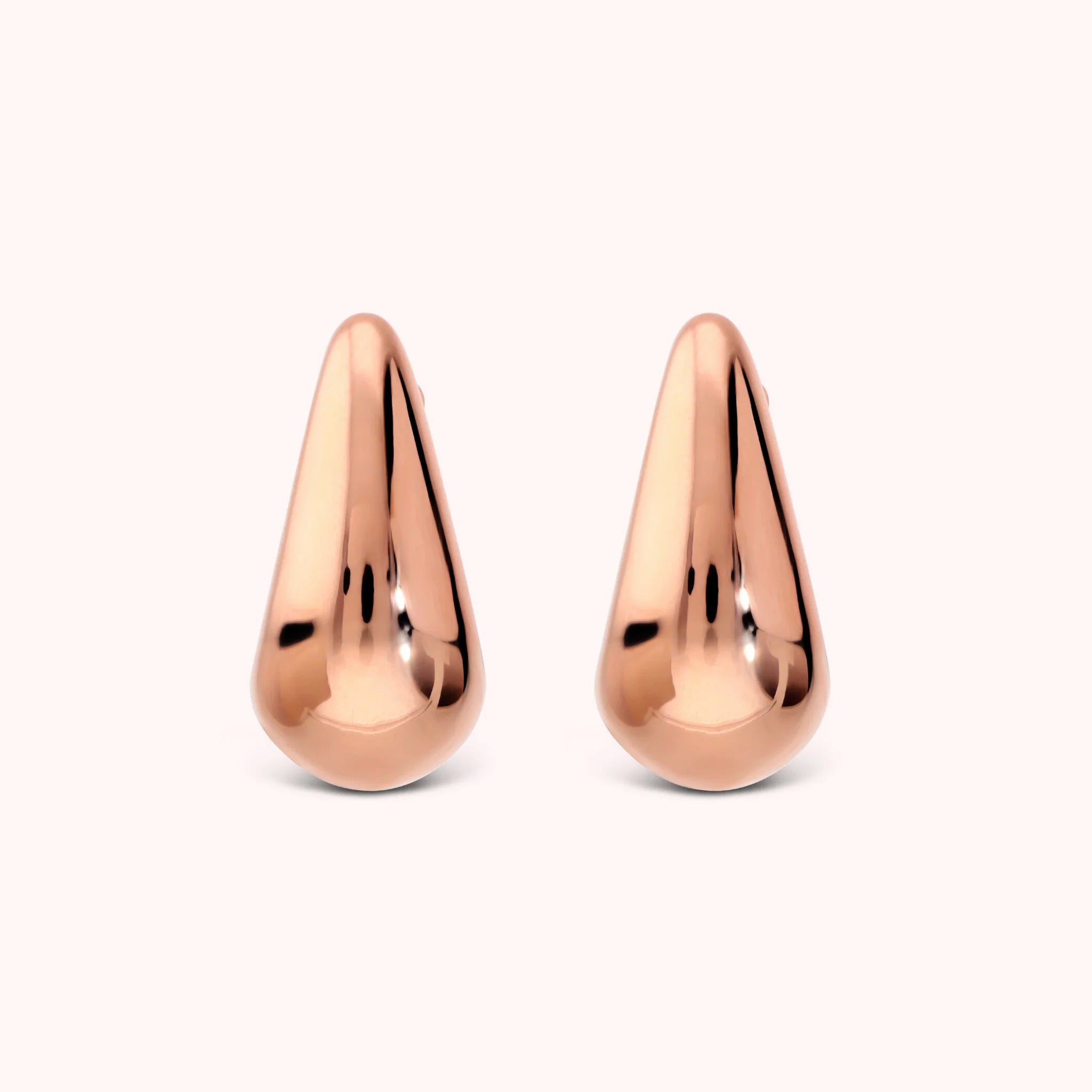 Orecchini a lobo Bronzallure realizzati in lega Golden Rosé, placcata Oro 18kt, dal design a goccia. Finitura lucida. Chiusura a perno e farfalla.