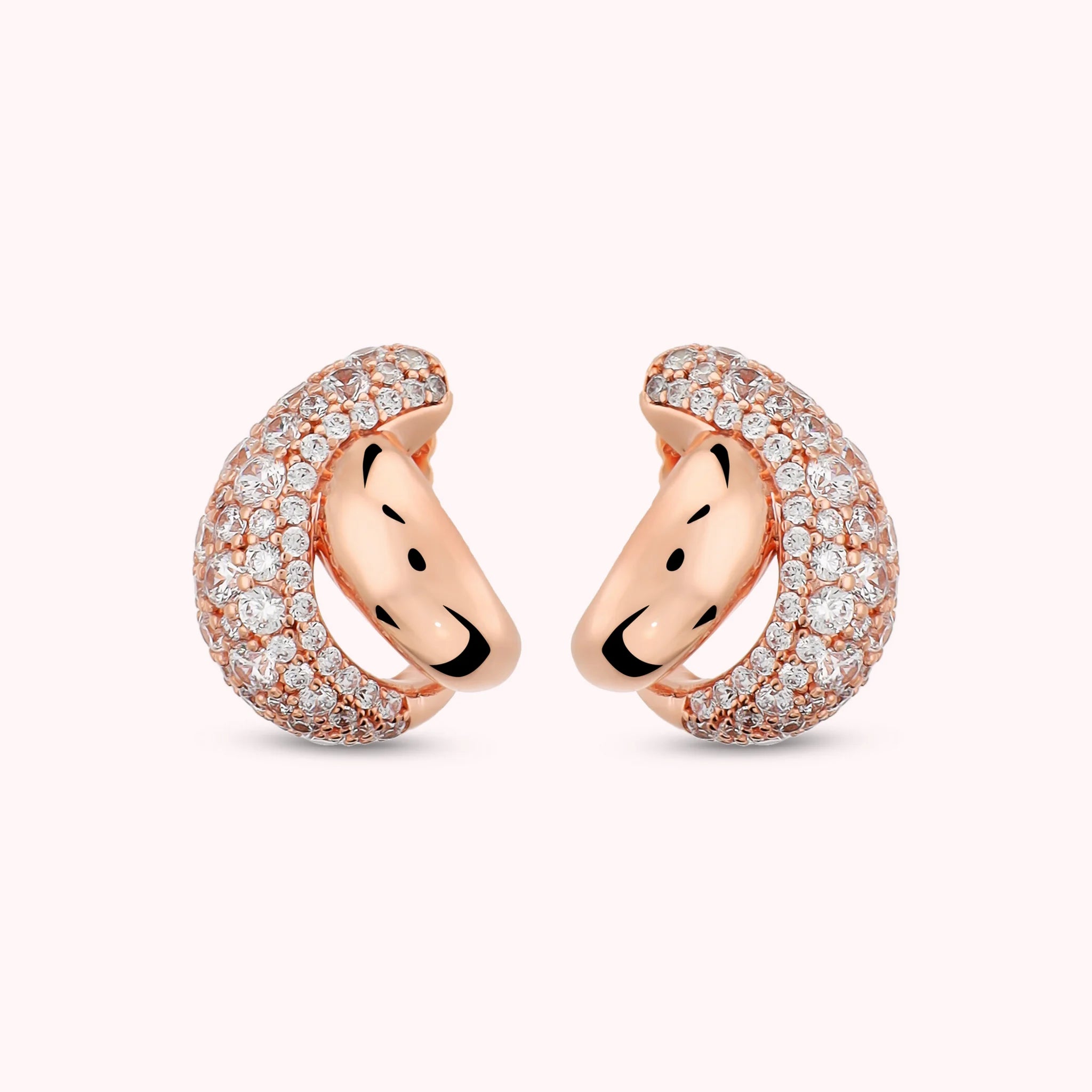 Orecchini a lobo Bronzallure realizzati in lega Golden Rosé, placcata Oro 18kt, dal design a incrocio con superficie lucida e in pavé di cubic zirconia, qualità luminosa. Chiusura a perno e farfalla.