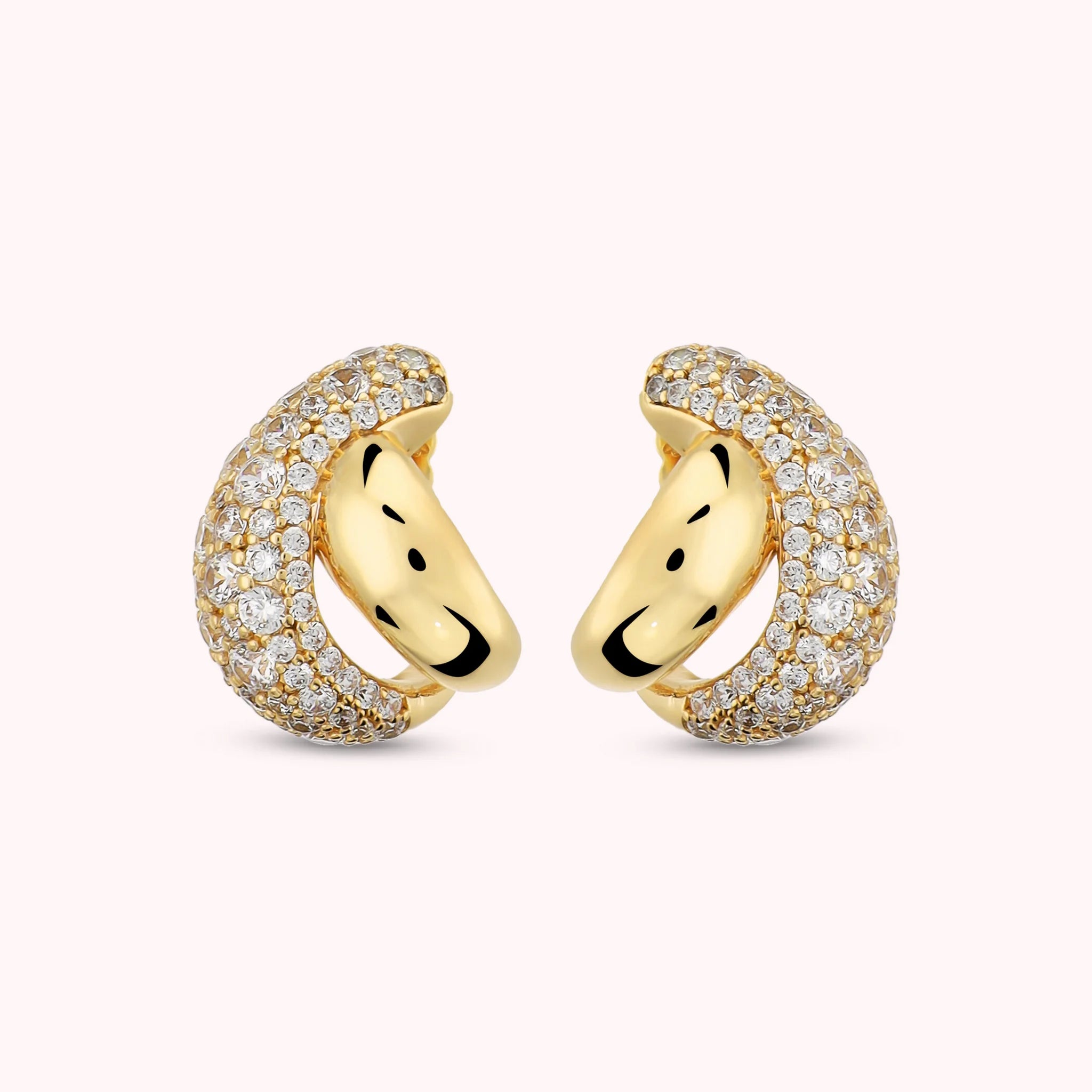 Linee che si intrecciano in un equilibrio perfetto tra superfici lucide e bagliori delicati. Un design raffinato che illumina il volto con stile moderno e femminile.