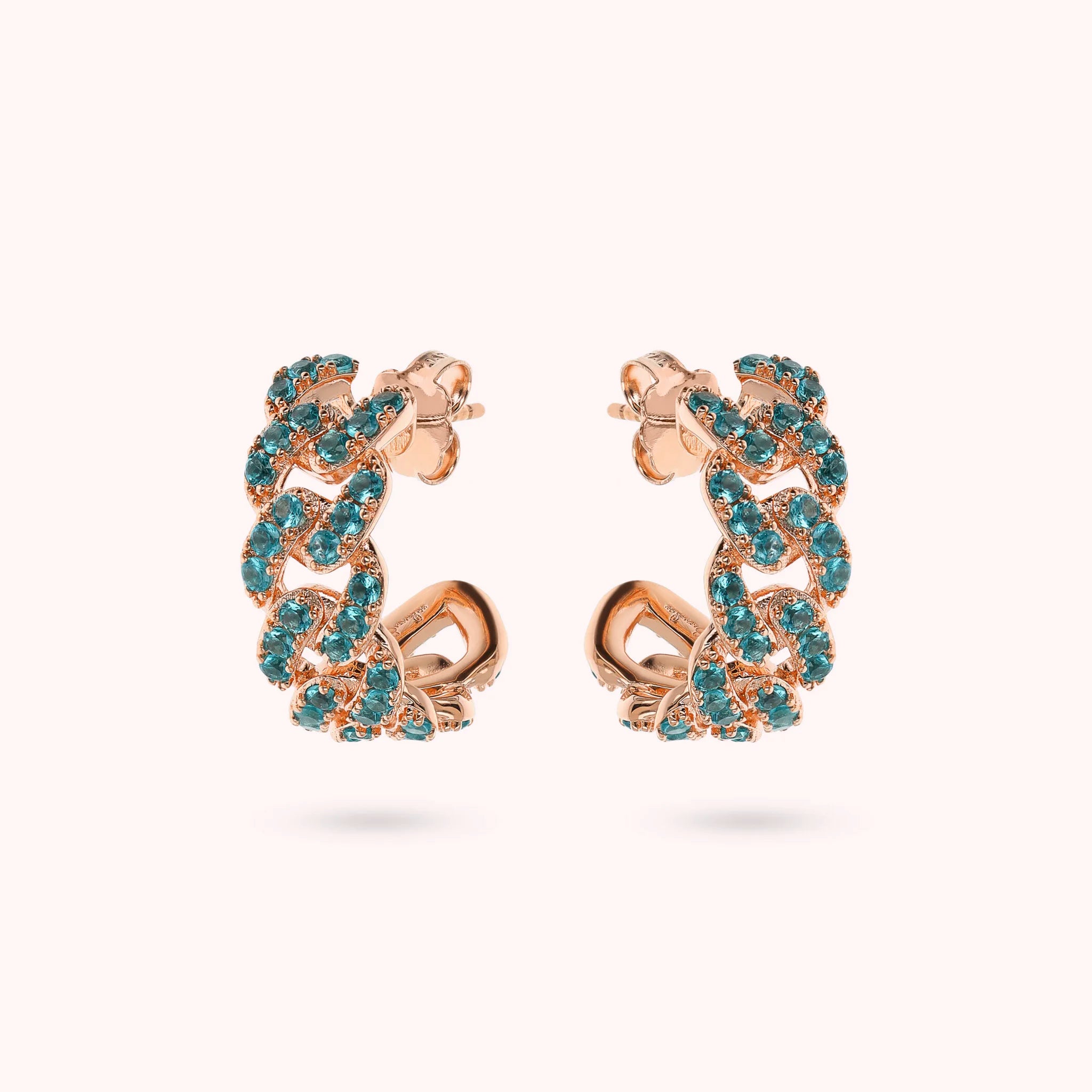 Orecchini a Lobo Catena Grumetta Squadrata con Pavé di Cubic Zirconia