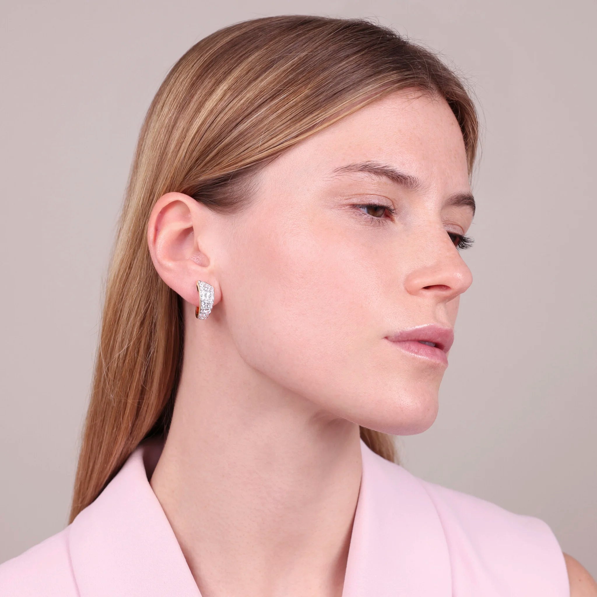 Orecchini a Lobo Golden Graduati in Pavé di Cubic Zirconia