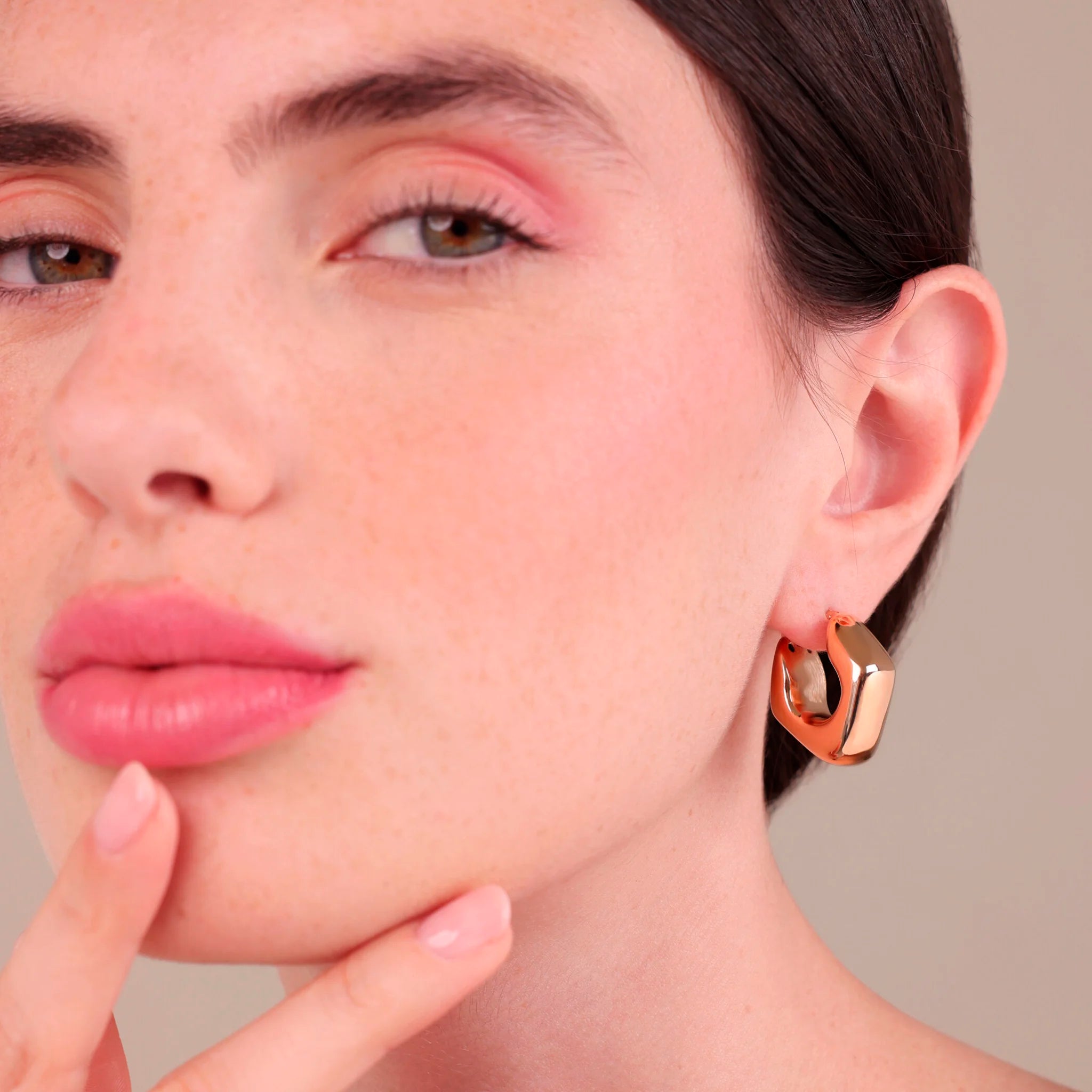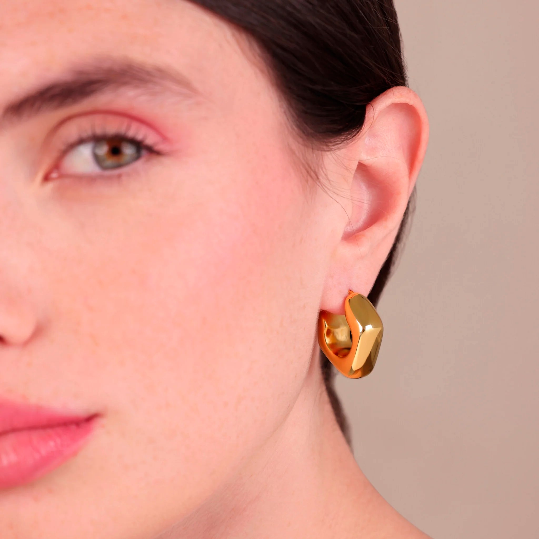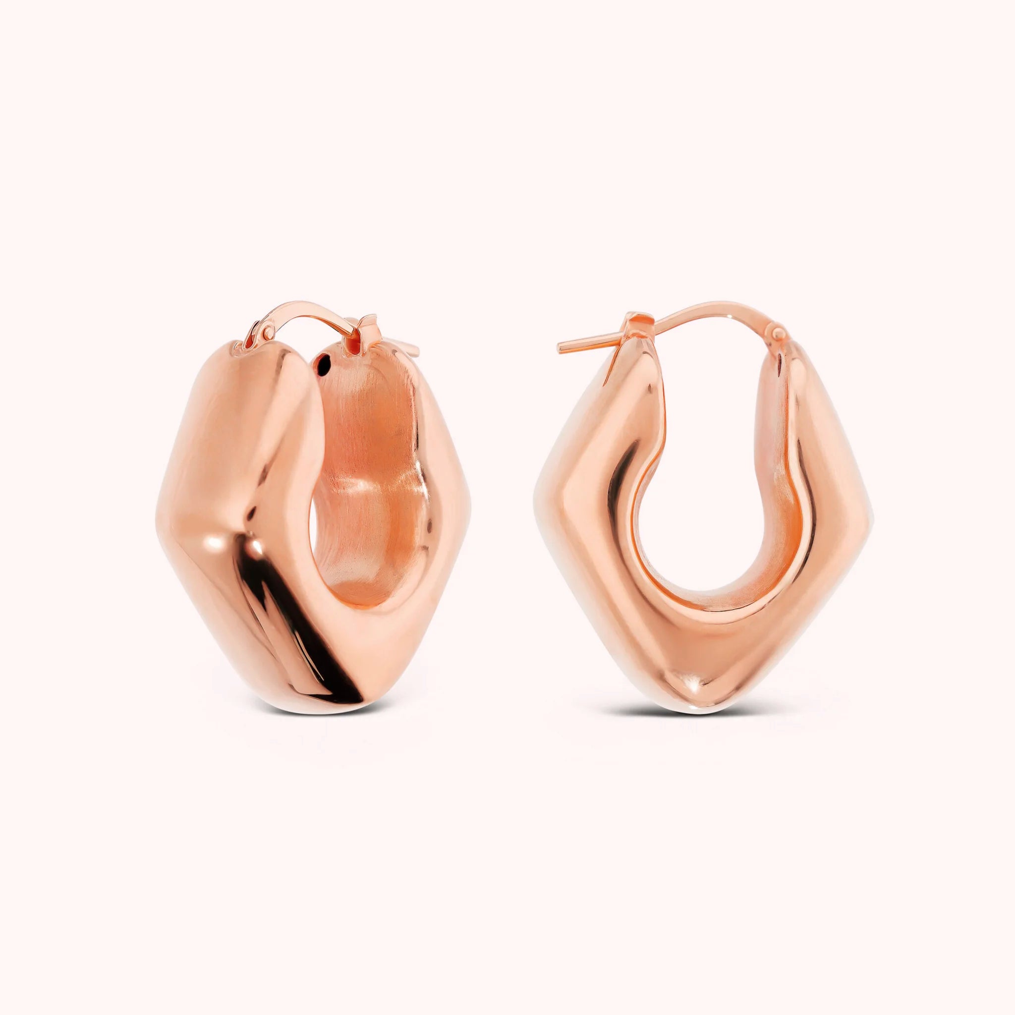Orecchini dalle forme morbide e sinuose, racchiudono tutta la luce calda del Golden Rosé in un design scultoreo e raffinato. Un dettaglio audace e femminile, nato per farsi notare con eleganza.