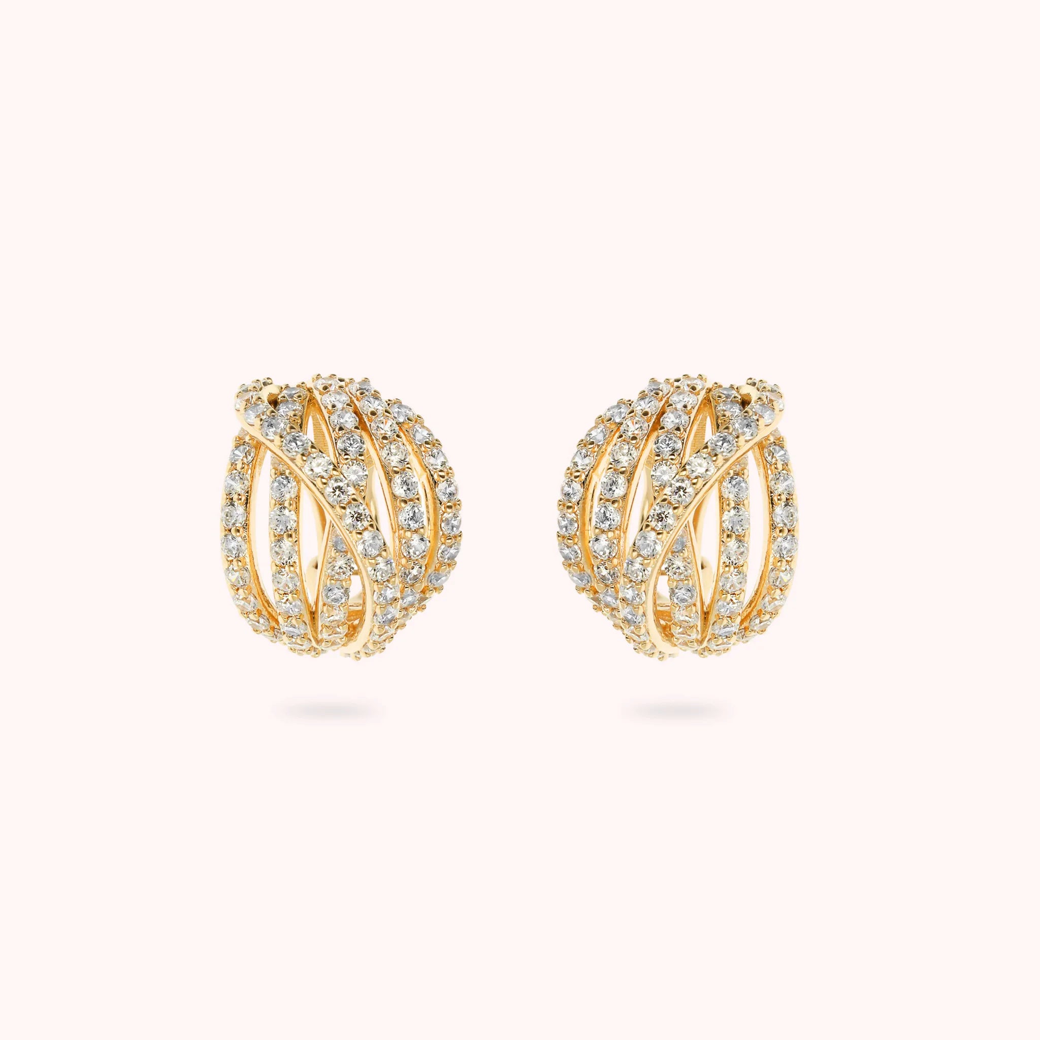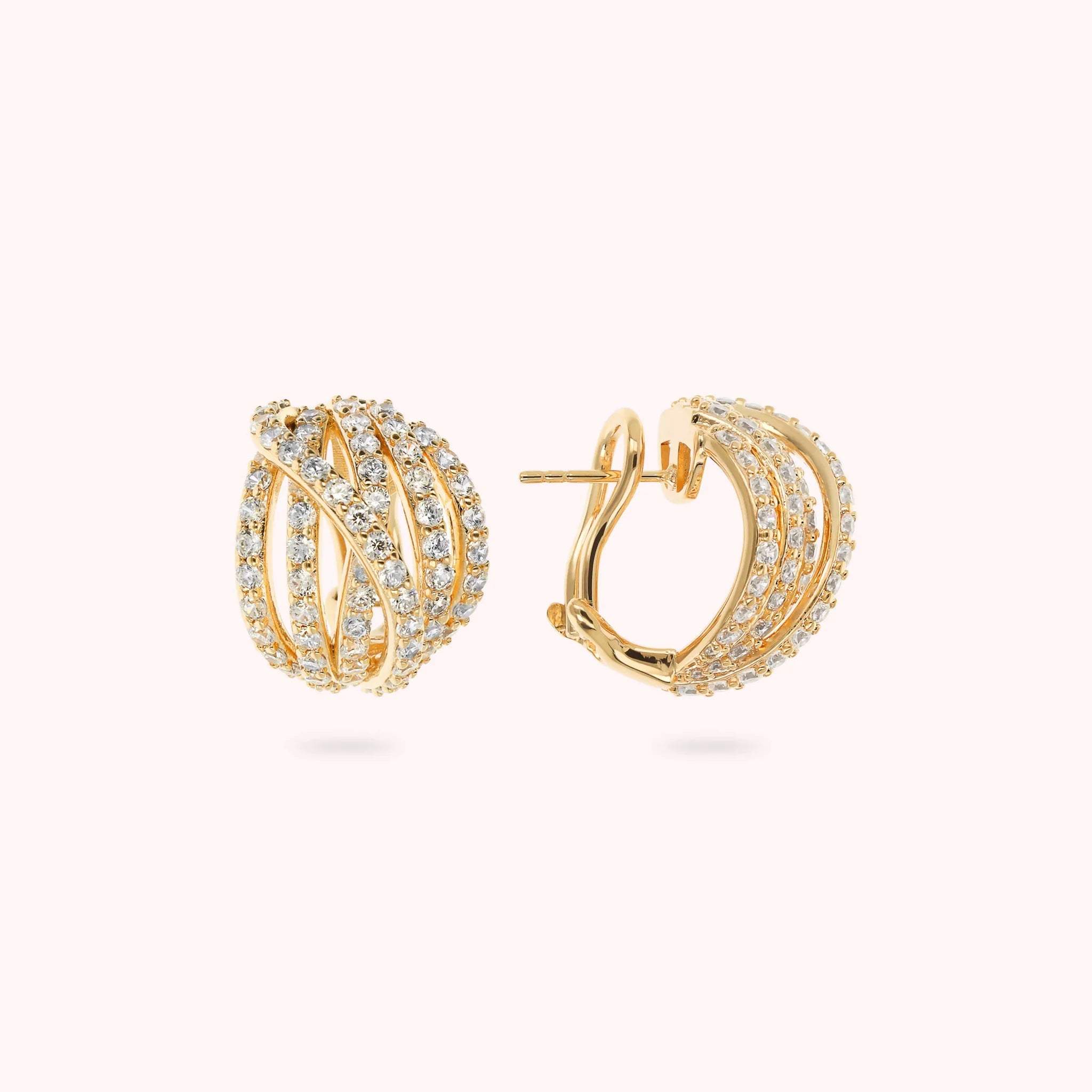 Orecchini a Sfera Golden Multifilo Incrociato con Pavé di Cubic Zirconia
