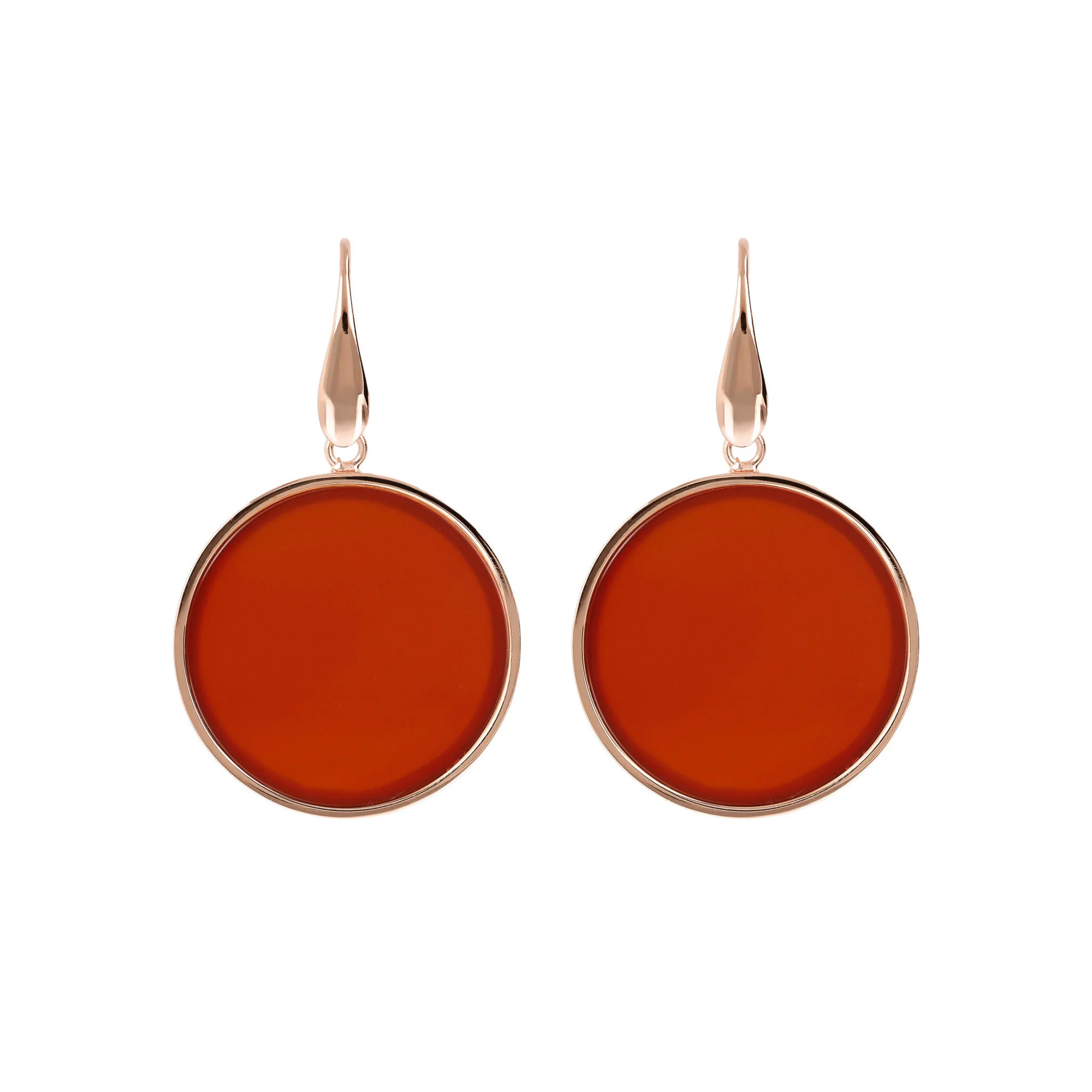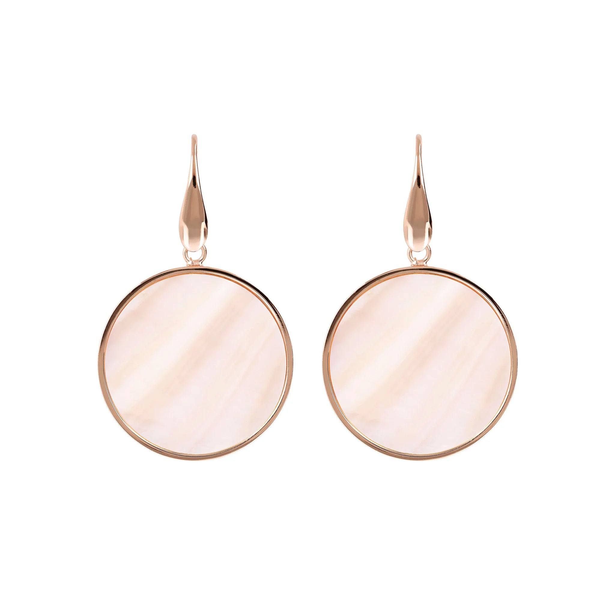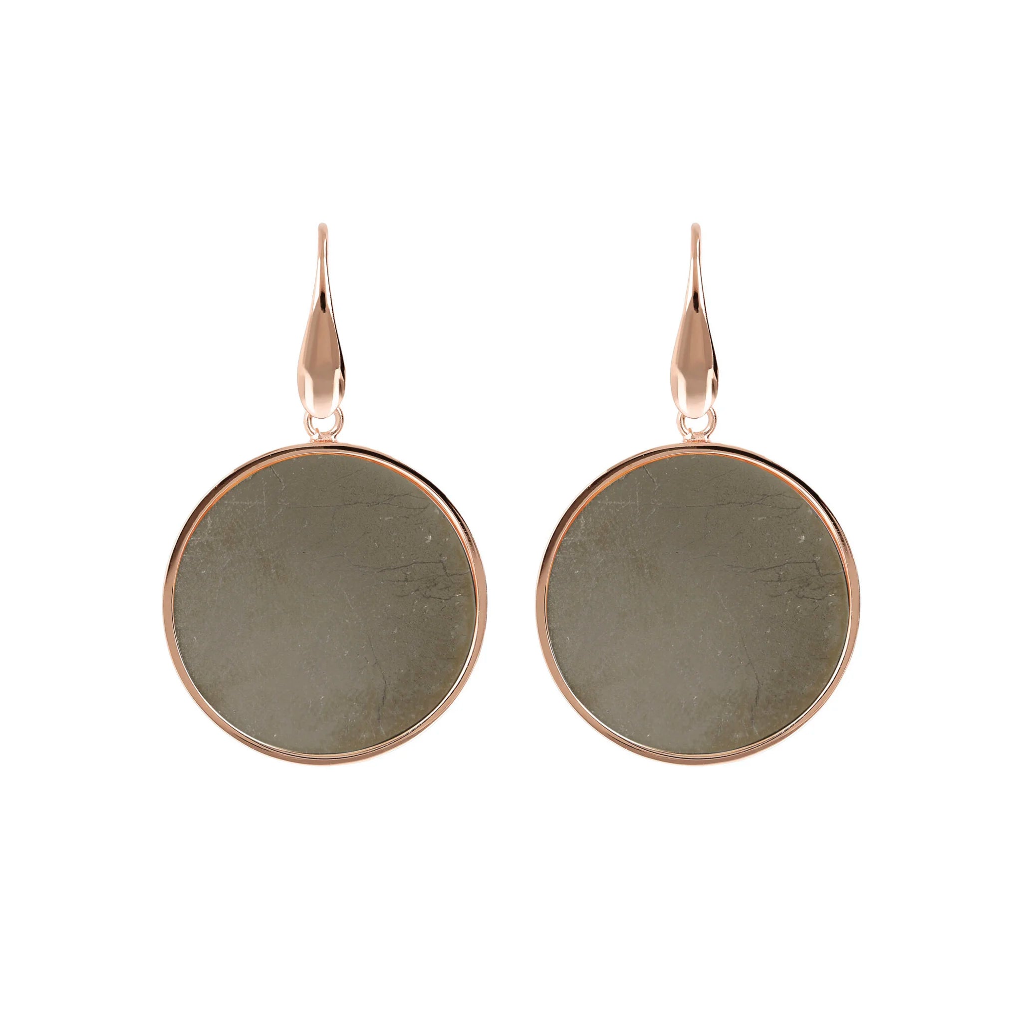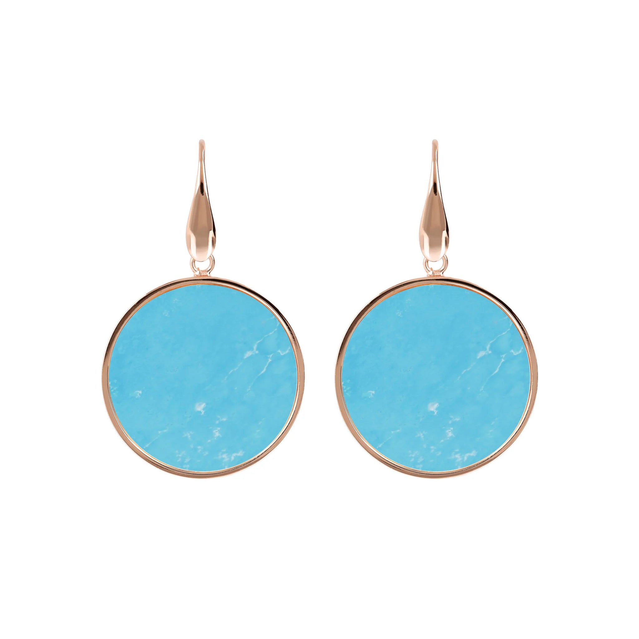 Orecchini pendenti Bronzallure realizzati in lega Golden Rosé, placcati oro rosa 18kt con disco in pietra naturale (2.5 cm) montato su base placcata oro rosa 18kt; chiusura ad amo.