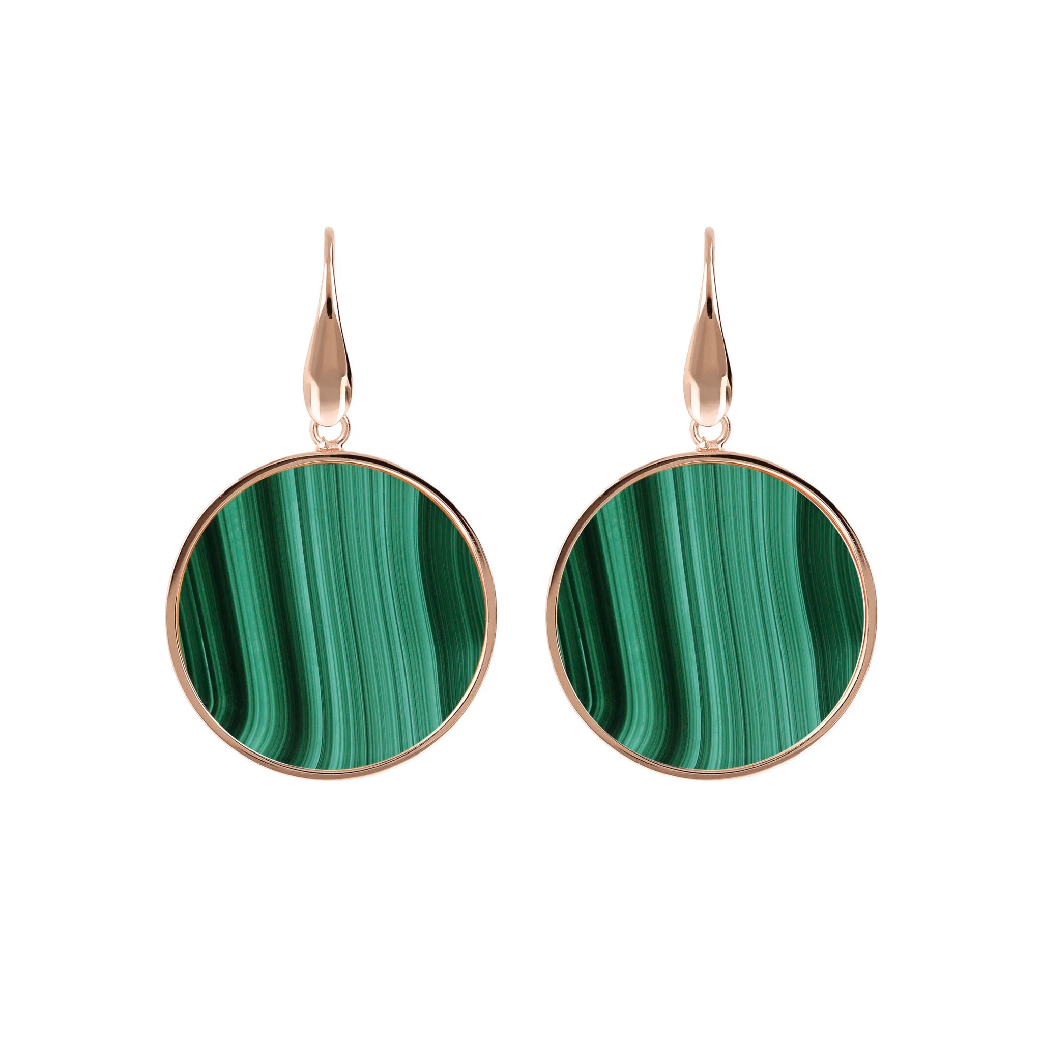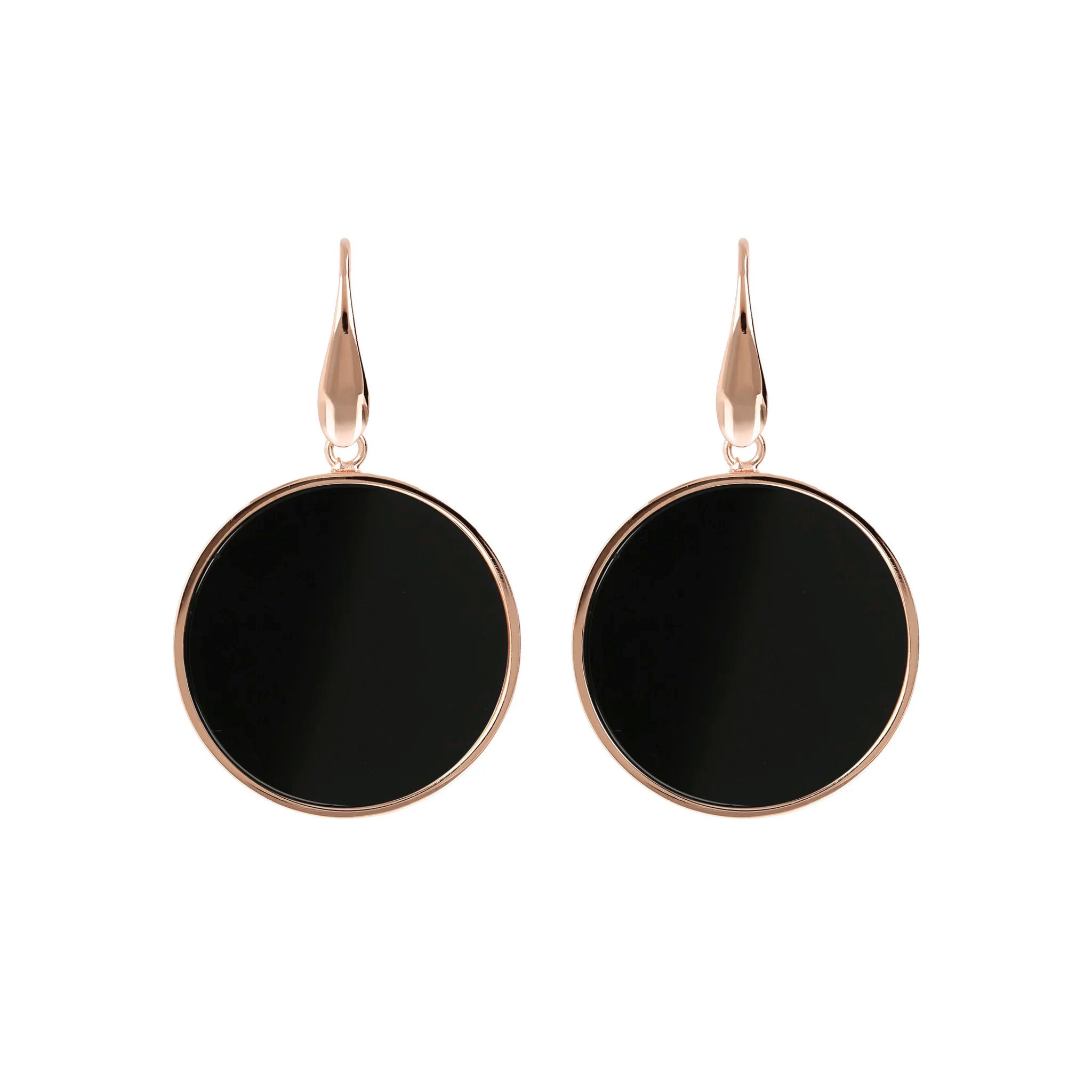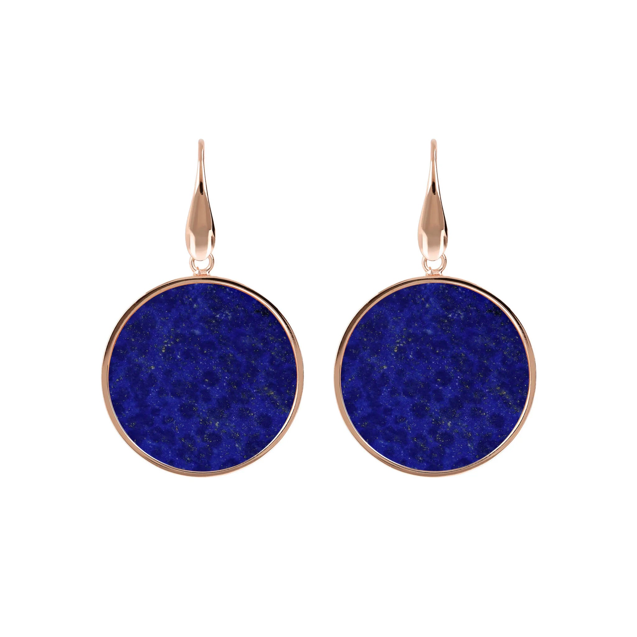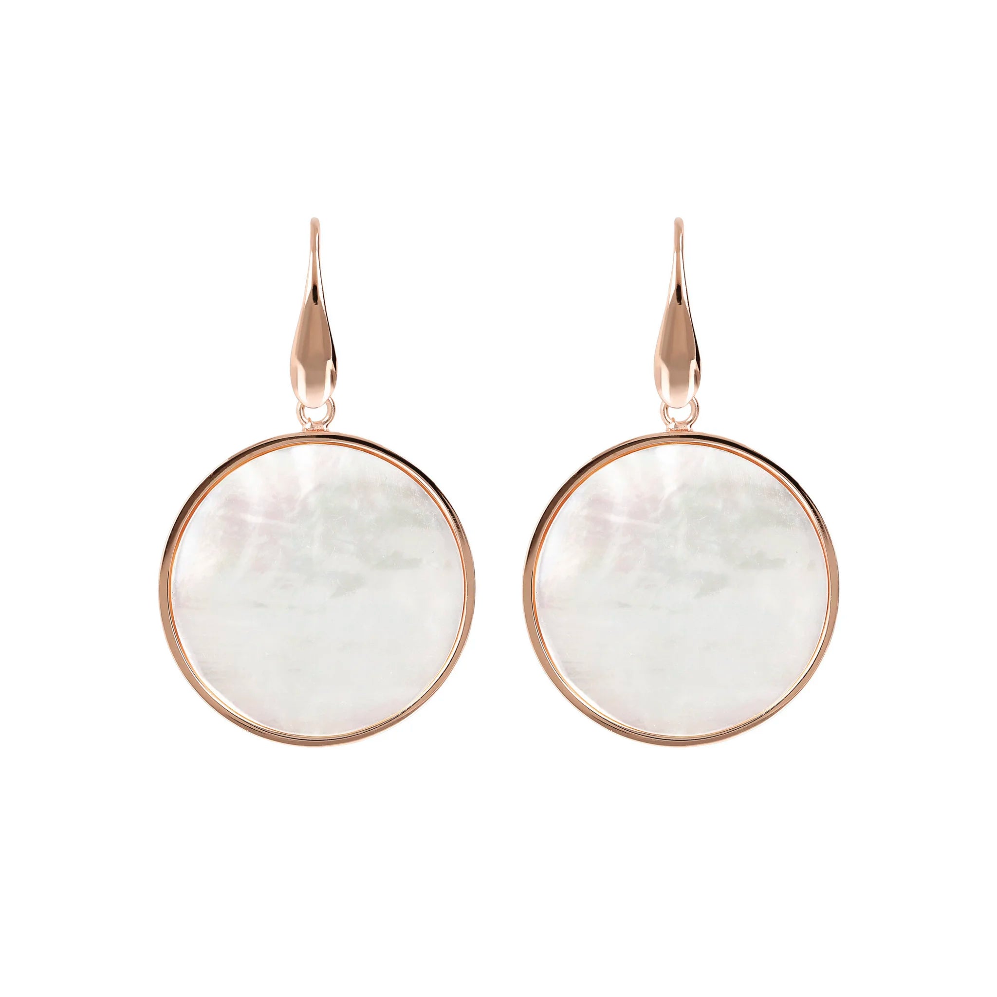 Orecchini pendenti Bronzallure realizzati in lega Golden Rosé, placcati oro rosa 18kt con disco in pietra naturale (2.5 cm) montato su base placcata oro rosa 18kt; chiusura ad amo.