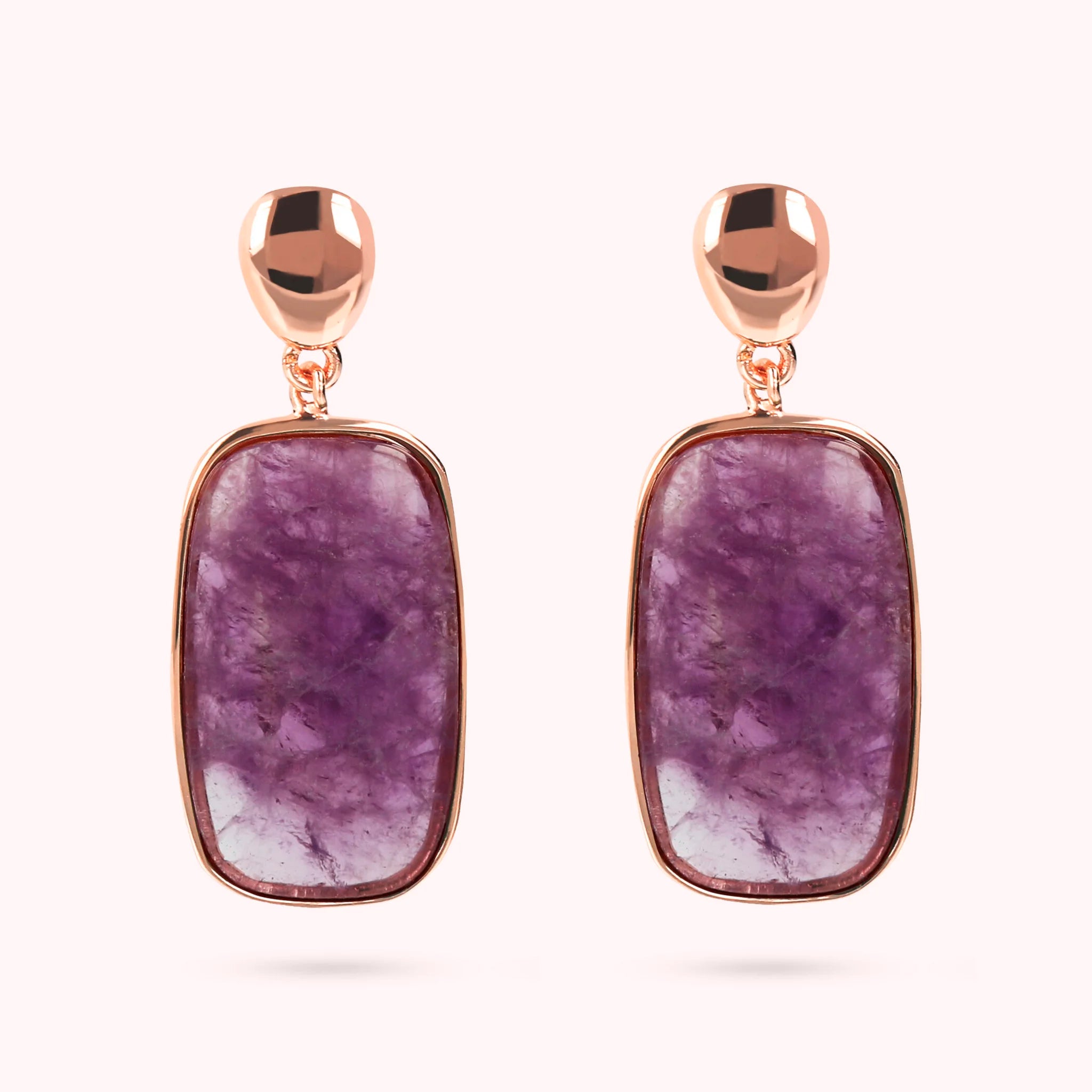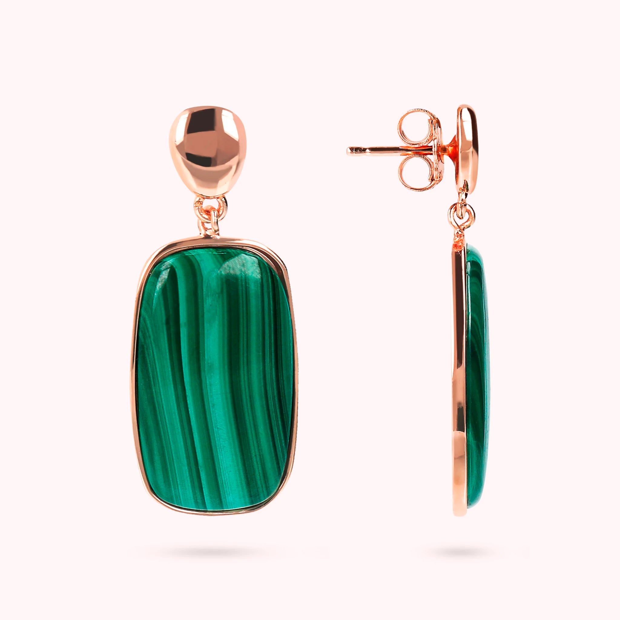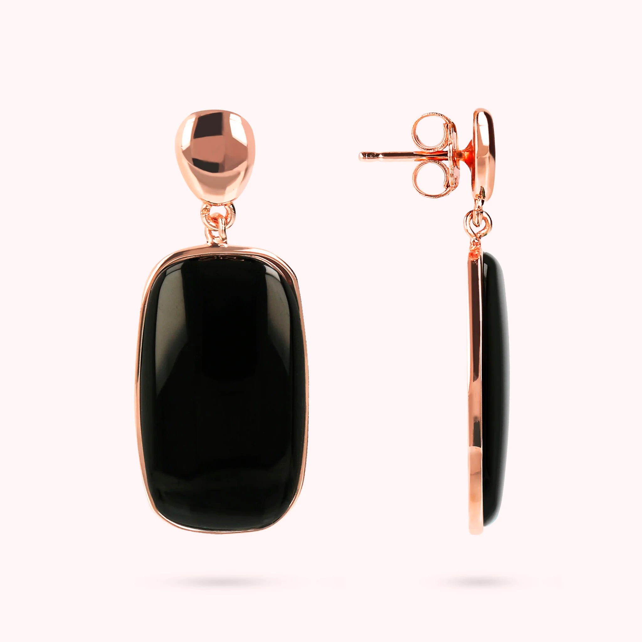 Orecchini pendenti Bronzallure realizzati in lega Golden Rosé, placcata oro rosa 18kt con pietra naturale dal taglio a saponetta (7.2x10.5 mm), con angoli smussati e linee morbide; chiusura a perno e farfalla.