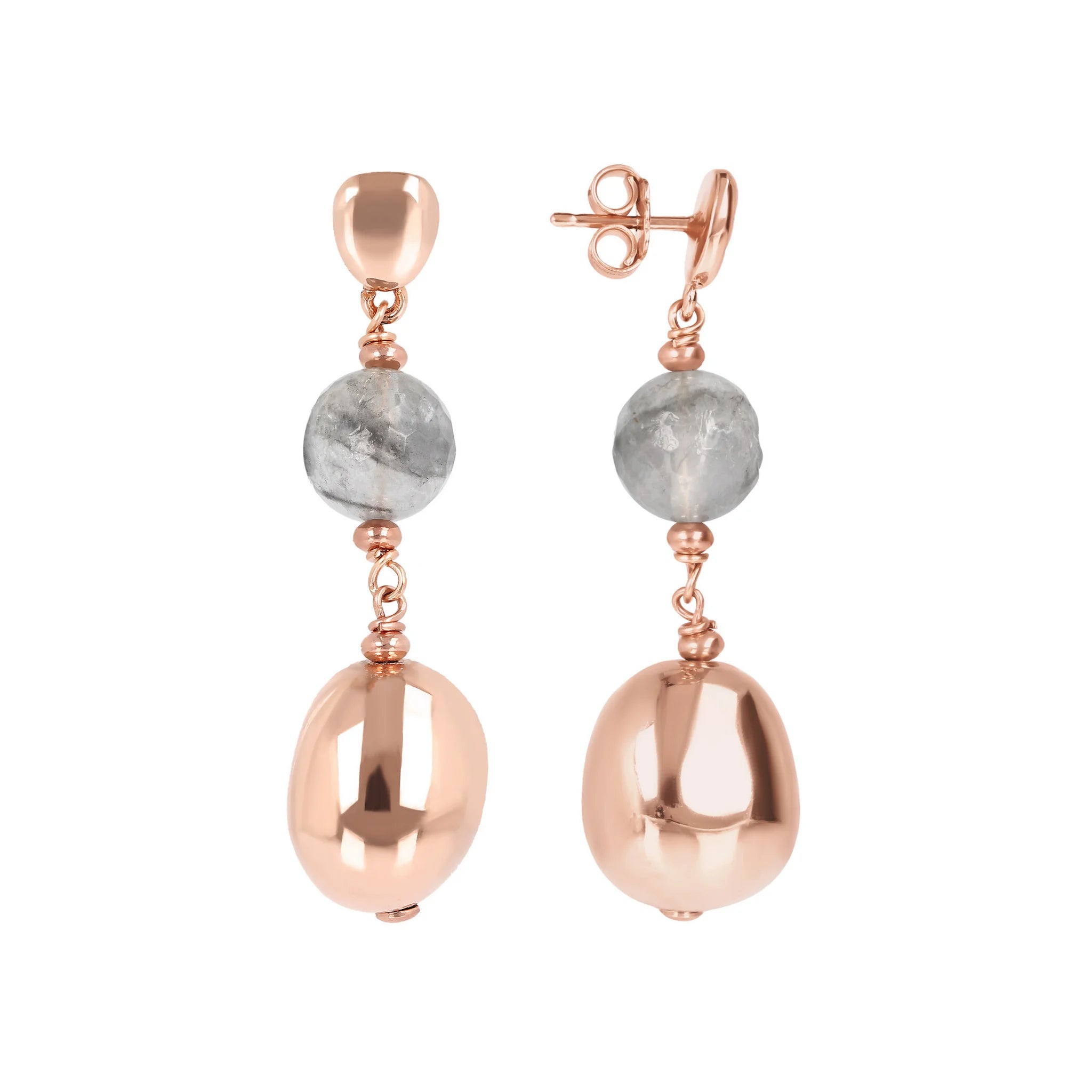 Orecchini Pendenti con Quarzo Grigio e Pepite Golden Rosé