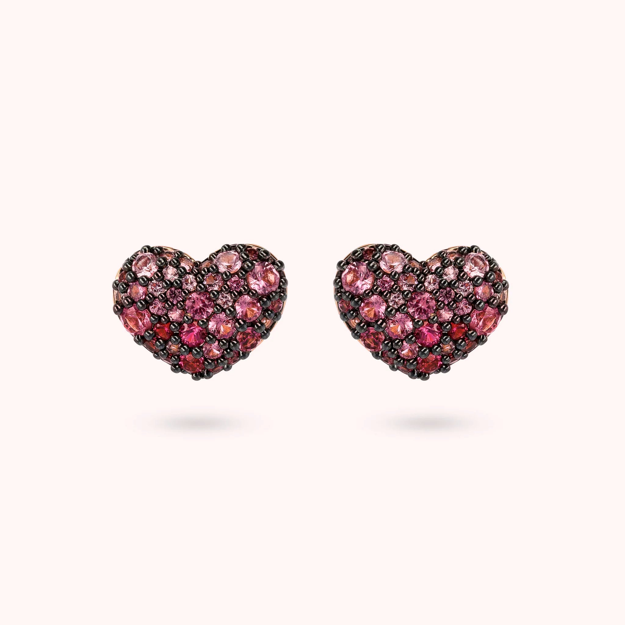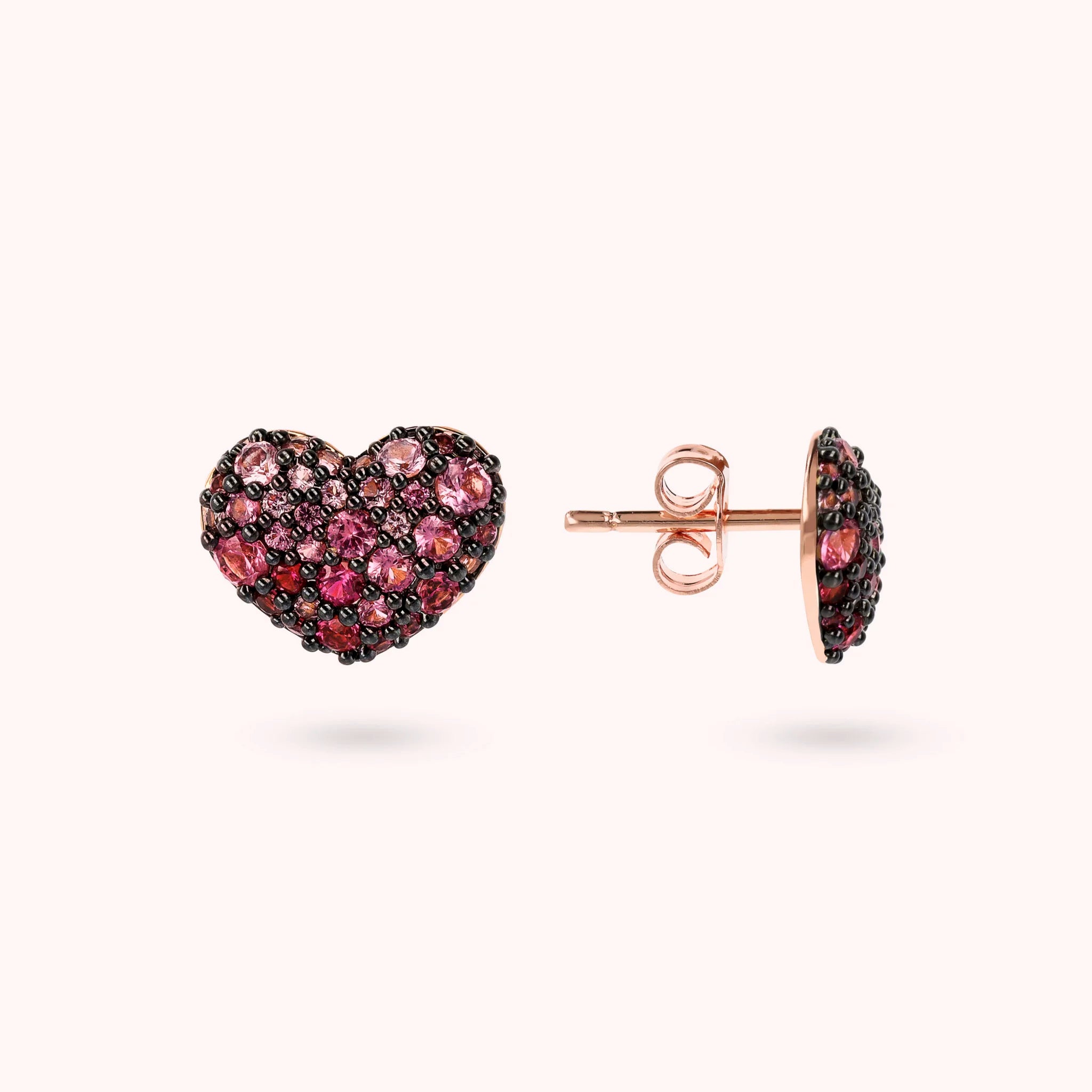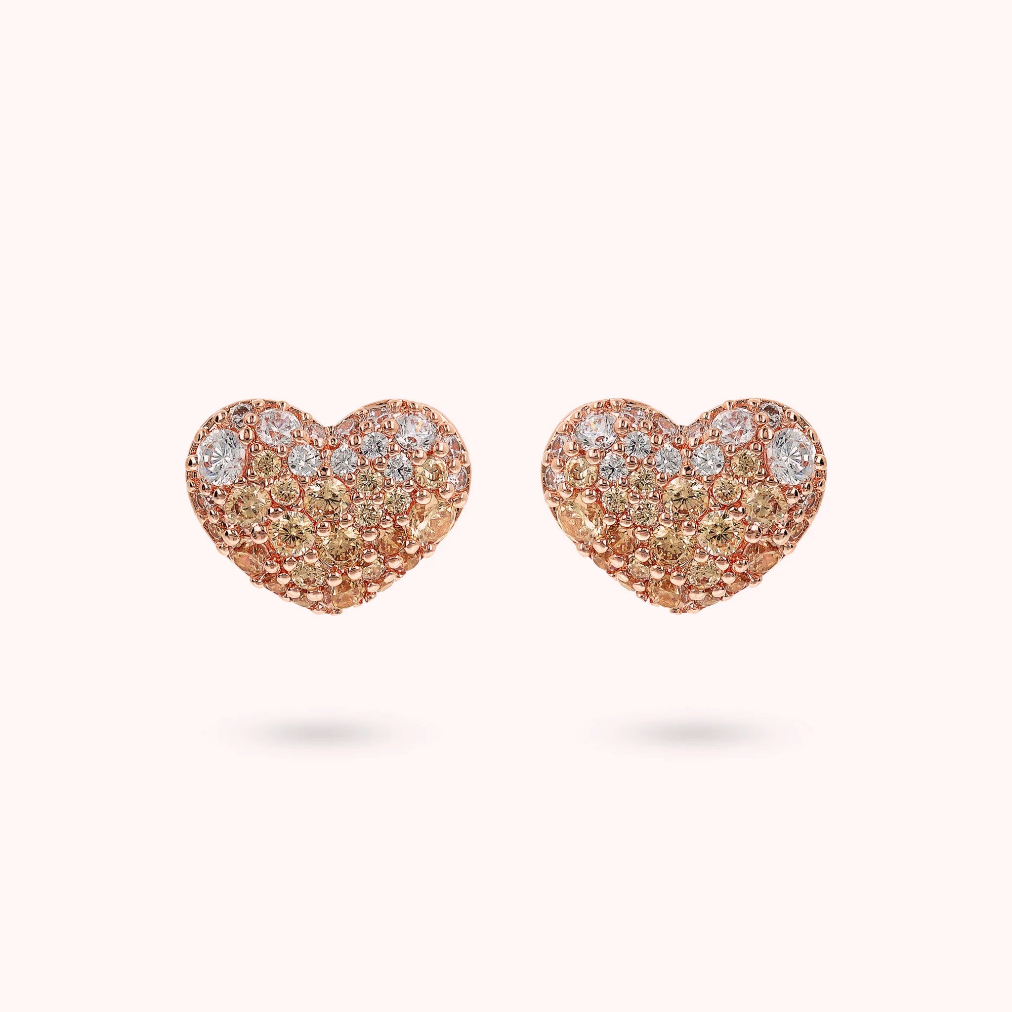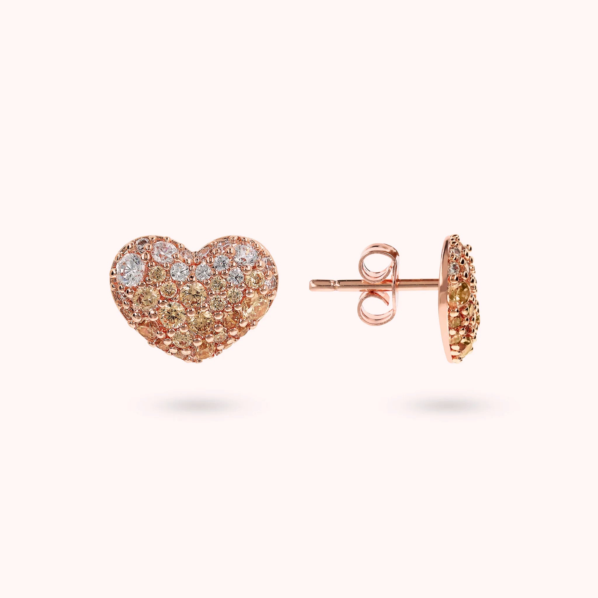 Orecchini a lobo Bronzallure realizzati in lega Golden Rosé, placcati oro rosa 18kt, dalla forma a cuore (12.5x10.5 mm) con pavé in cubic zirconia, qualità luminosa; chiusura a perno e farfalla. Creazione elegante, dal design perfetto per far brillare il tuo look.