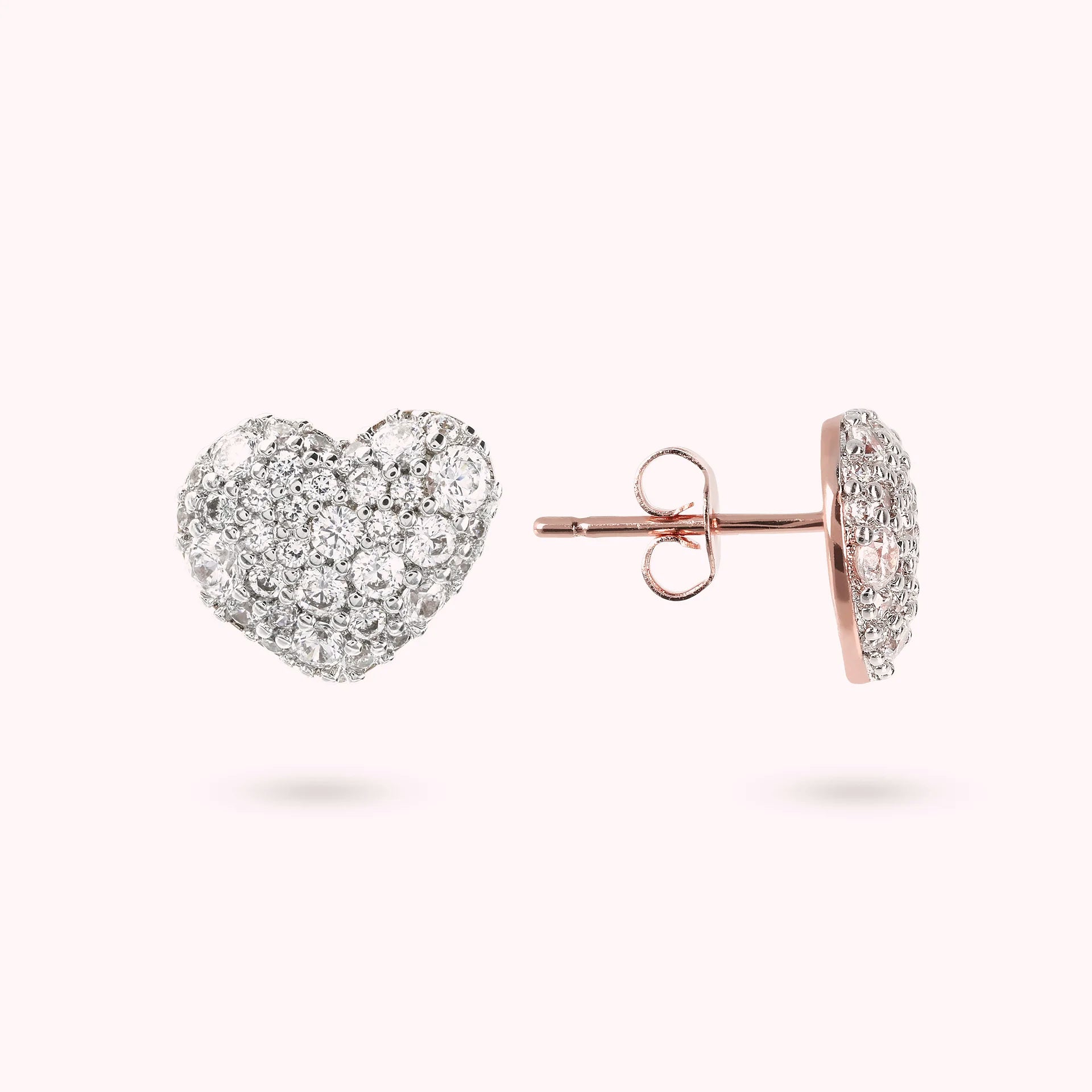 Orecchini Cuore a Lobo con Pavé in Cubic Zirconia