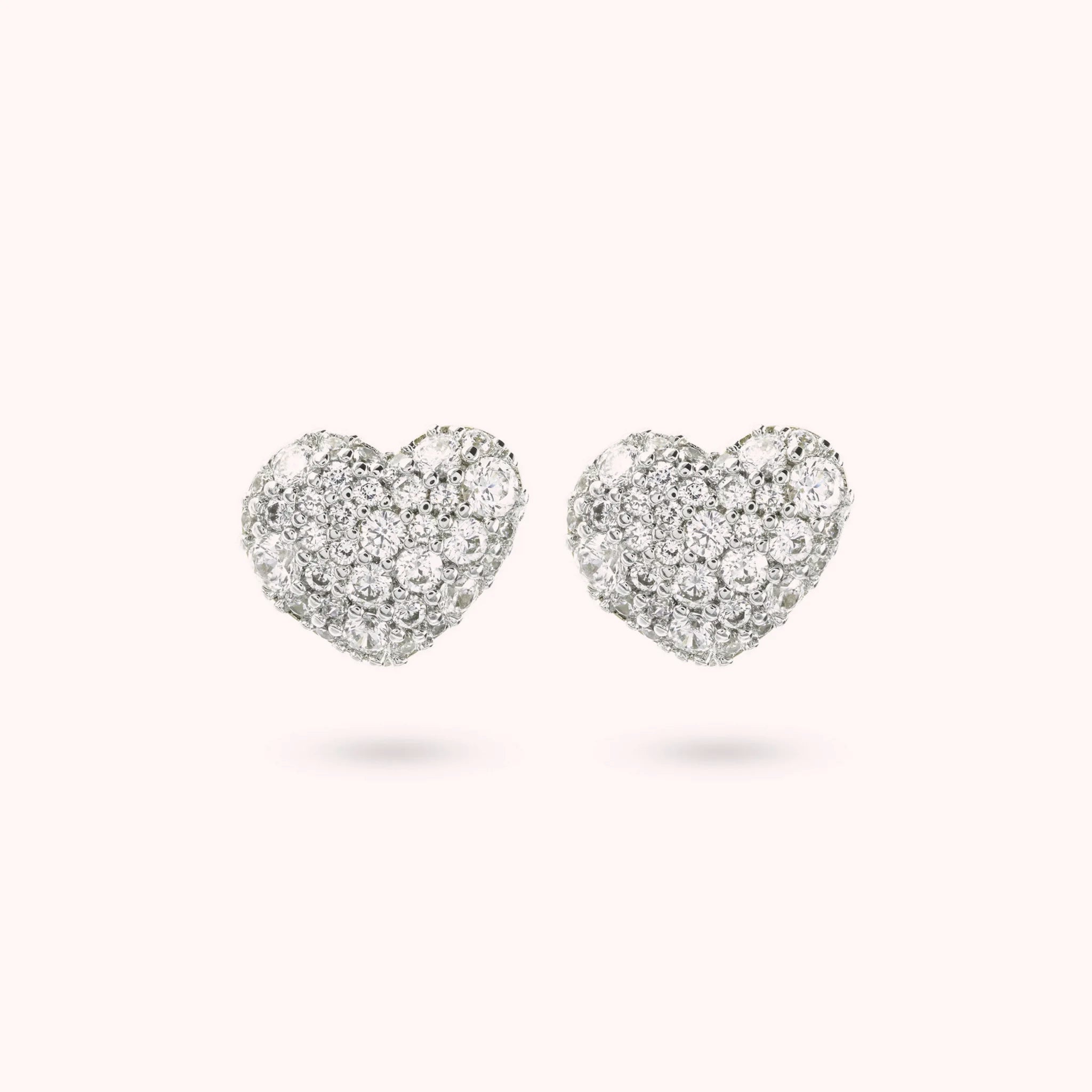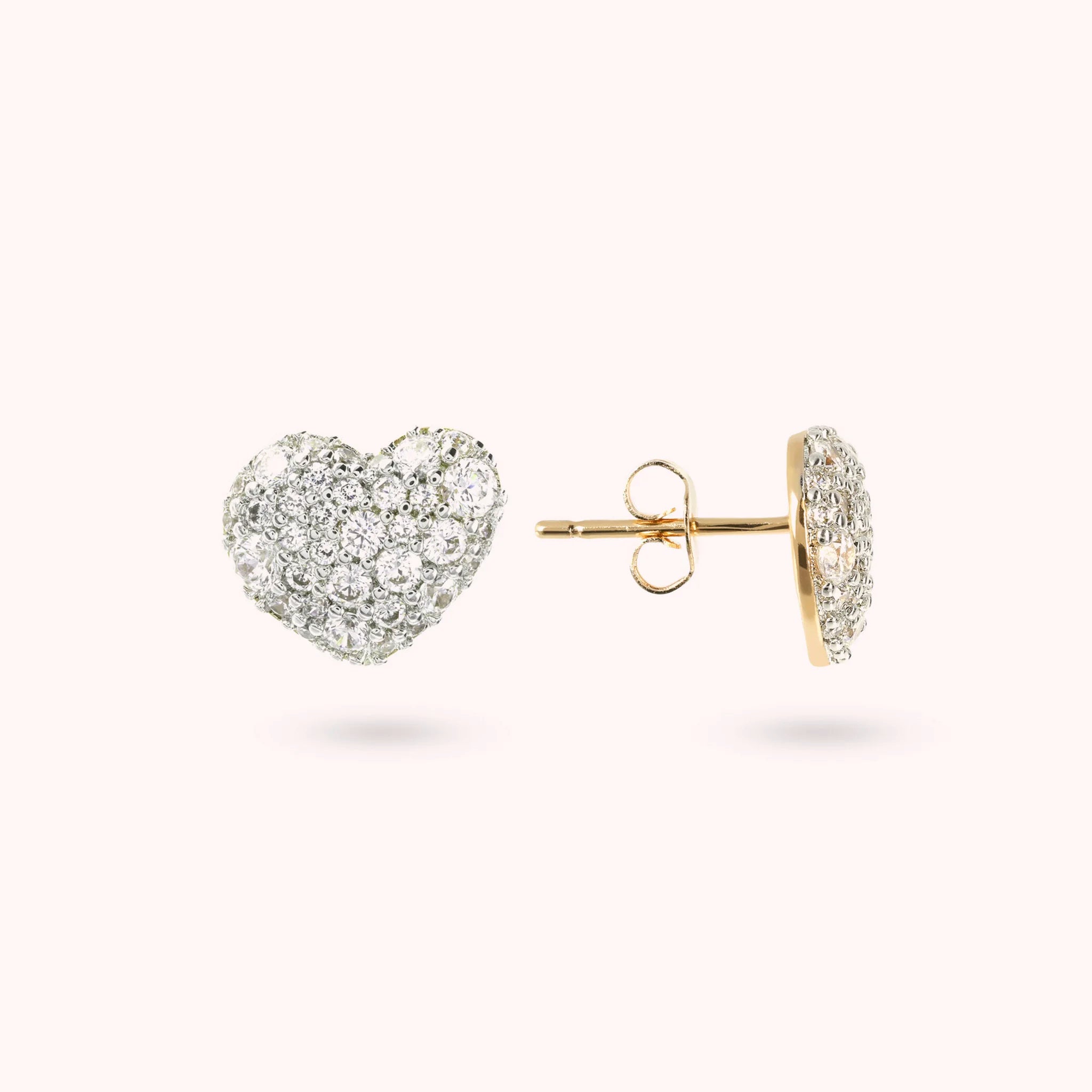 Orecchini Cuore Golden a Lobo con Pavé in Cubic Zirconia