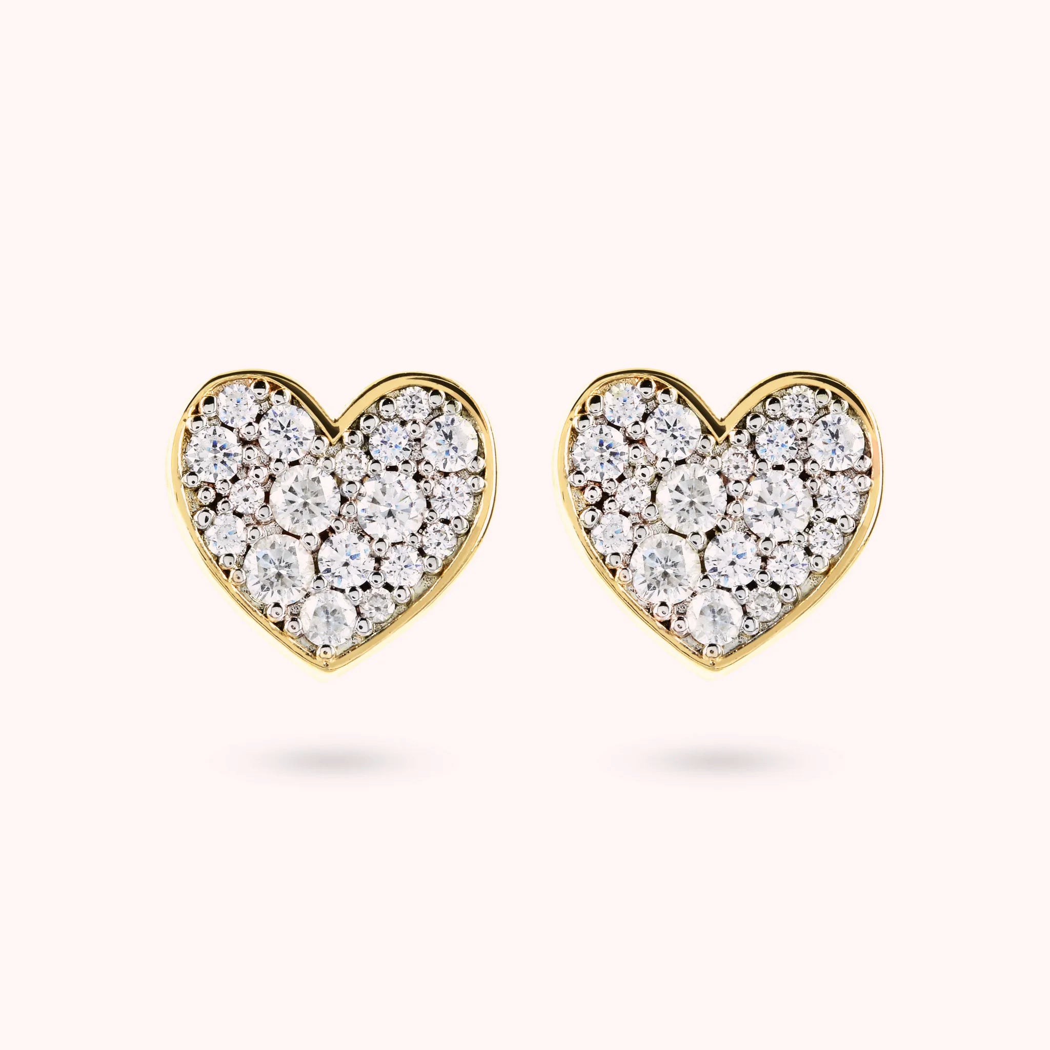 Orecchini Cuore Golden a Lobo con Pavé in Cubic Zirconia