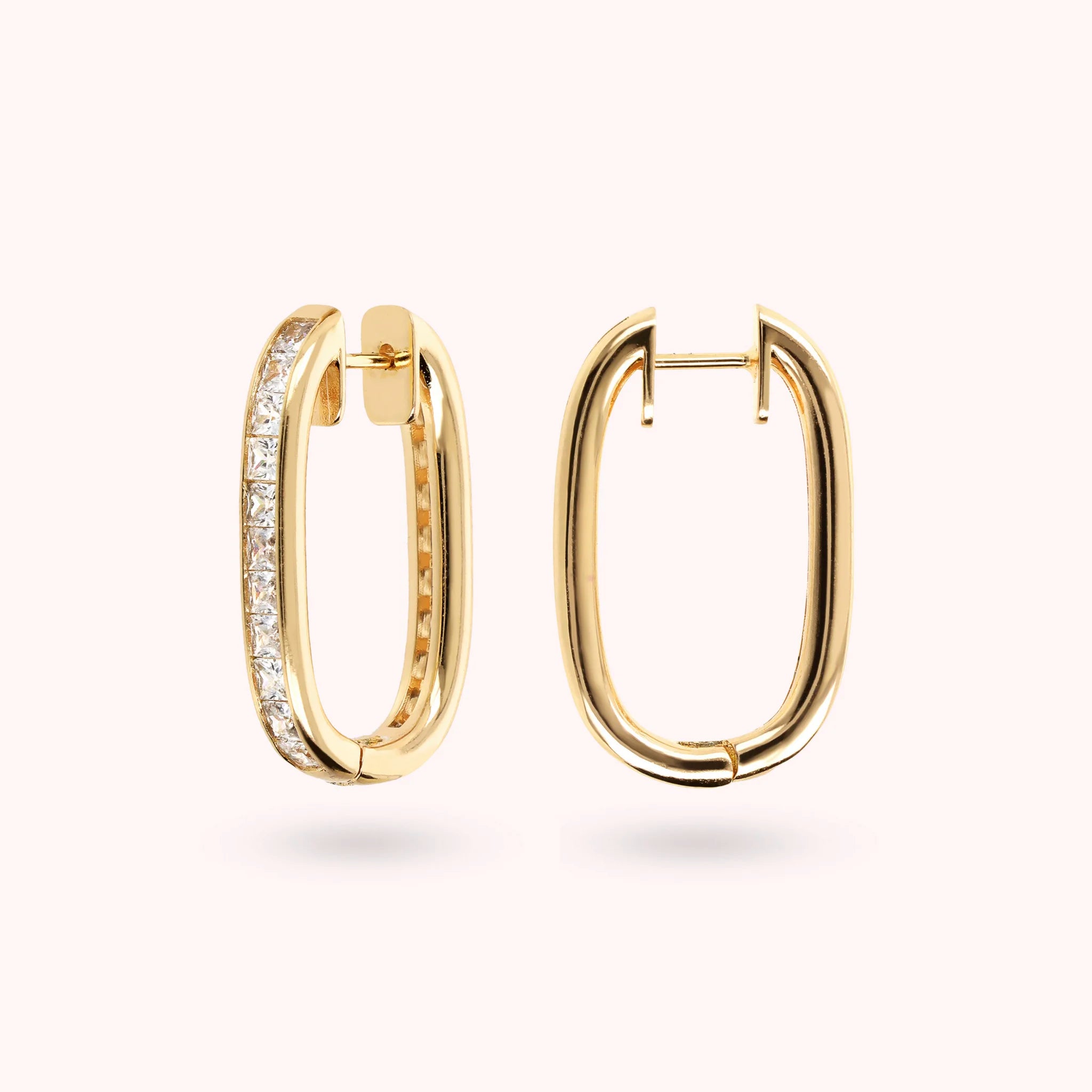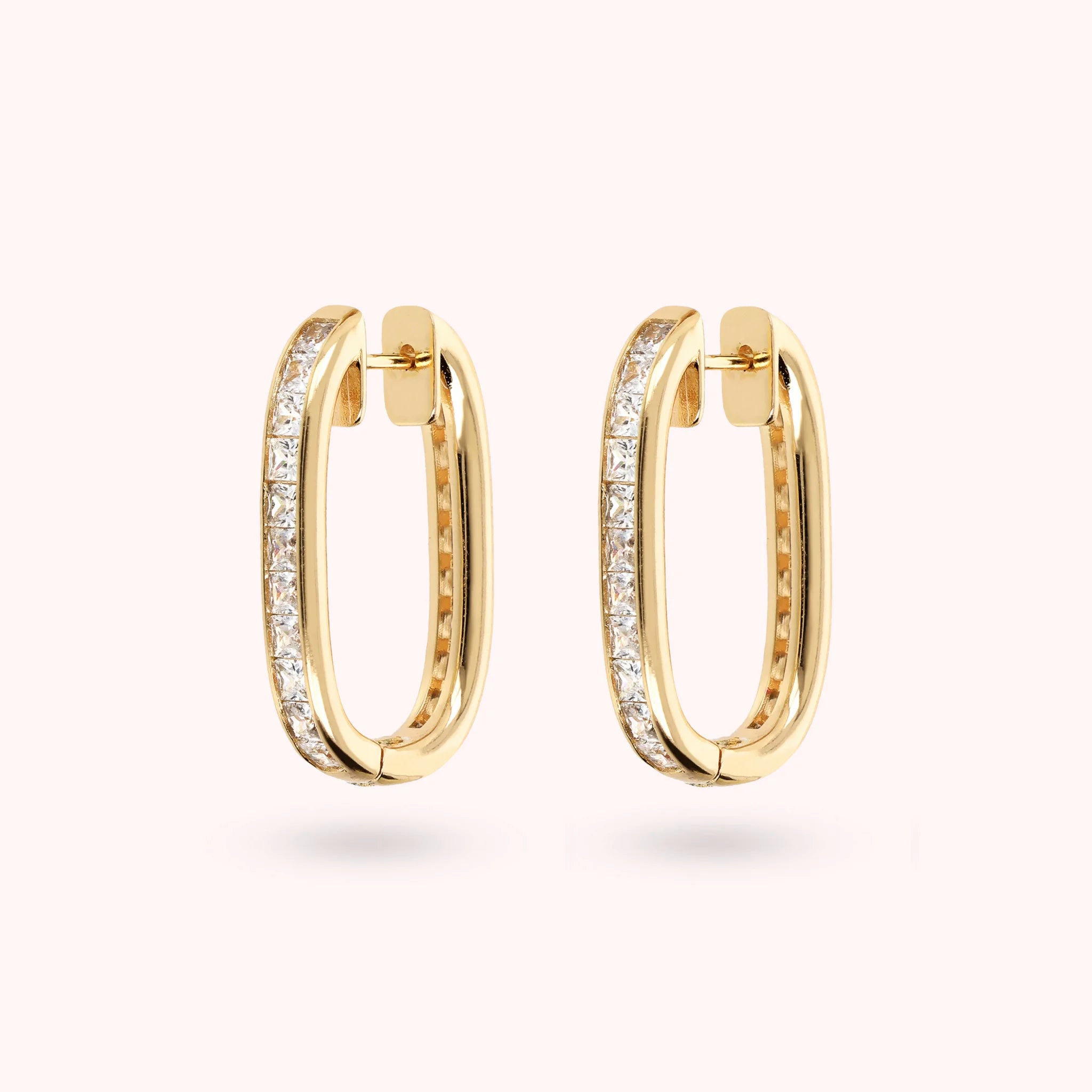 Orecchini Ovali Golden con Cubic Zirconia Quadrate Taglio Princess