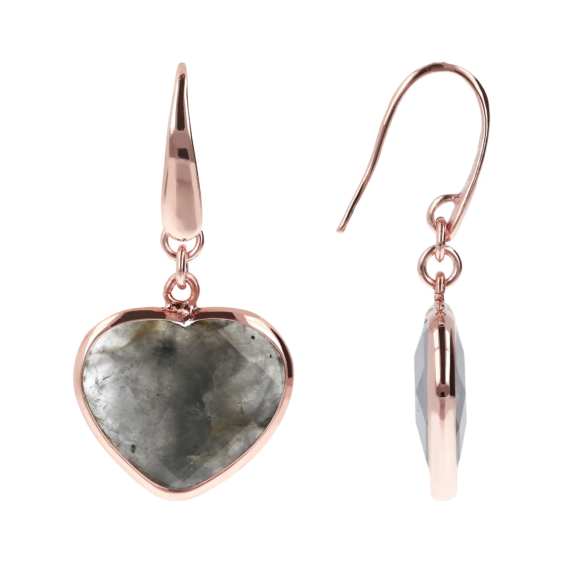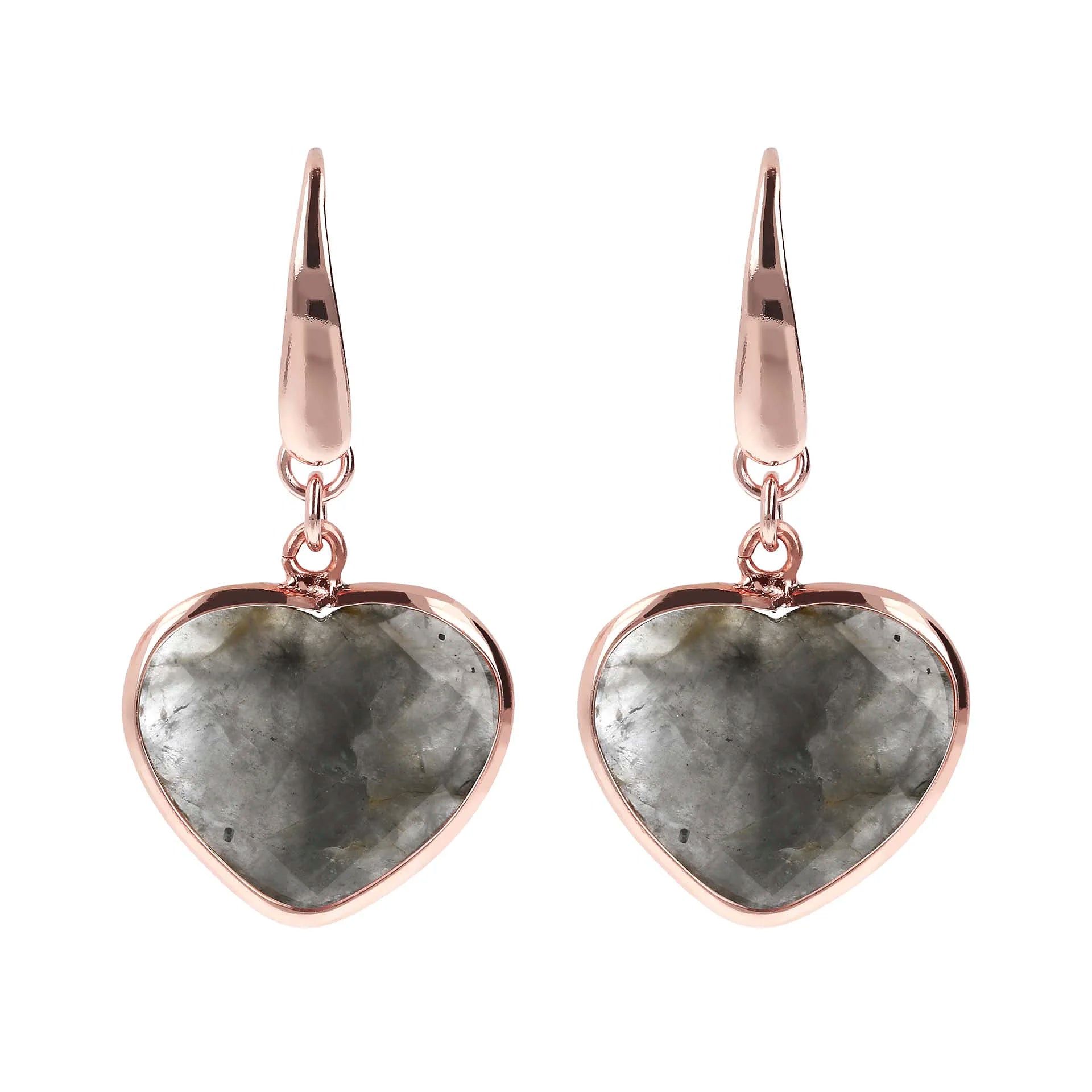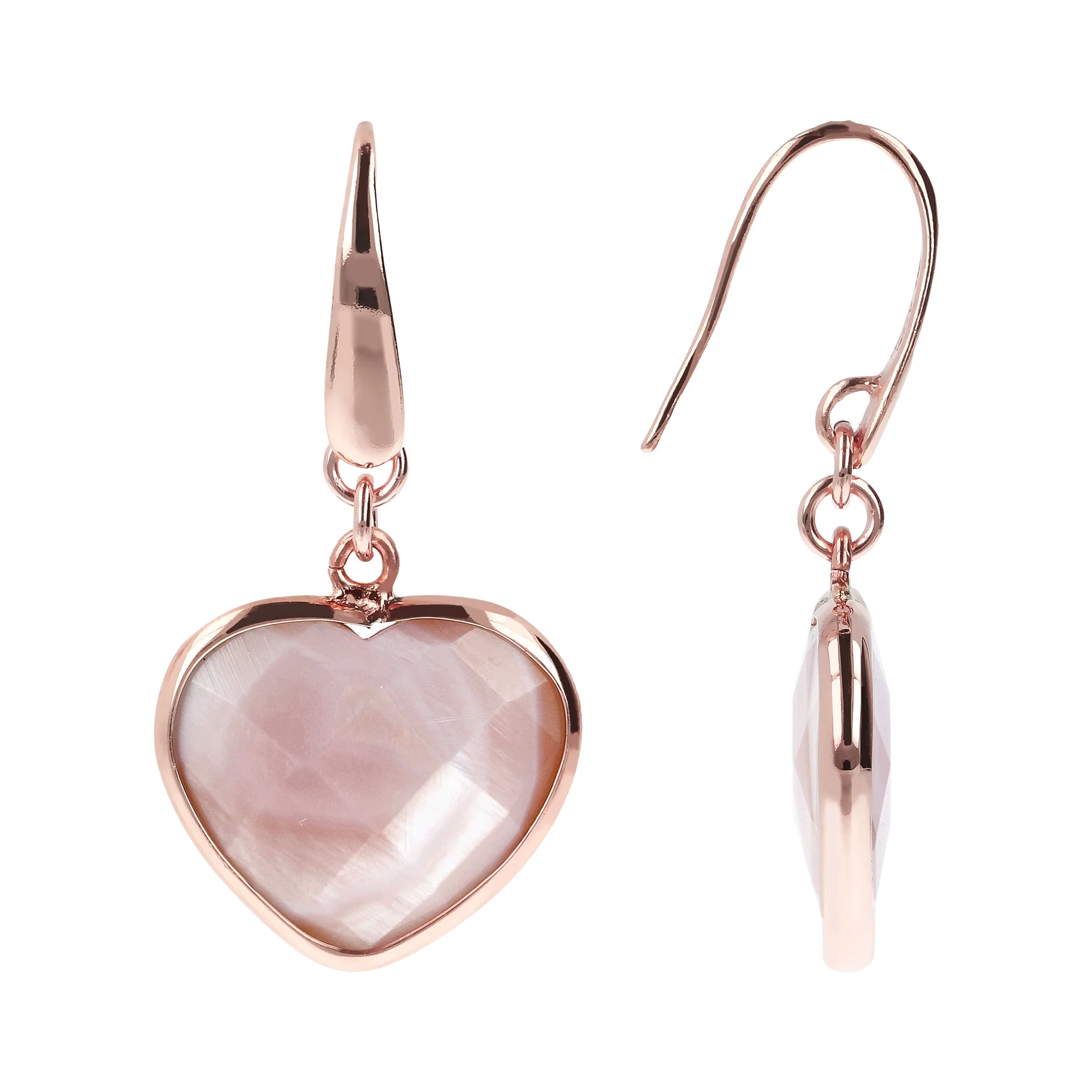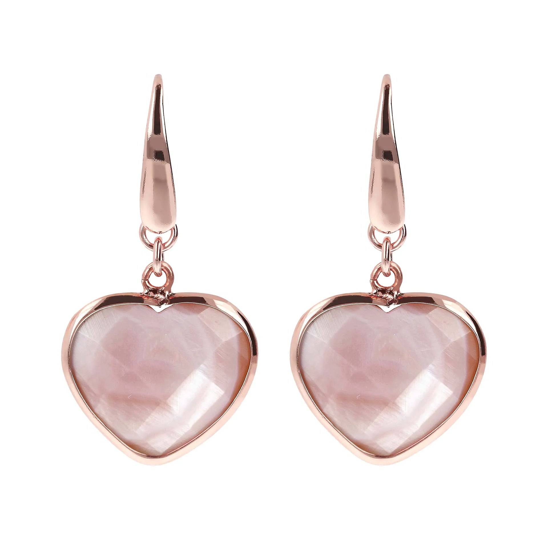 Orecchini pendenti Bronzallure realizzati in lega Golden Rosé, placcata oro rosa 18kt, con pendente a cuore in pietra naturale sfaccettata. Chiusura ad amo.
