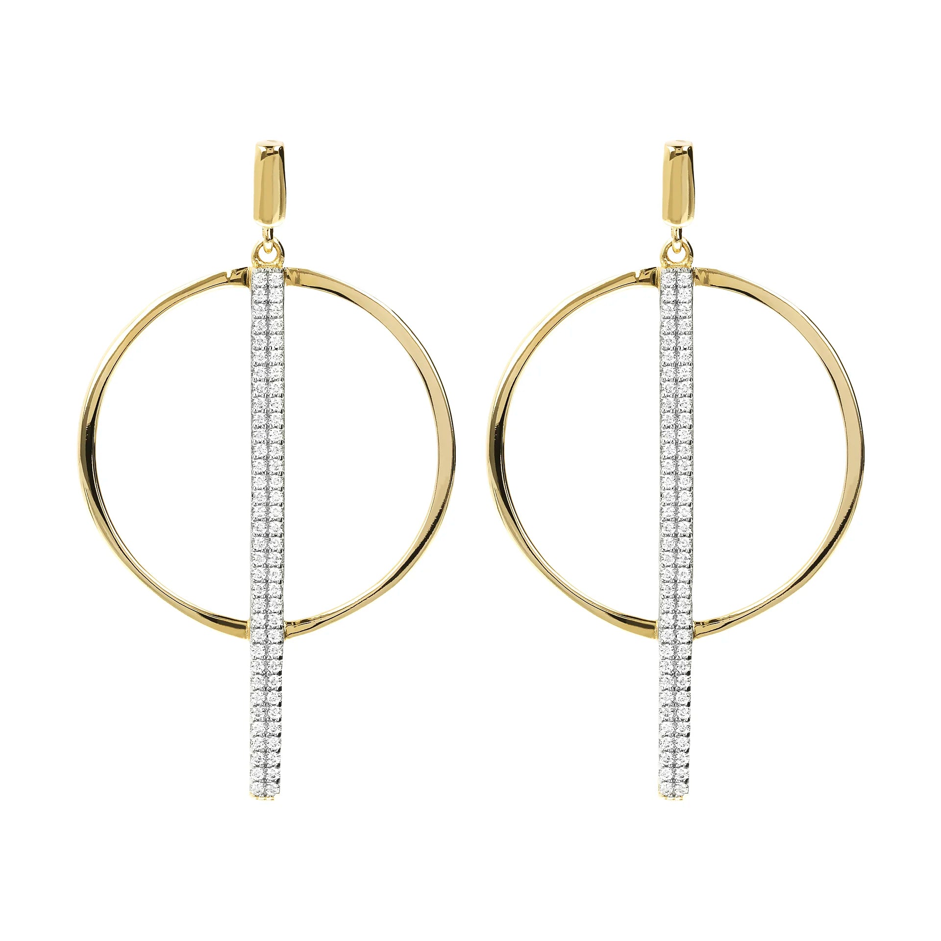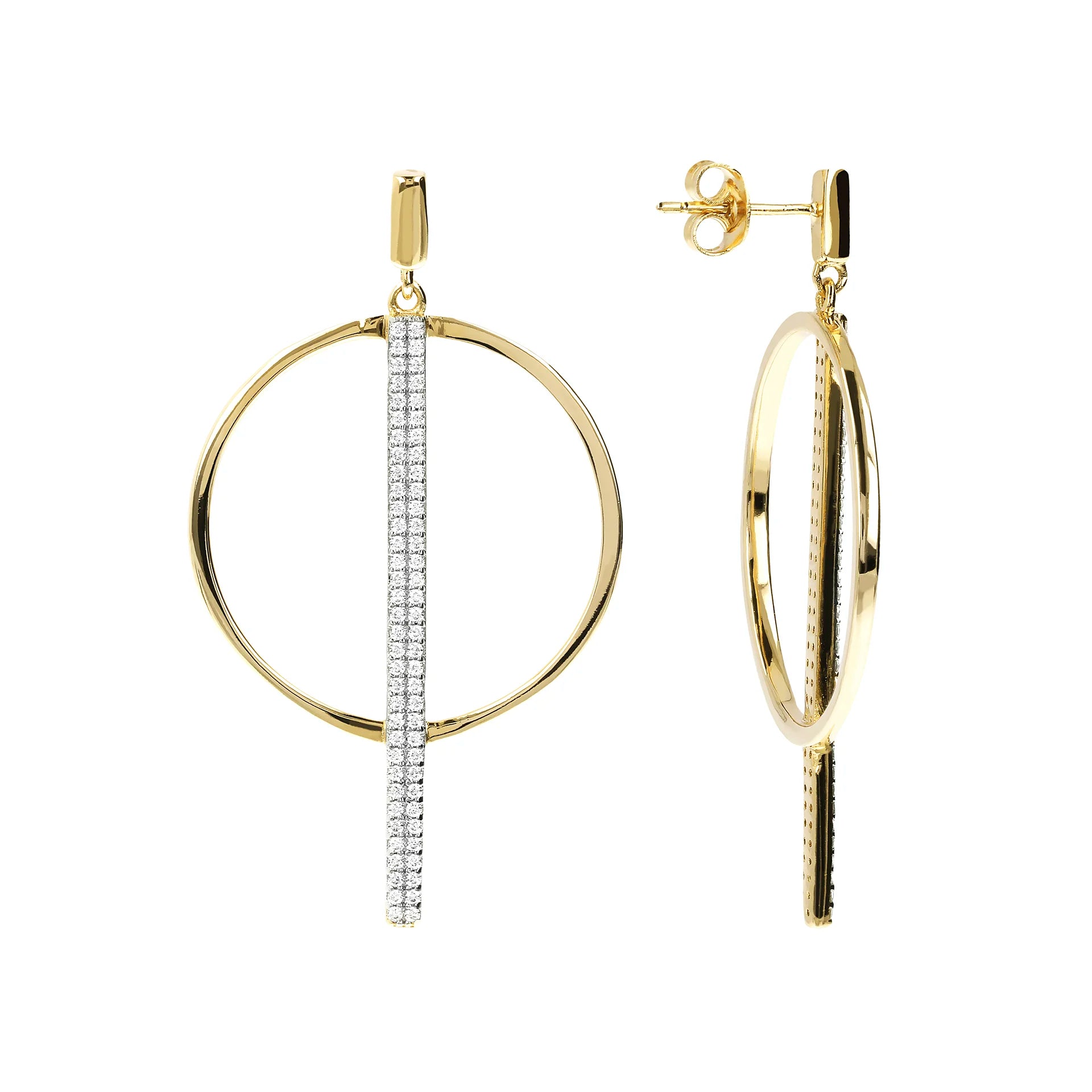 Orecchini Pendenti Golden con Cerchio e Barretta Pavé in Cubic Zirconia