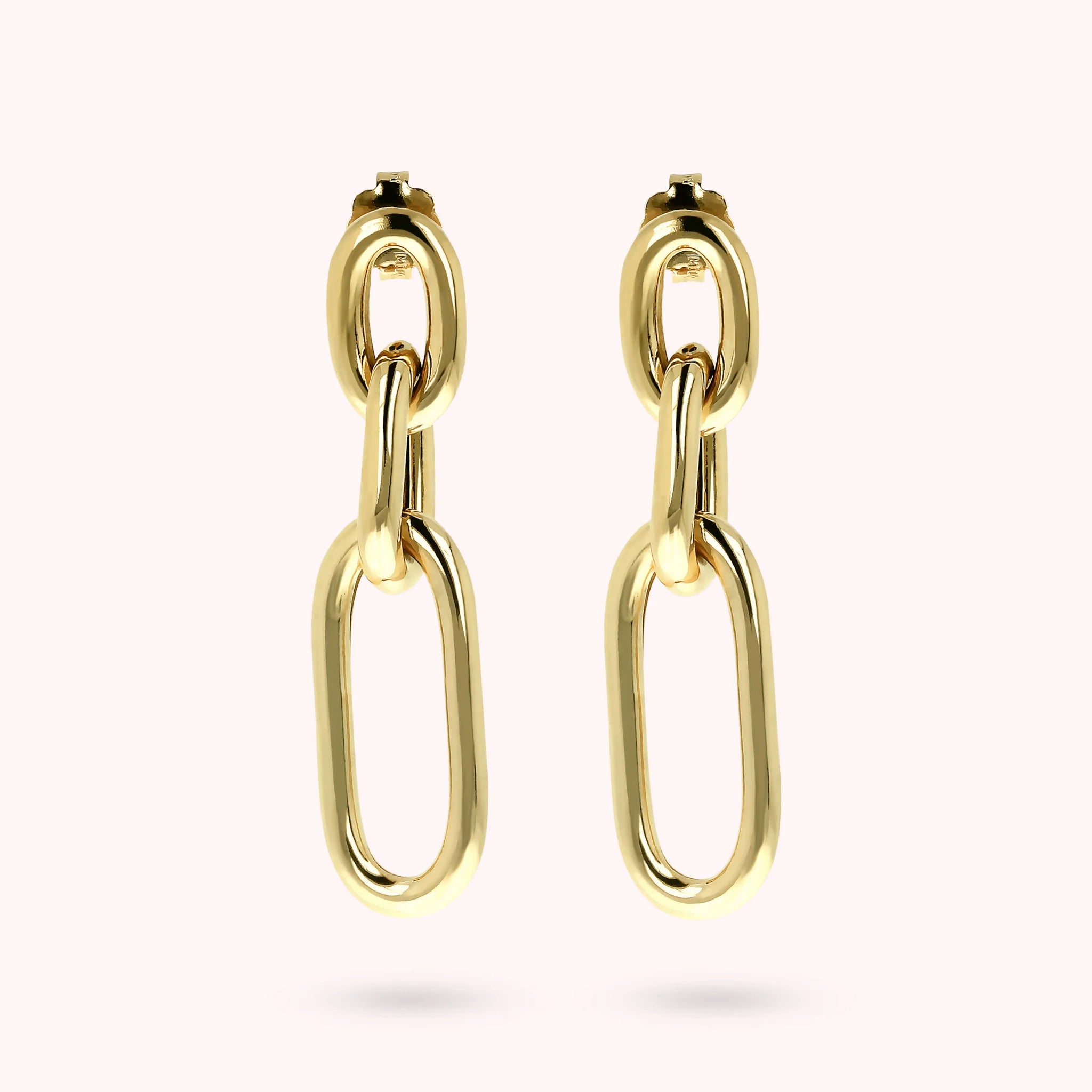 Orecchini pendenti Bronzallure realizzati in lega Golden Rosé, placcati oro giallo 18kt, con maglie alternate; chiusura a perno e farfalla; lunghezza di 4.3 cm.