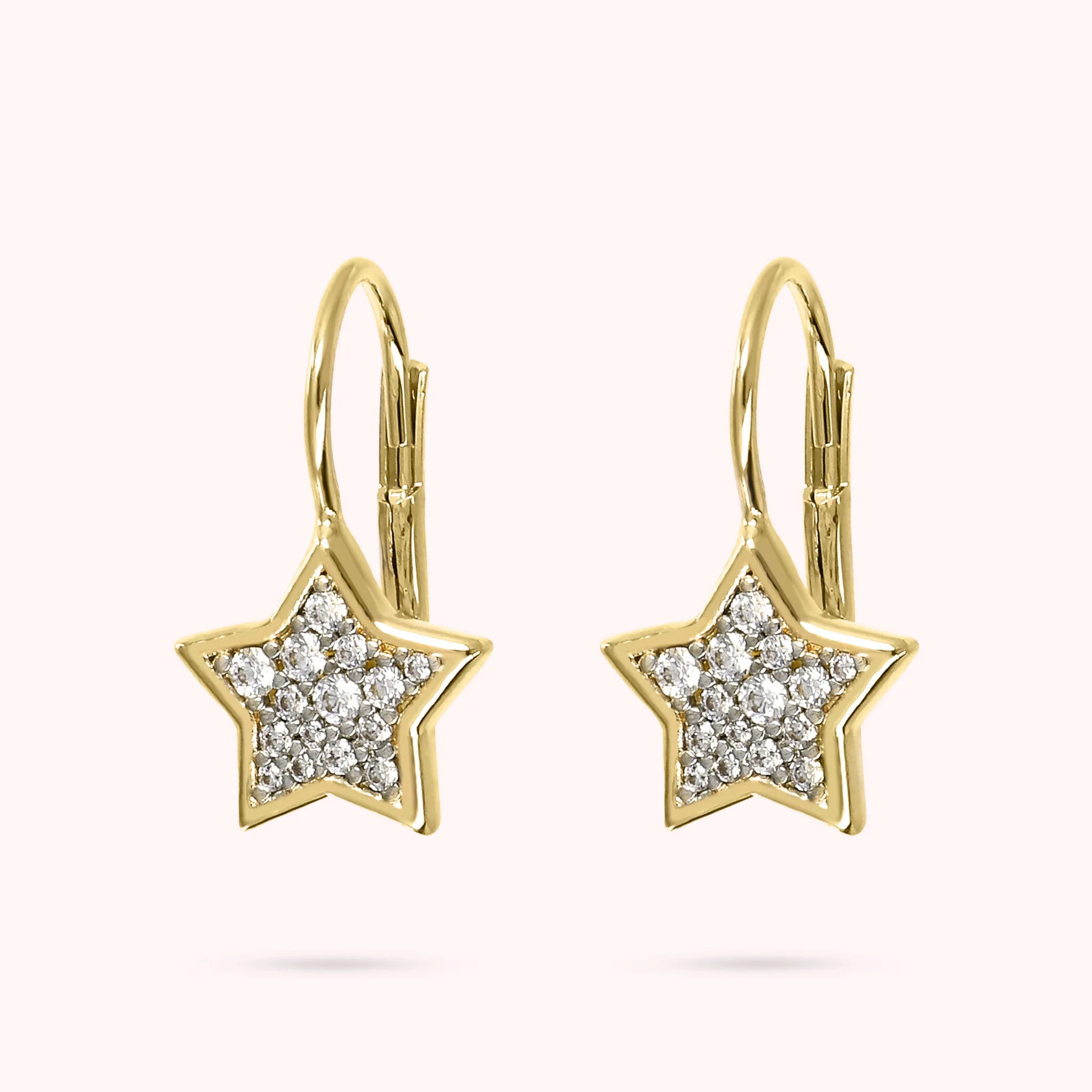 Orecchini Pendenti Golden con Stella Pavé in Cubic Zirconia