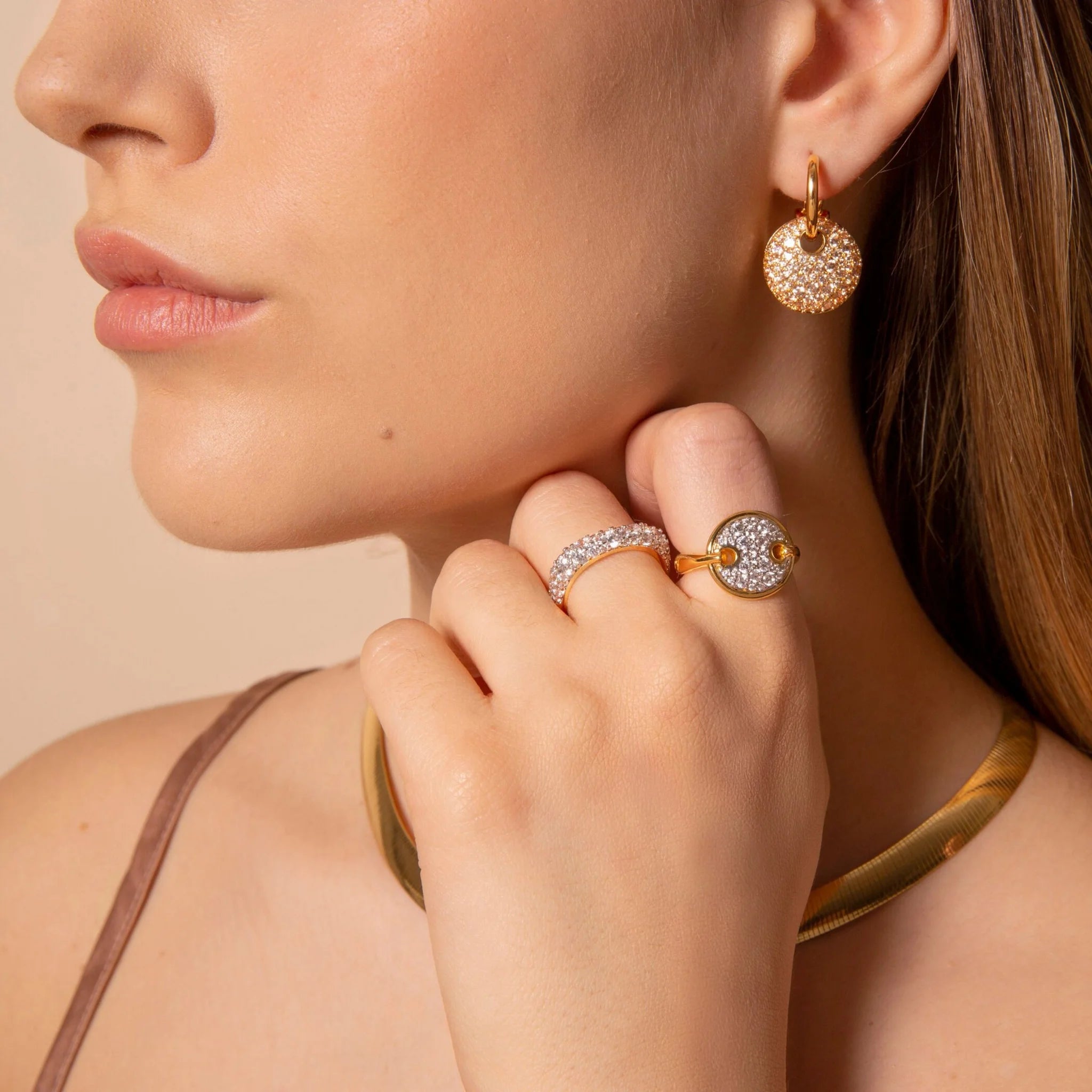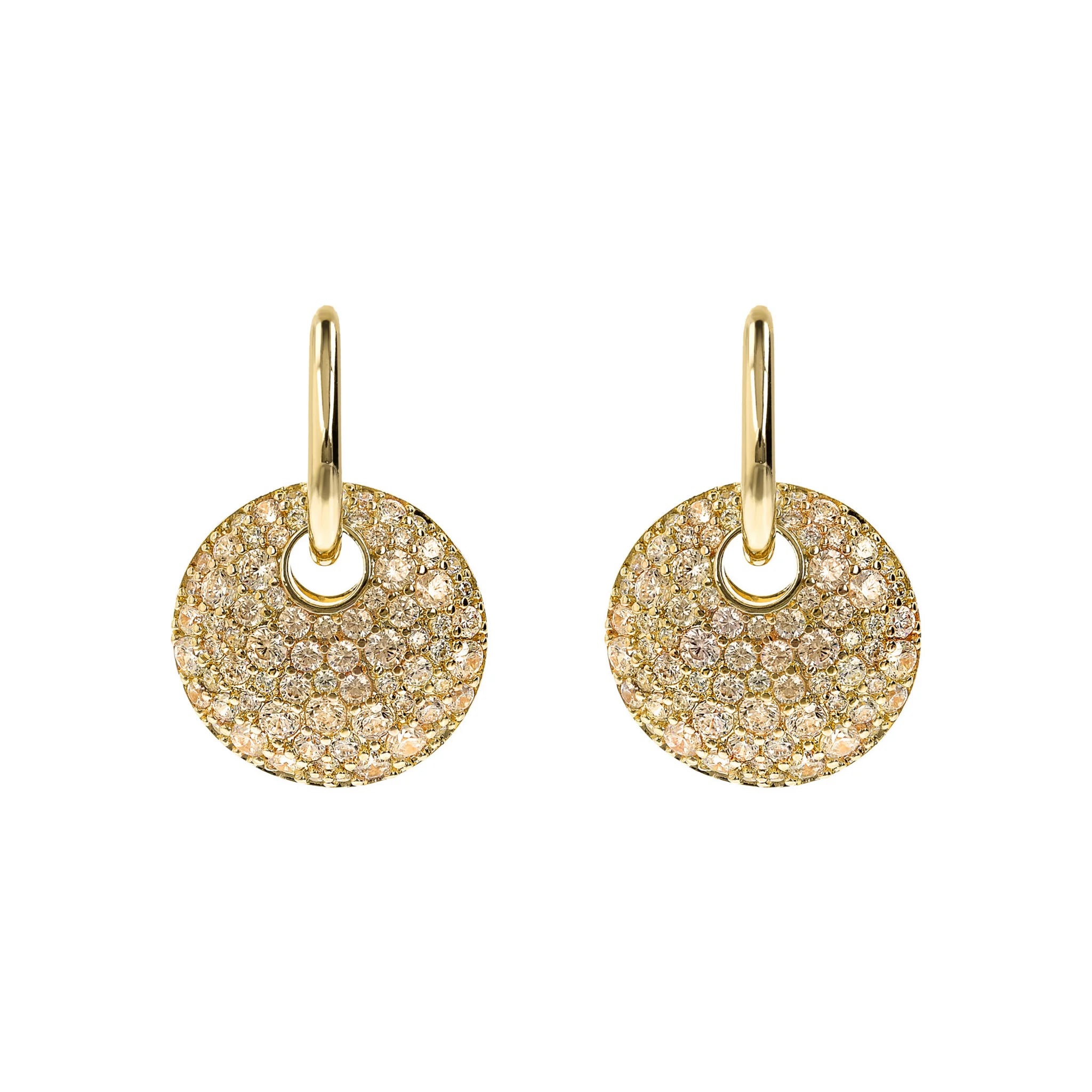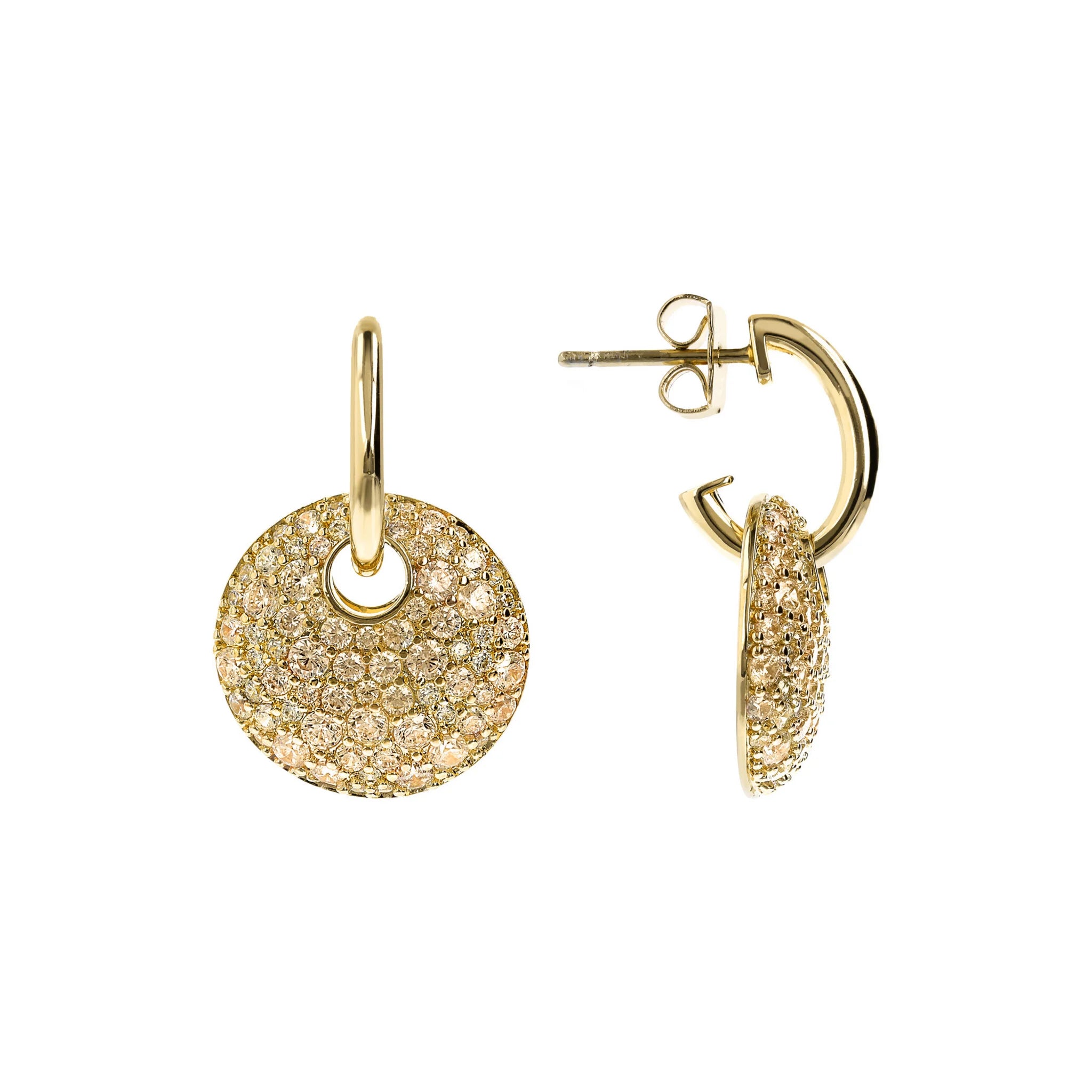 Orecchini Pendenti Golden con Tondo Traforato e Pavé in Cubic Zirconia