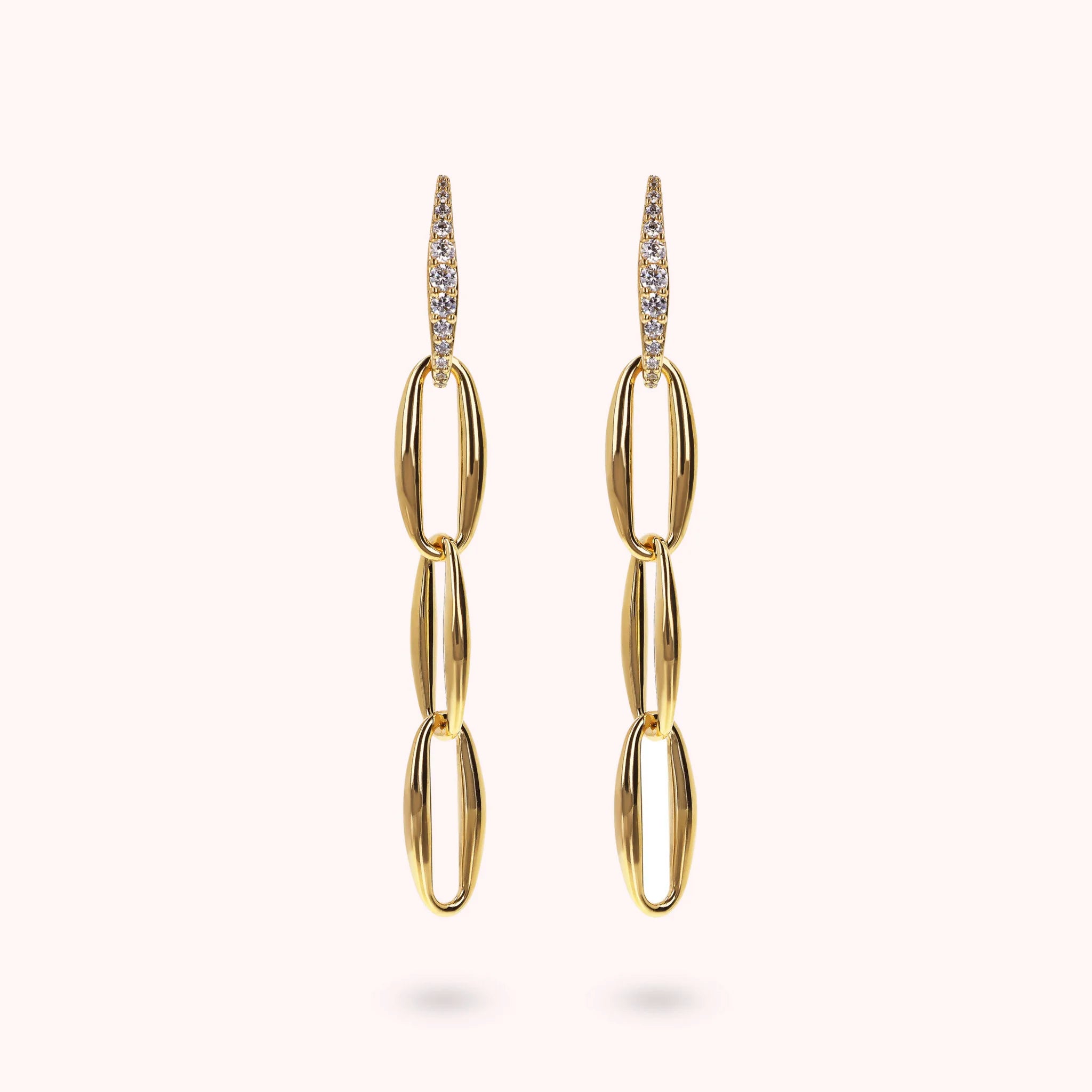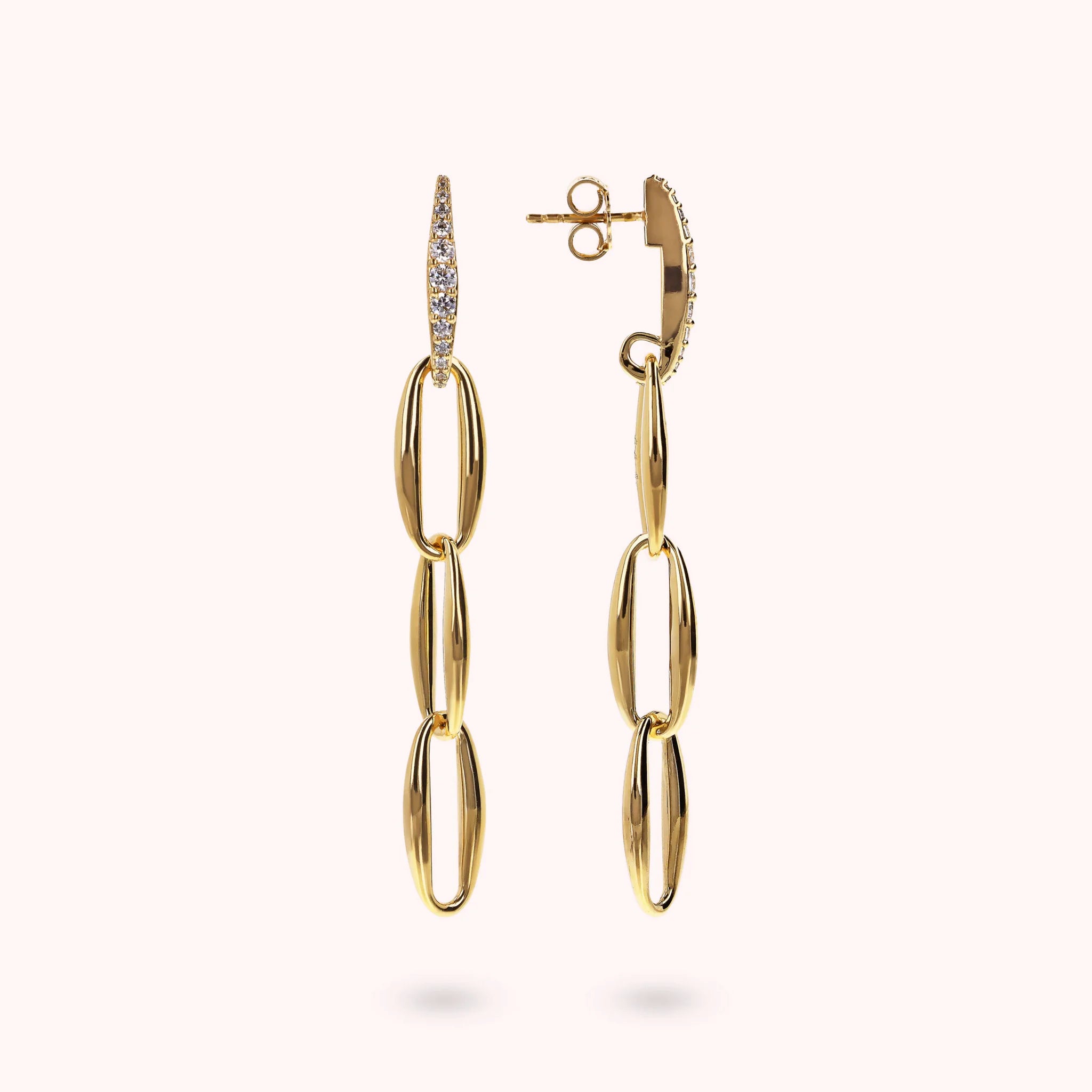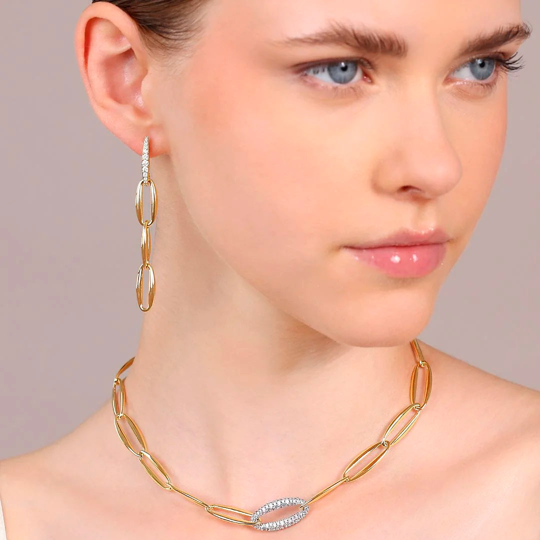 Orecchini Pendenti Golden Maglie Marquise ed Elemento in Pavé di Cubic Zirconia
