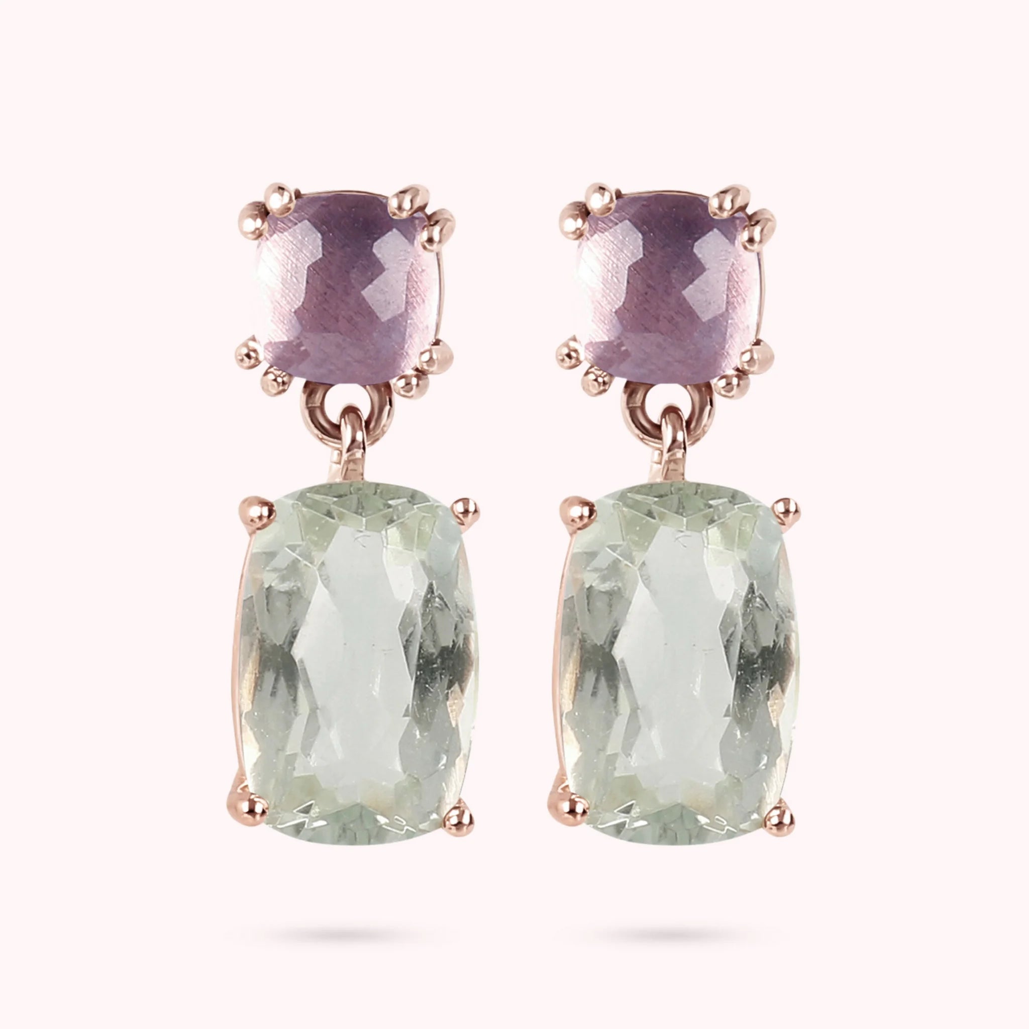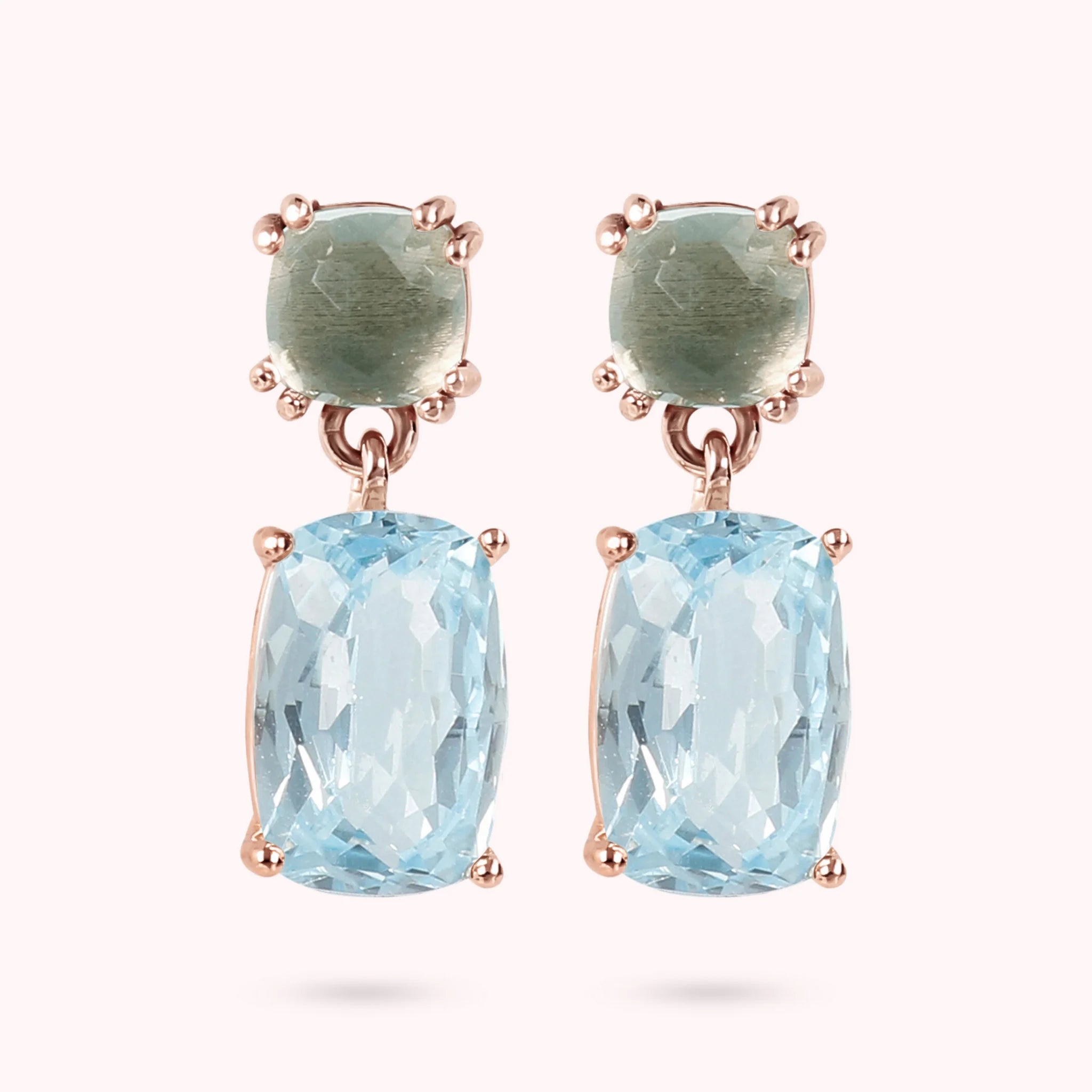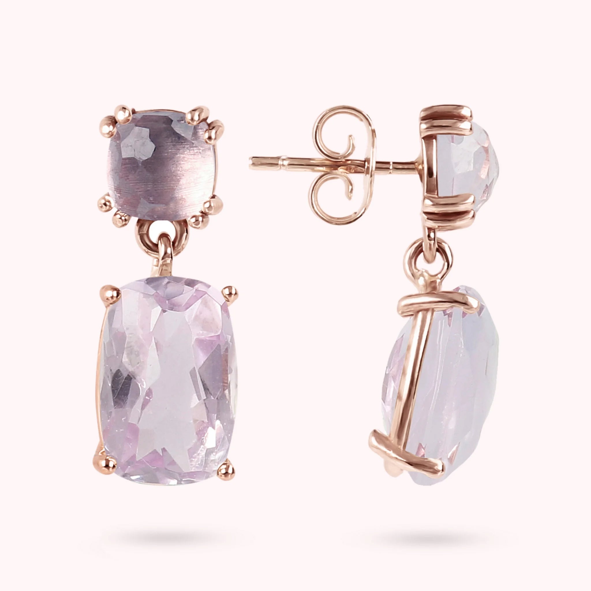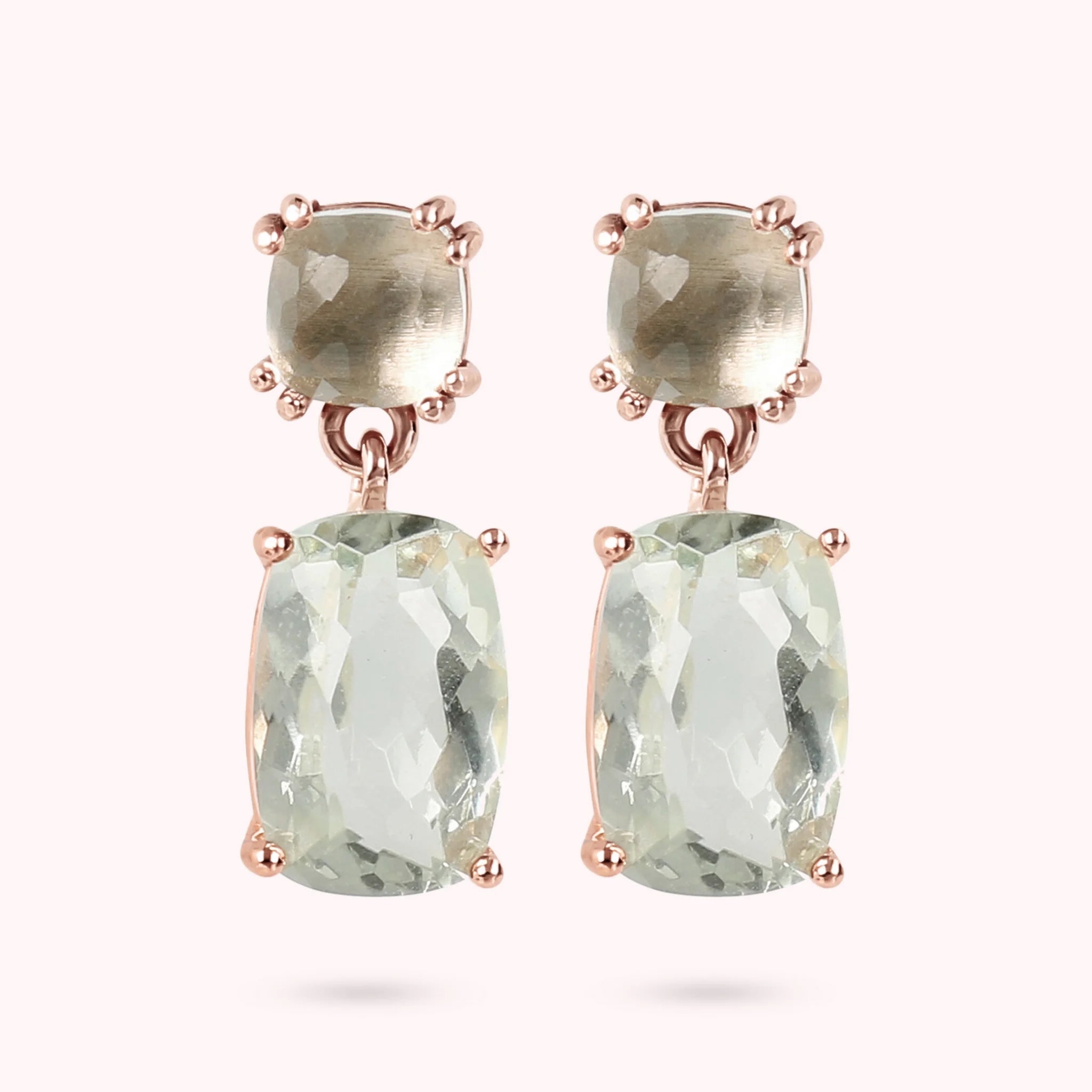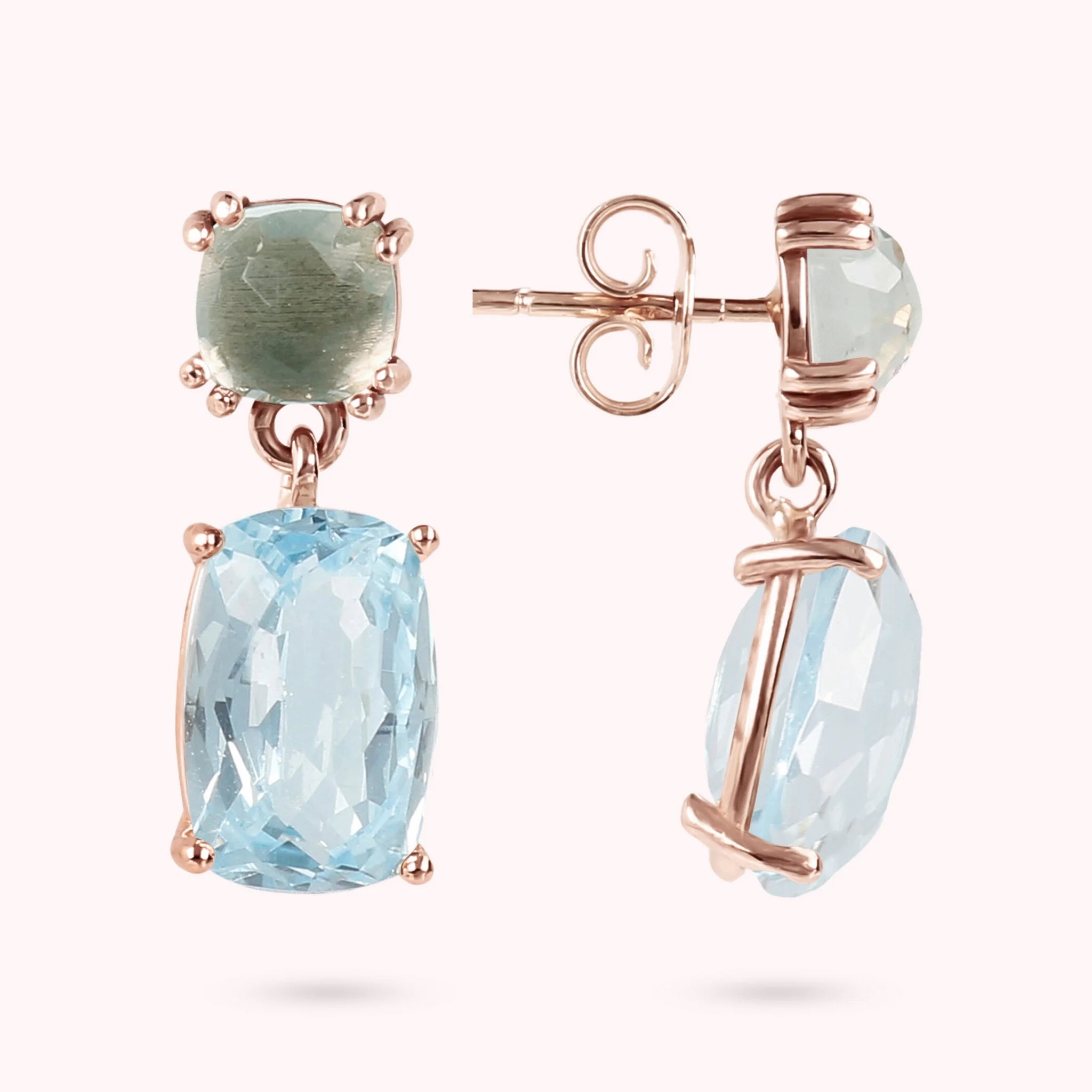 Orecchini Pendenti in Oro Rosa 375 con Pietra Naturale Taglio Saponetta