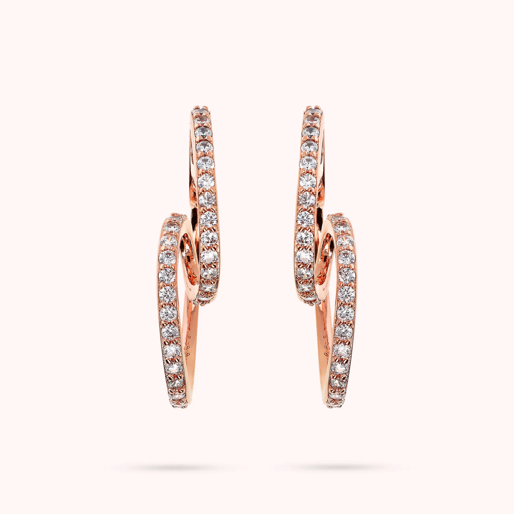 Orecchini pendenti Bronzallure realizzati in lega Golden Rosé, placcata Oro rosa 18kt, dal design sinuoso con superficie ricoperta da cubic zirconia, qualità luminosa. Lunghezza 3.5 cm. Chiusura a perno e farfalla.
