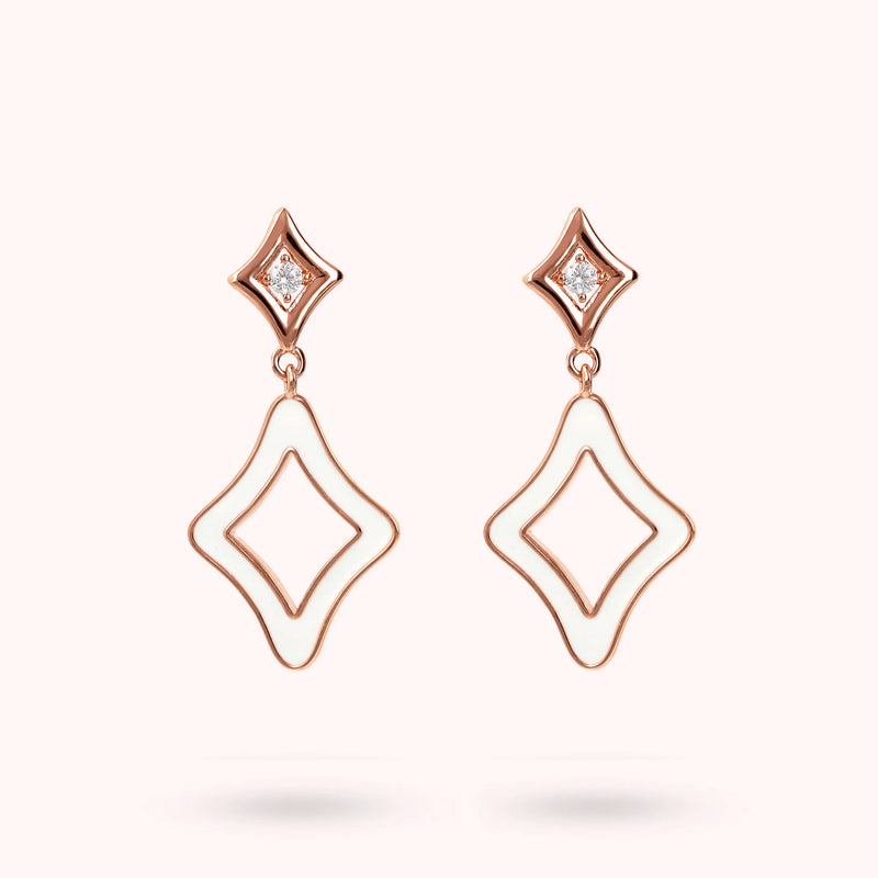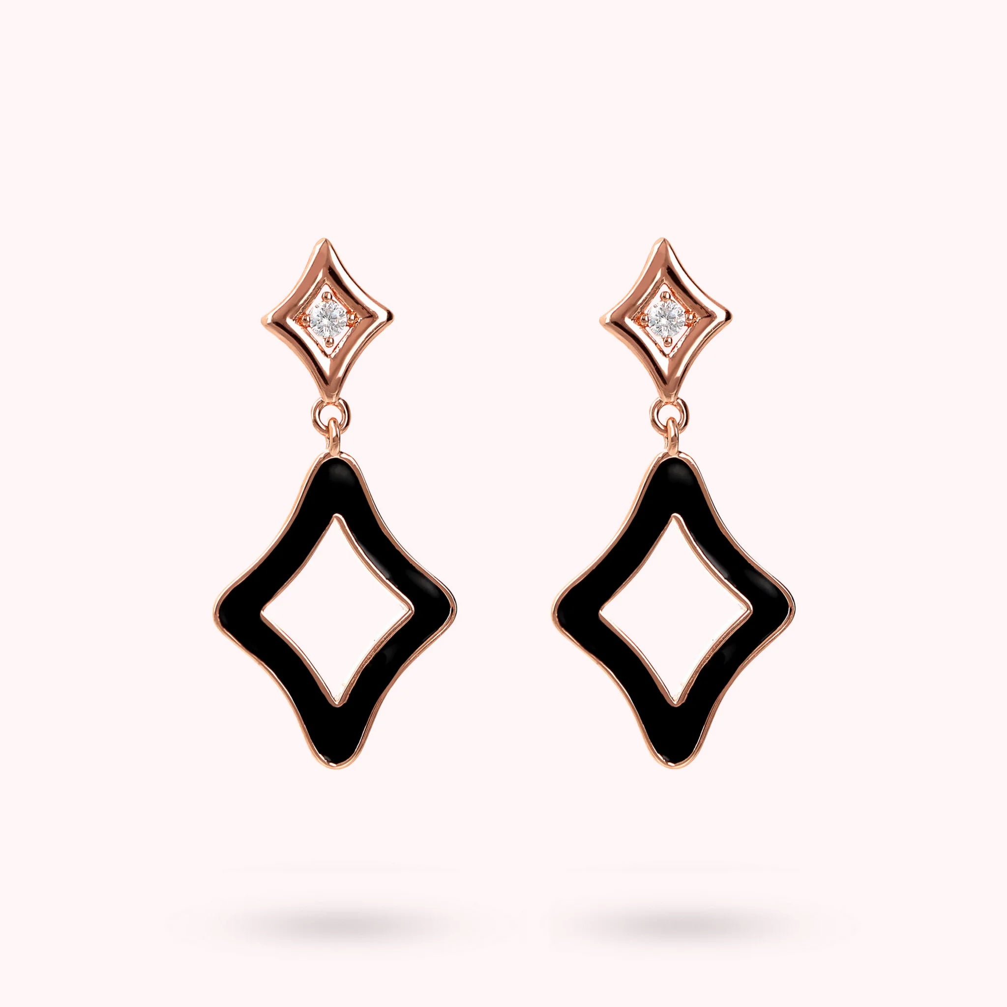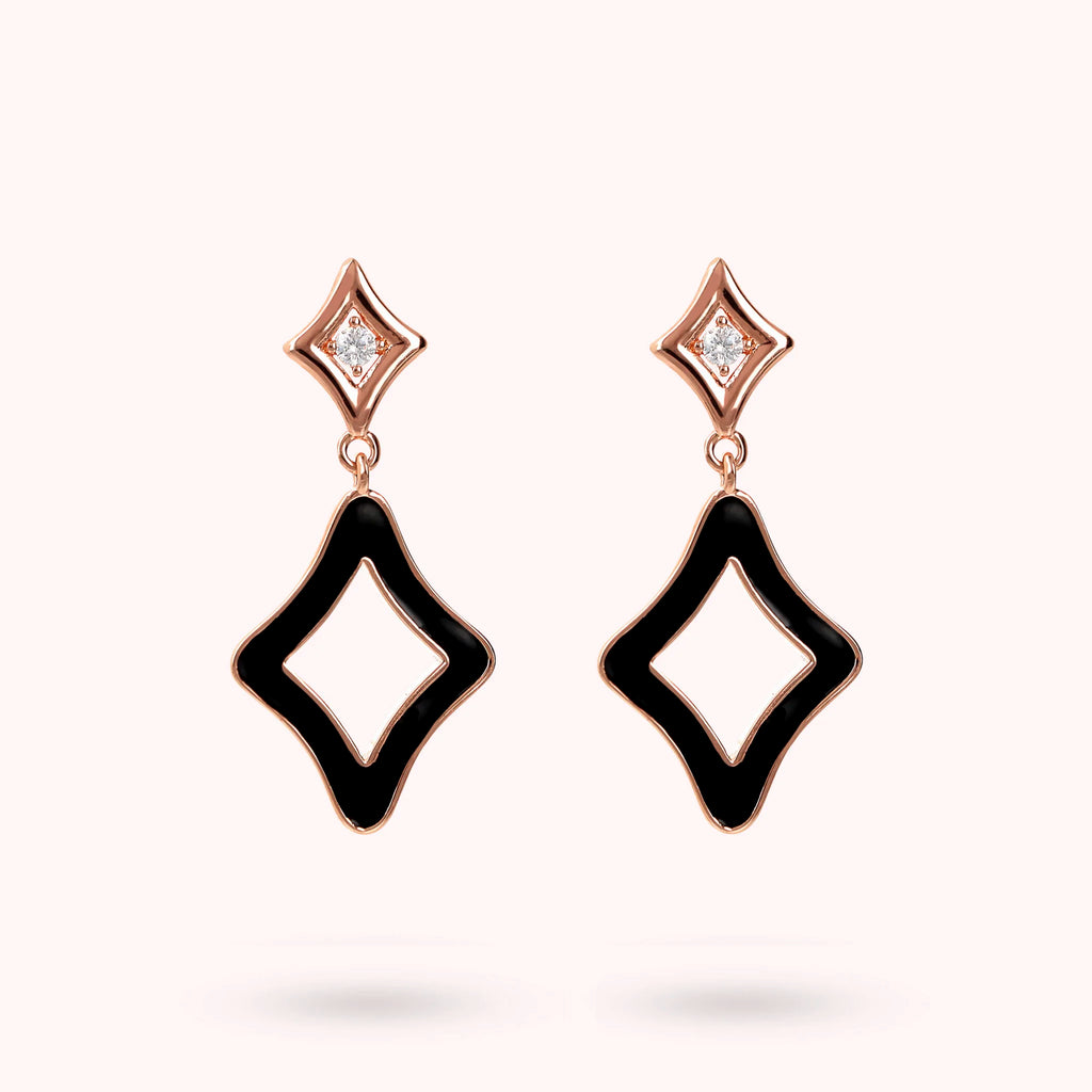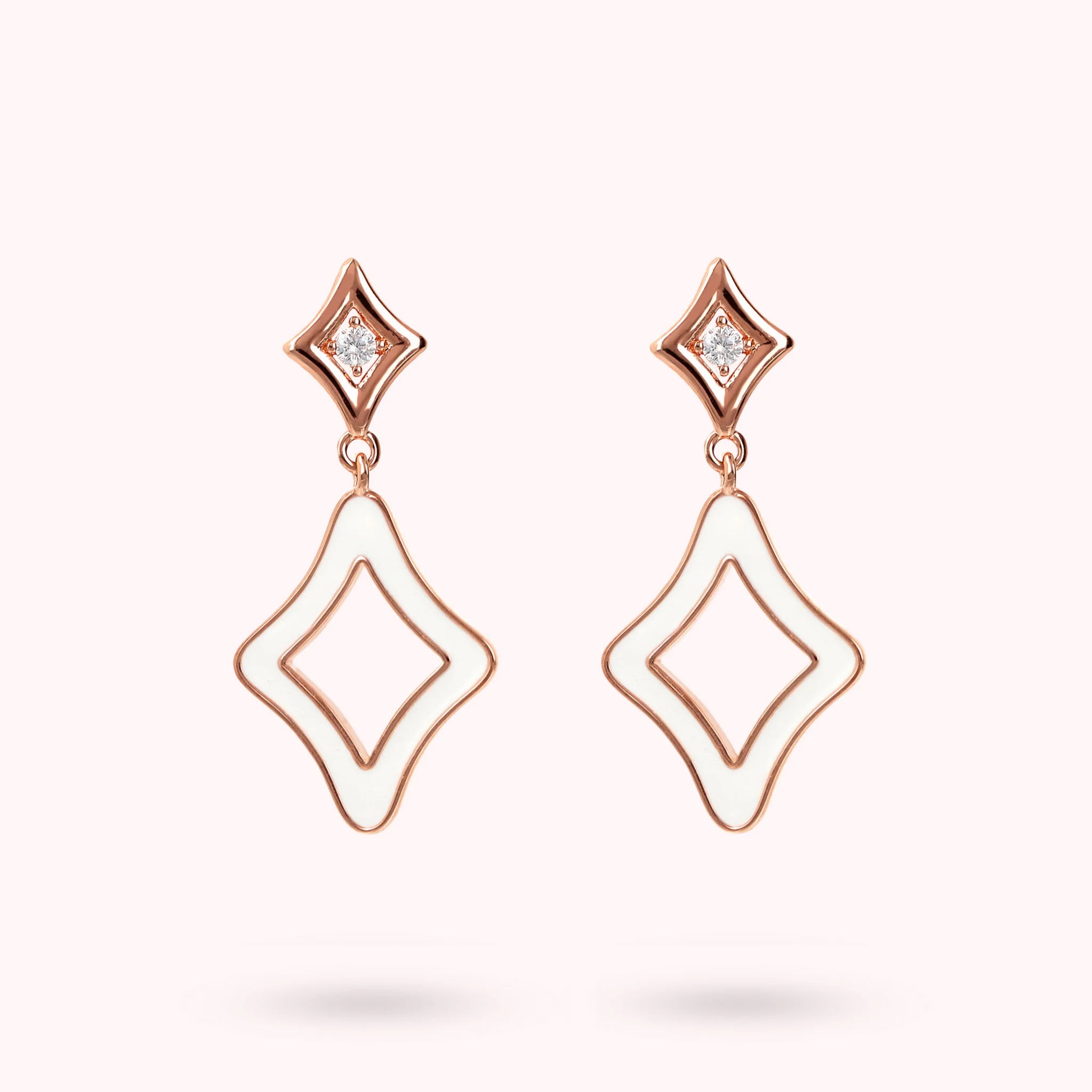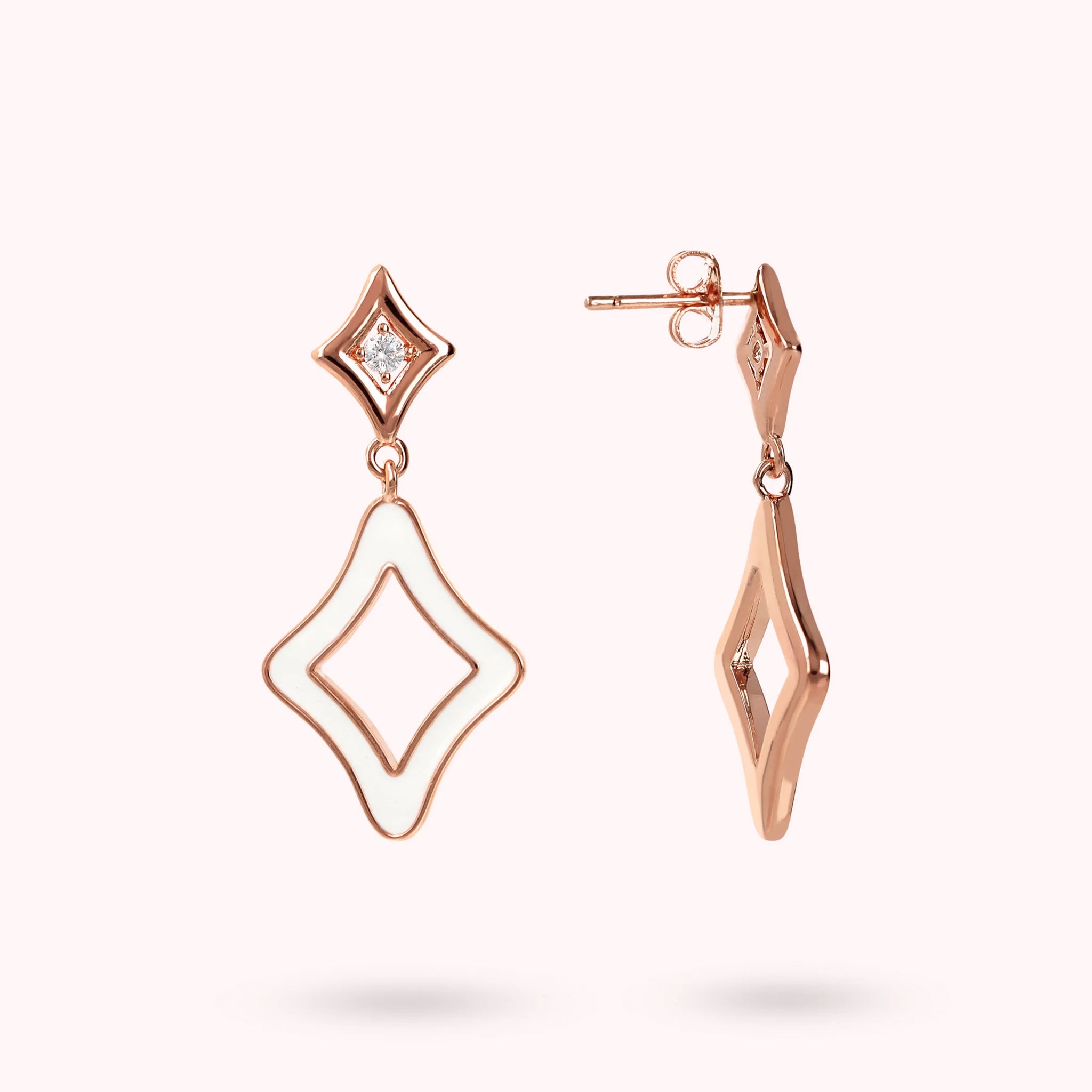 Orecchini Pendenti Smaltati con Doppia Étoile e Punti Luce in Cubic Zirconia