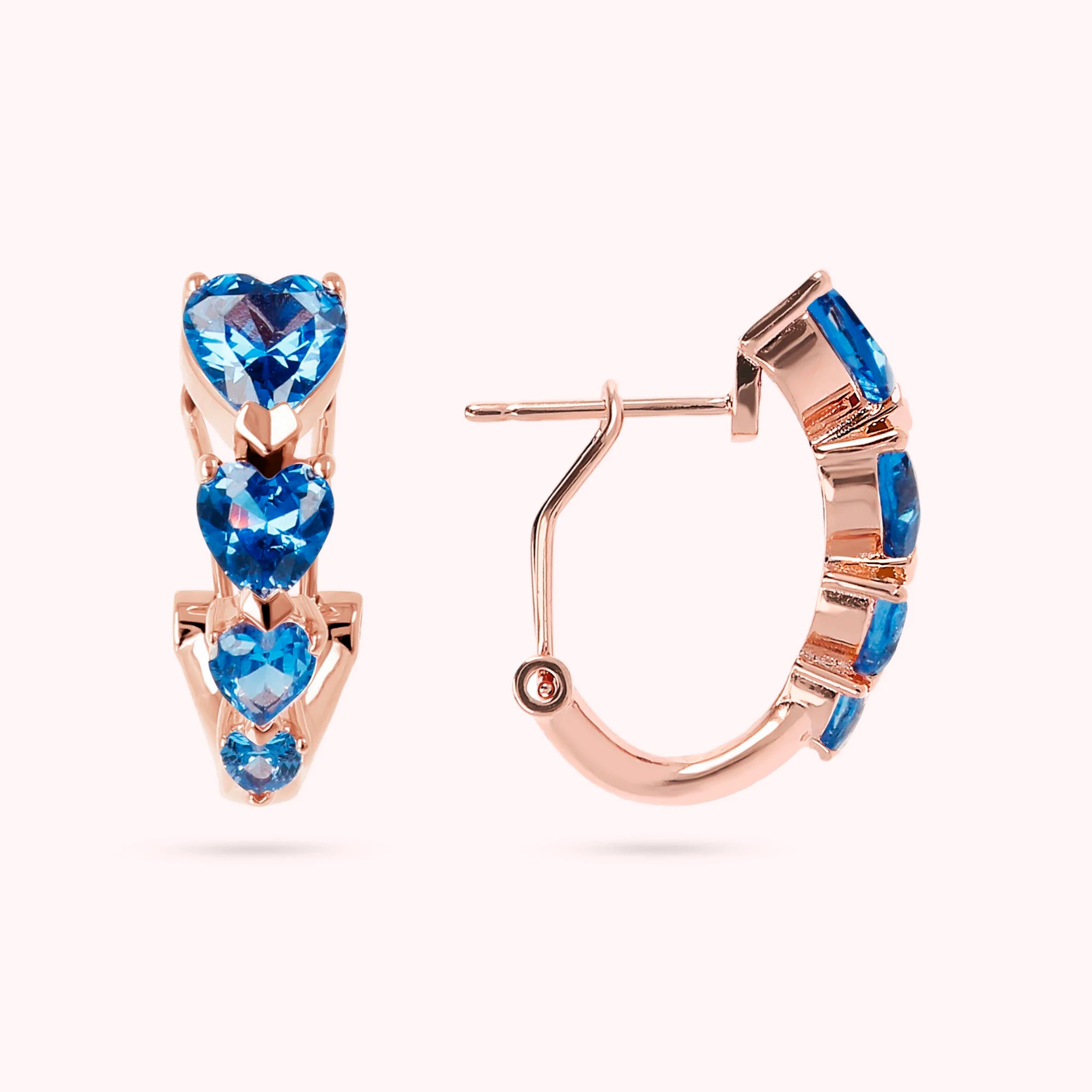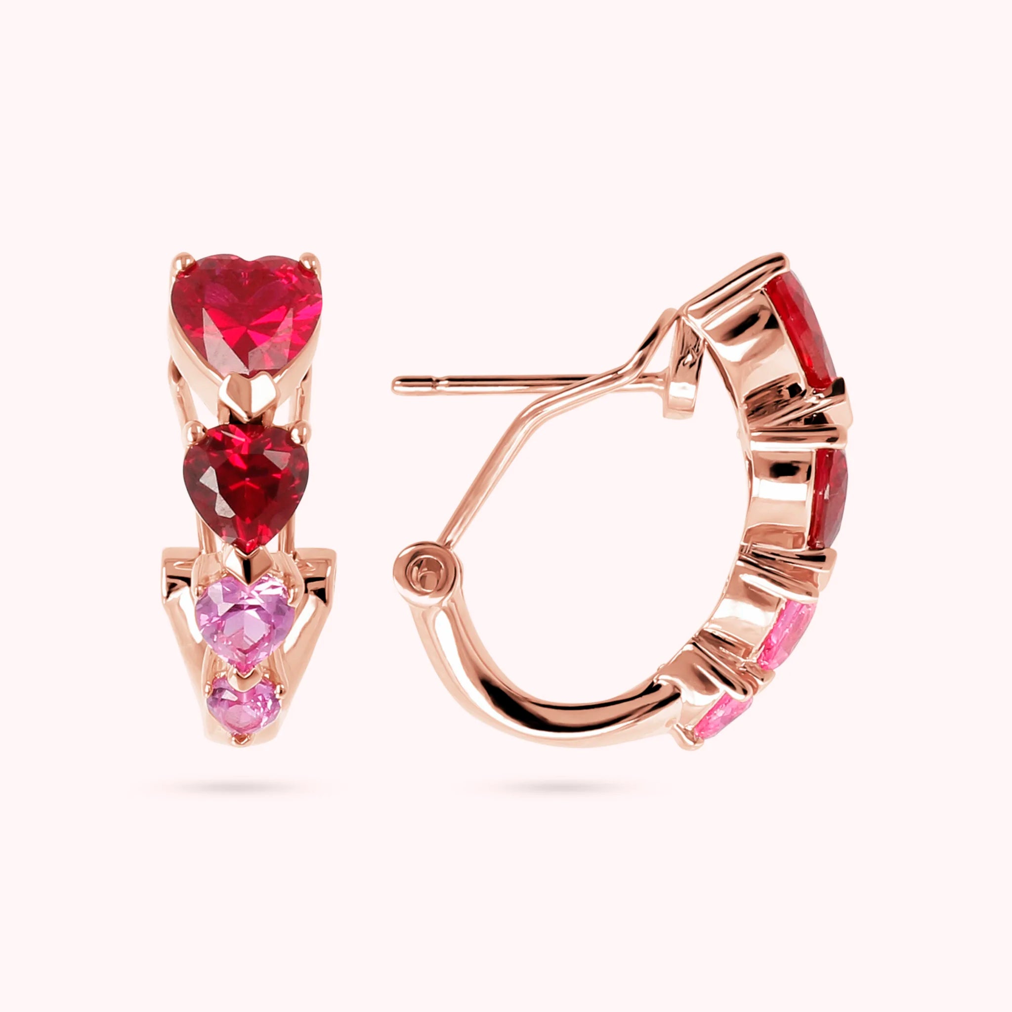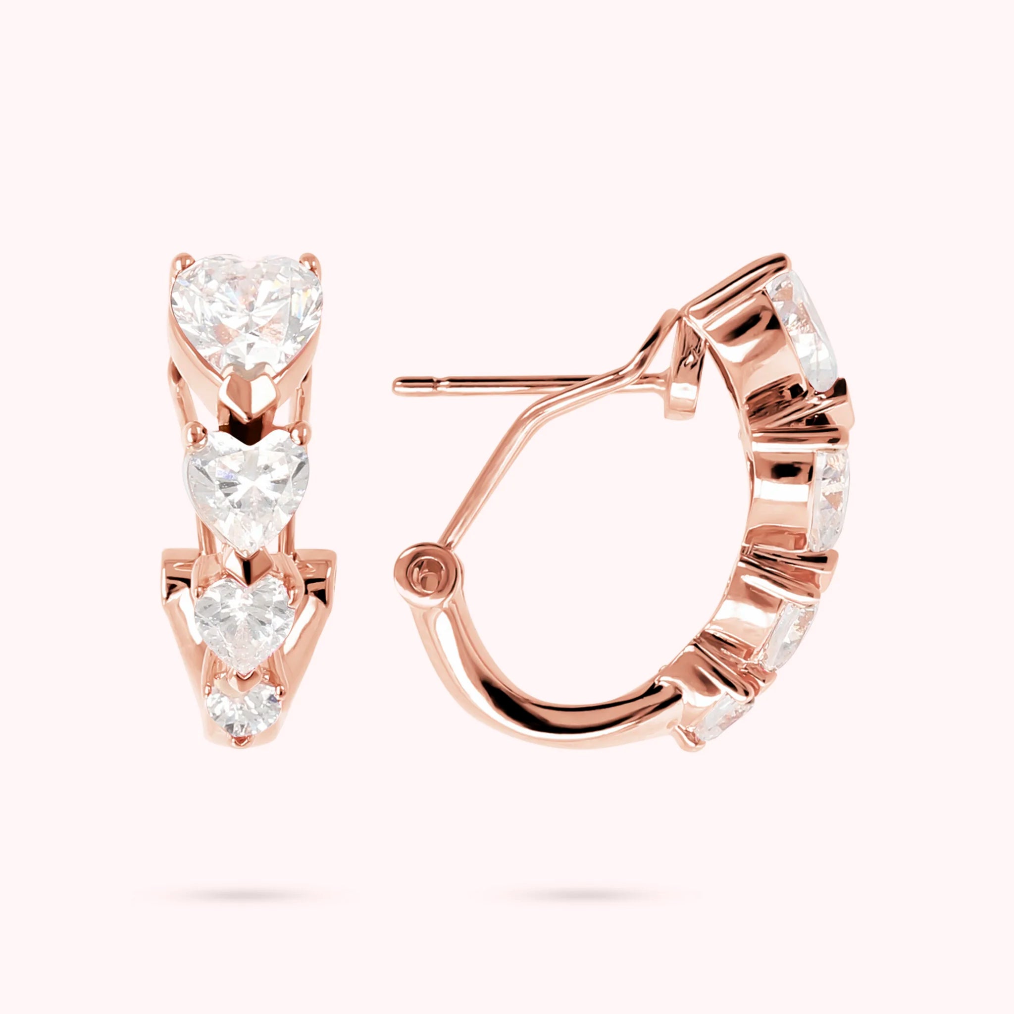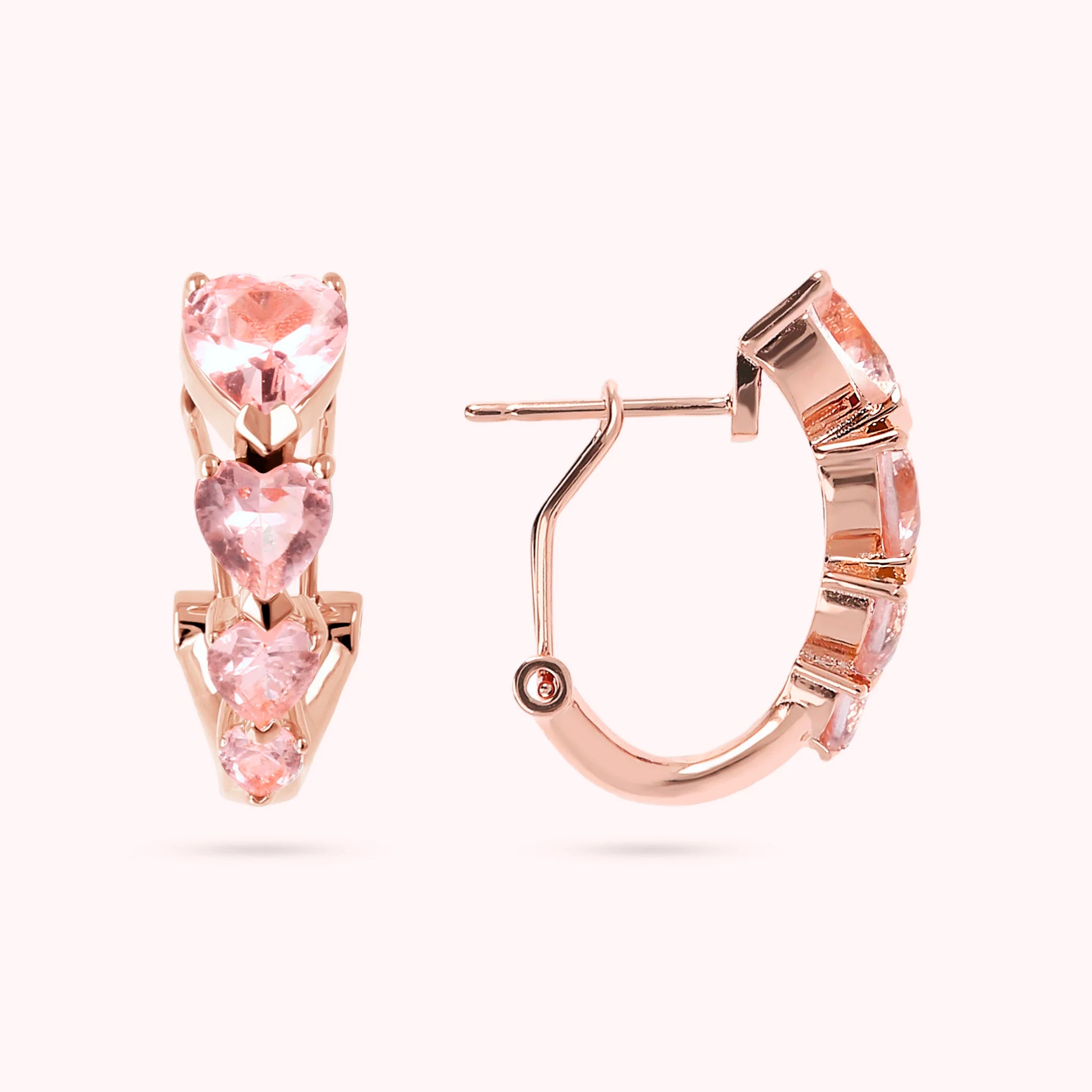 Orecchini a cerchio Bronzallure realizzati in lega Golden Rosé, placcati oro rosa 18kt con quattro cuori in cubic zirconia disposti in grandezza decrescente; chiusura a perno e clip. Creazione elegante, dal design perfetto per dare luminosità al viso.