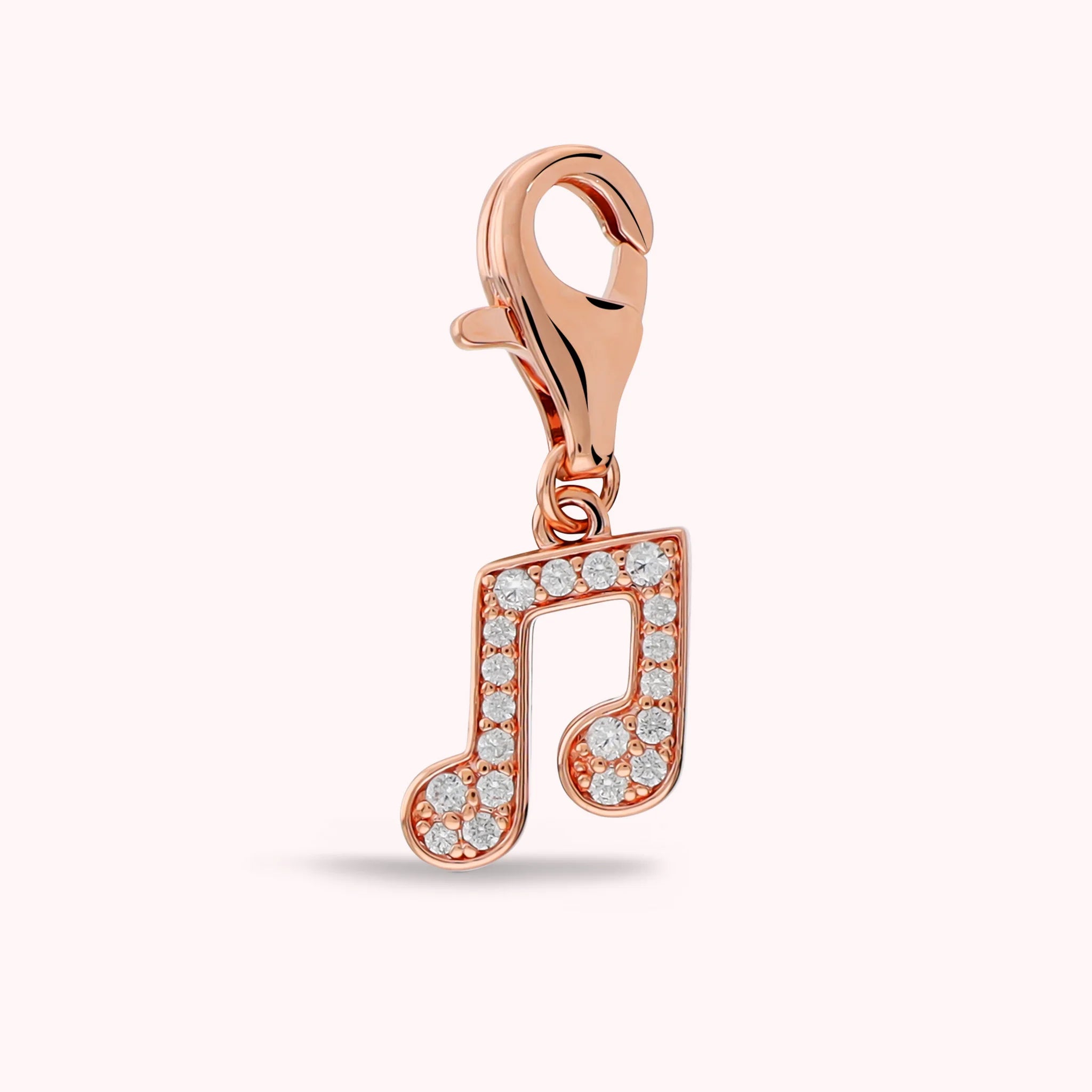 Ciondolo nota musicale doppia Bronzallure realizzato in lega Golden Rosé, placcata Oro 18kt, con pavé di cubic zirconia, qualità luminosa. Dotato di moschettone. Compatibile con il bracciale charms a maglie alternate.